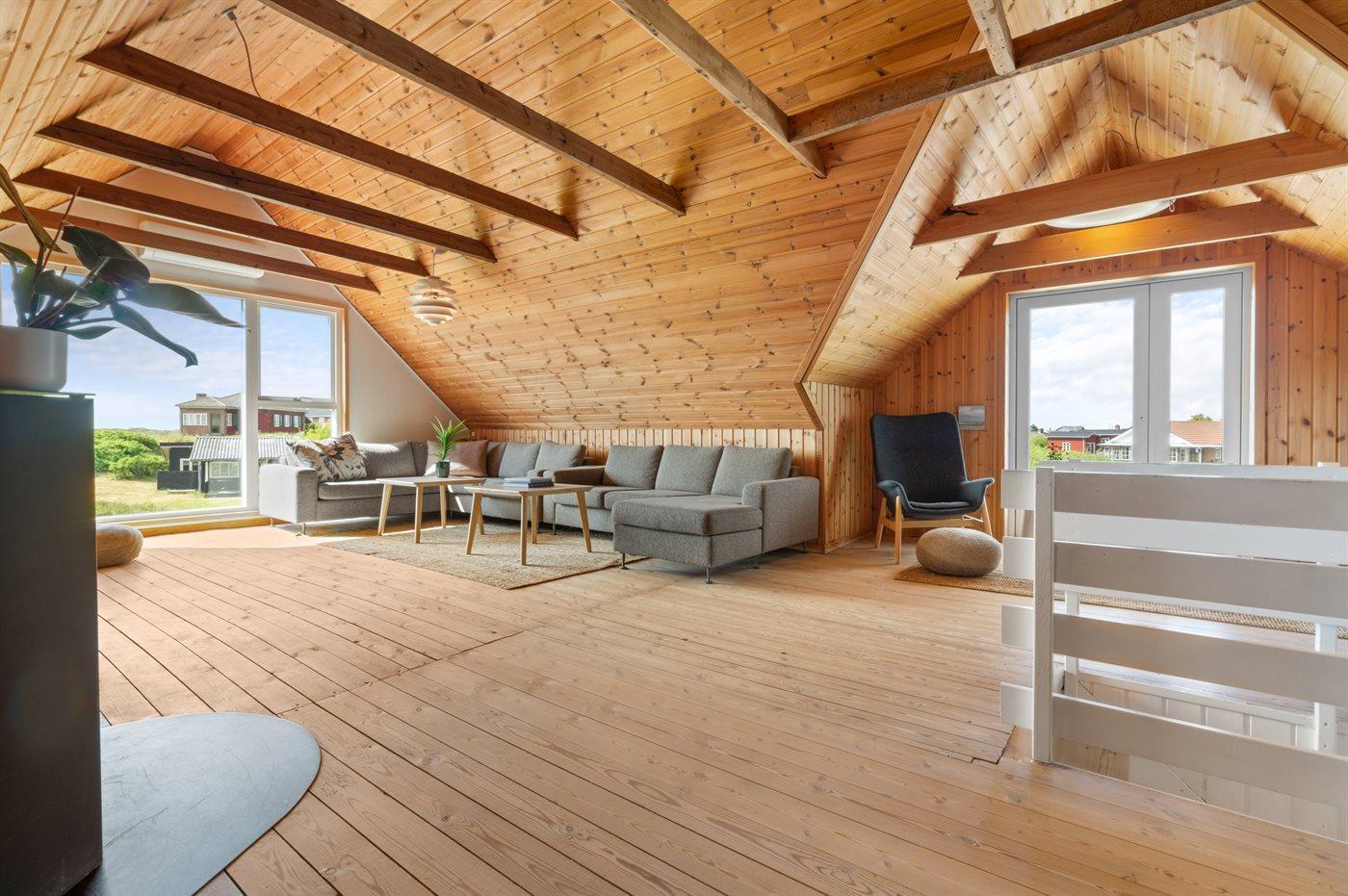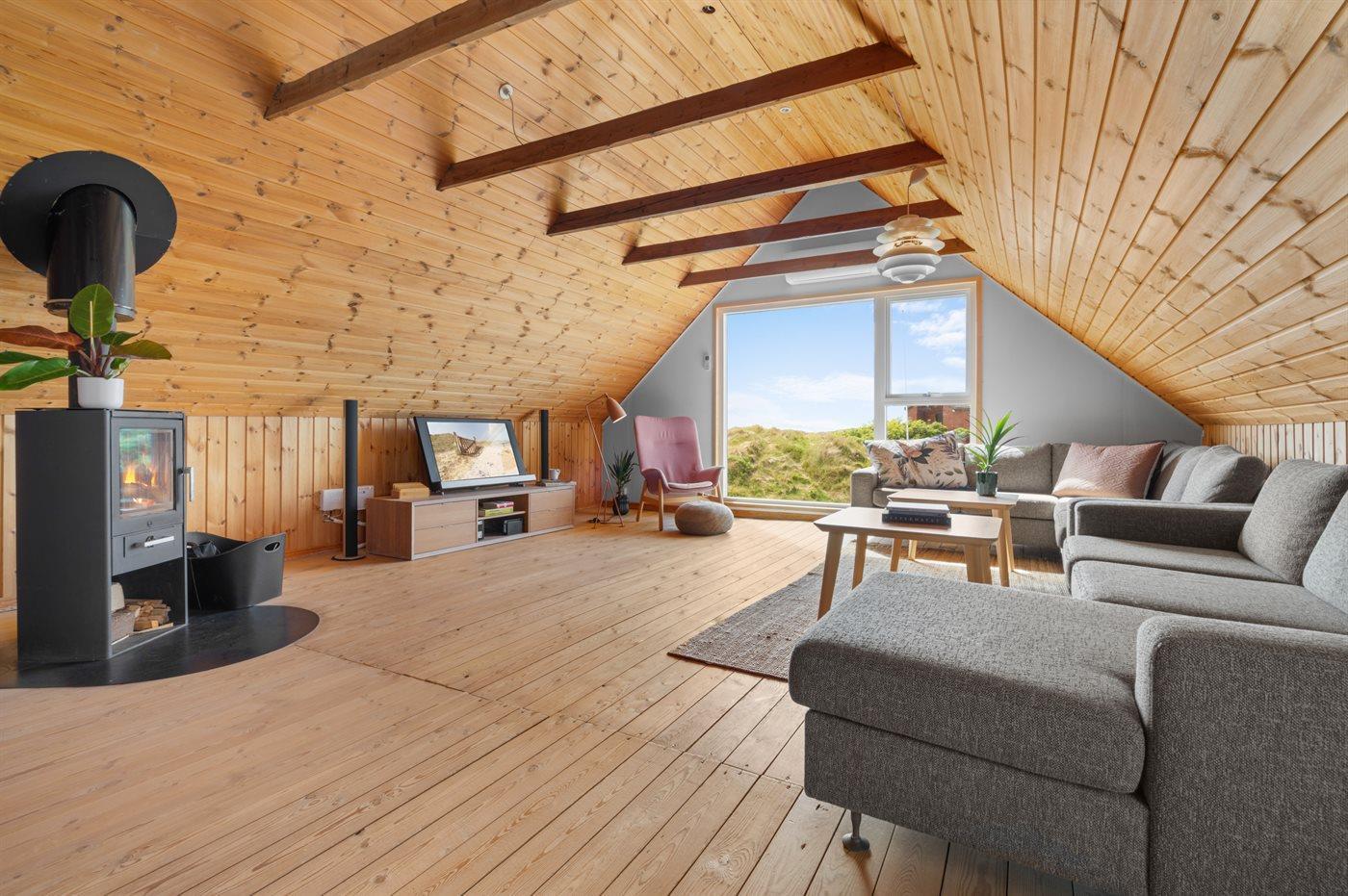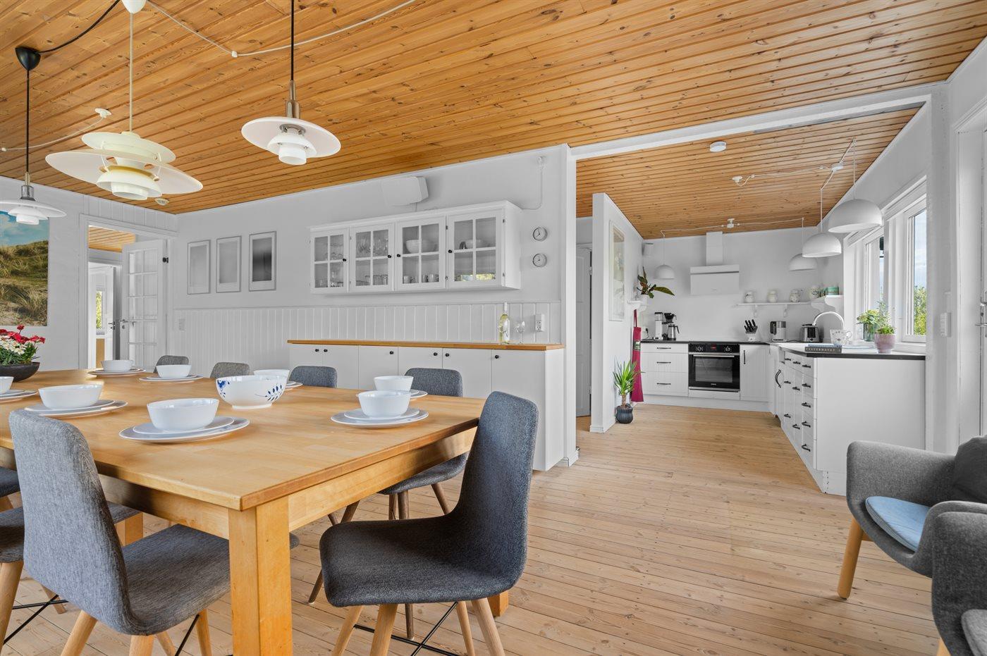 Fra terrassen direkte ind i klitterne! Et lyst og velindrettet sommerhus med masser af naturligt lysindfald, som med sine 200 m2 snildt byder plads til 12 personer. Husets gode indretning, værelsernes opdeling og de 2 moderne badeværelse gør huset velegnet til 2 familier eller flere generationer, som ønsker at tilbringe ferien under ét og samme tag.
