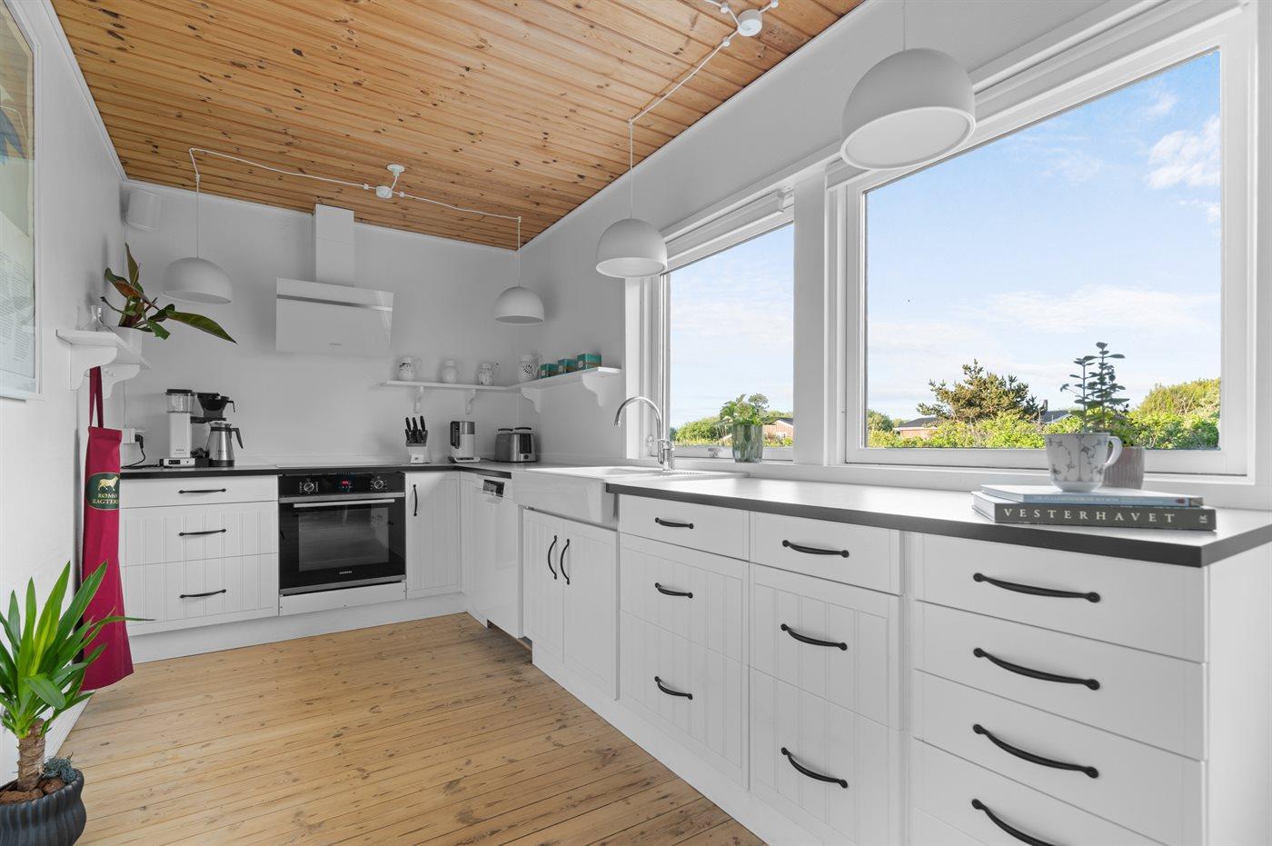 Køkkenet er også nyt og er moderne indrettet, da husets ejere elsker at lave god mad og bage. Huset ligger i ét af Rømøs smukkeste og mest eftertragtede områder med klit- og hedelandskab på vestsiden af Lakolk. Fra huset er der fra både stueetagen, men især fra 1. sal en vidunderlig udsigt over klitområdet. På den sydvendte terrasse kan der slappes af i vildmarksbadet.