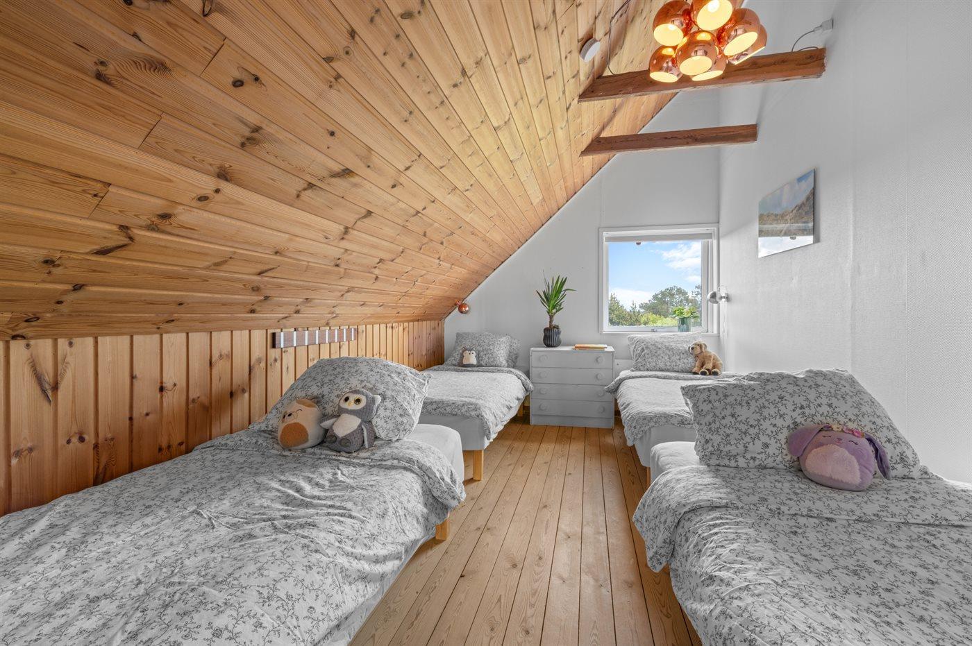 Der er i alt 5 soveværelser. Sovepladserne fordeler sig på: 8 sovepladser i dobbeltsenge. 4 sovepladser i enkeltsenge.