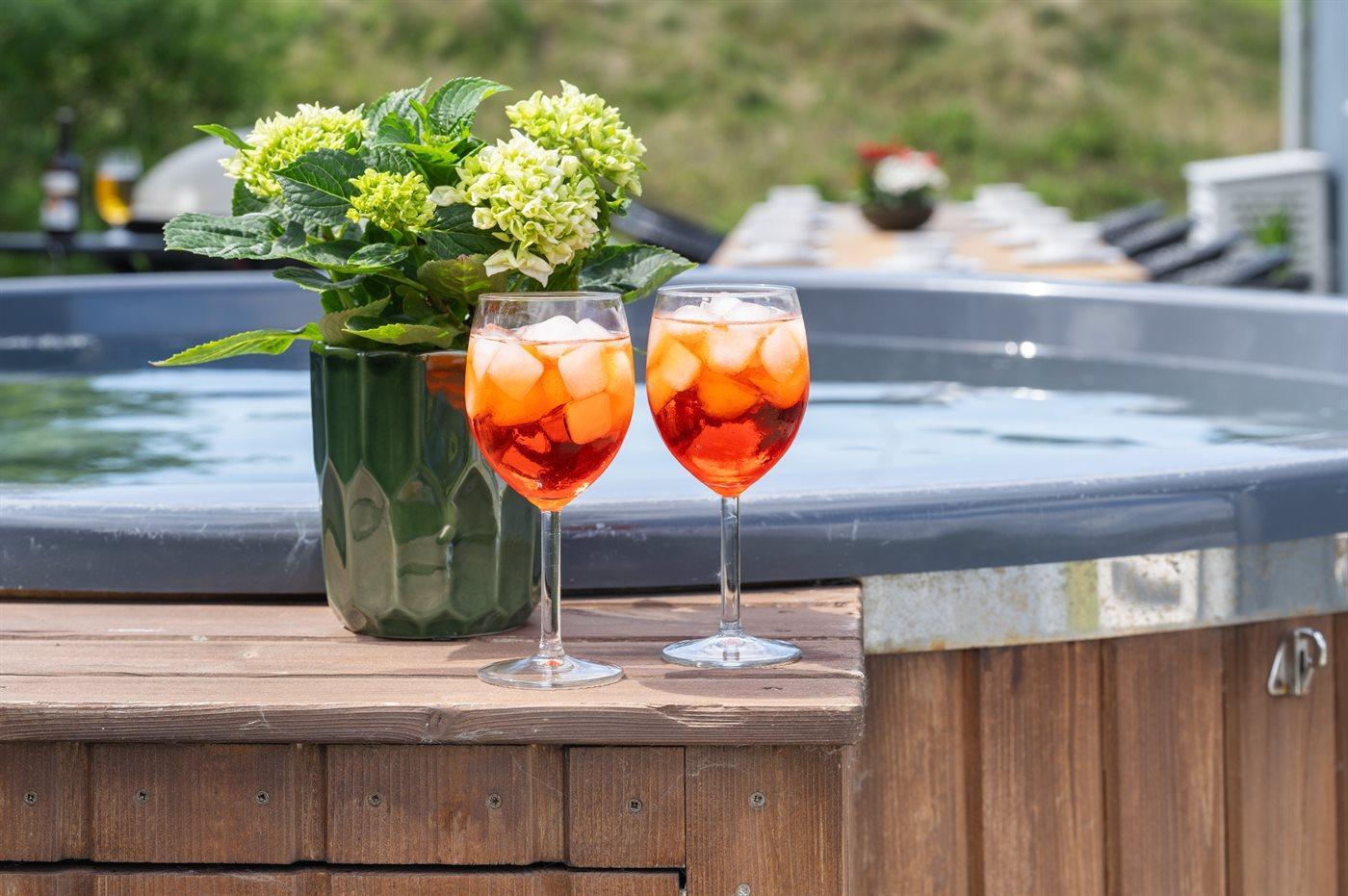 Der er mulighed for afslapning i det udendørs vildmarkskar til 4 personer.