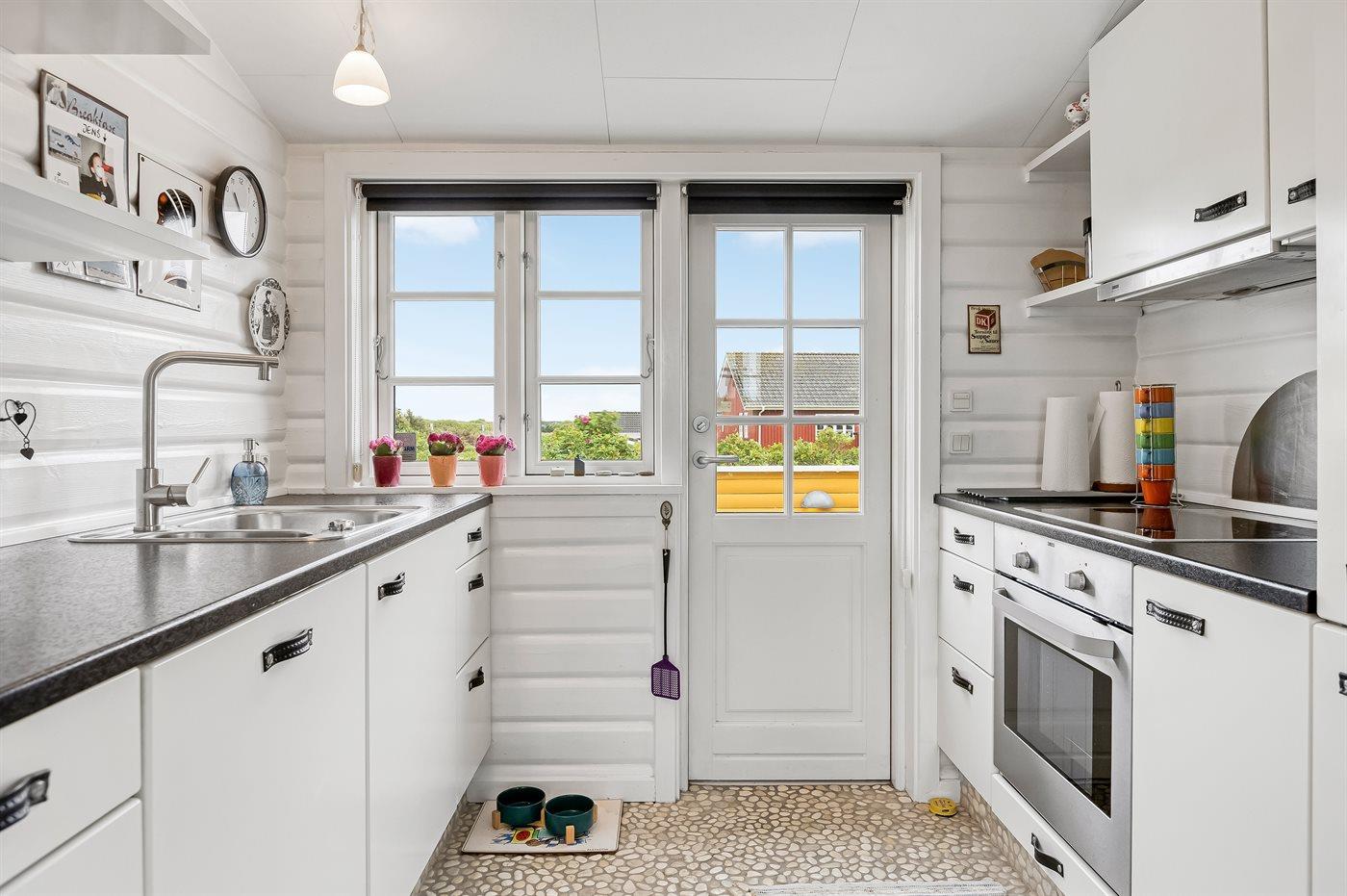 Køkkenet er udstyret med 1 køleskab. Der er 4 keramiske kogeplader, varmluftovn samt opvaskemaskine.