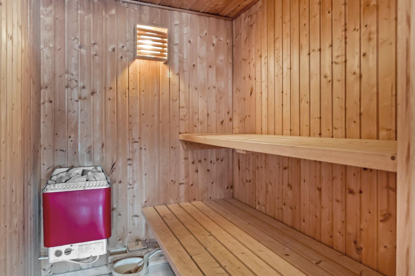 Der er 1 badeværelse med bruser og 1 toilet., heraf 1 gæstetoilet. Der er gulvvarme på 1 badeværelse. I saunaen er der mulighed for afslapning.