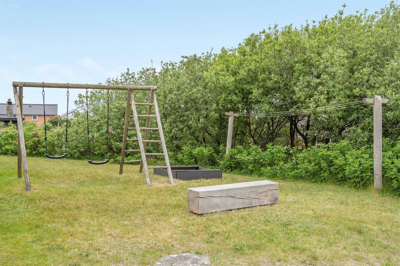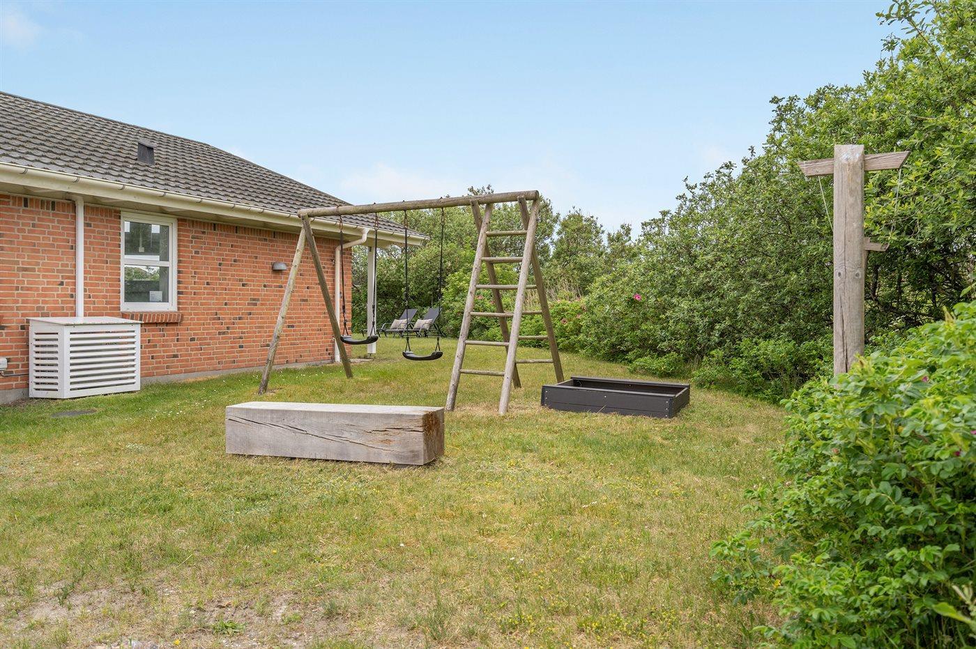 Ferieboligen er beliggende på en 1305 m² stor naturgrund. Der er 500 m til havet. Nærmeste forretning er beliggende i en afstand af 700 m. Til ferieboligen hører 30 m² terrasseareal. Desuden er der 25 m² overdækket terrasse. Der er redskabsrum. Gynge. Sandkasse. Der er installeret Easee Laderobot til opladning af elbil. Parkering ved ferieboligen.