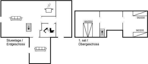 Der er i alt 2 soveværelser. Sovepladserne fordeler sig på: 2 sovepladser i dobbeltseng. 2 sovepladser i enkeltsenge.