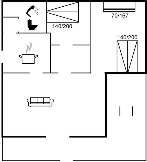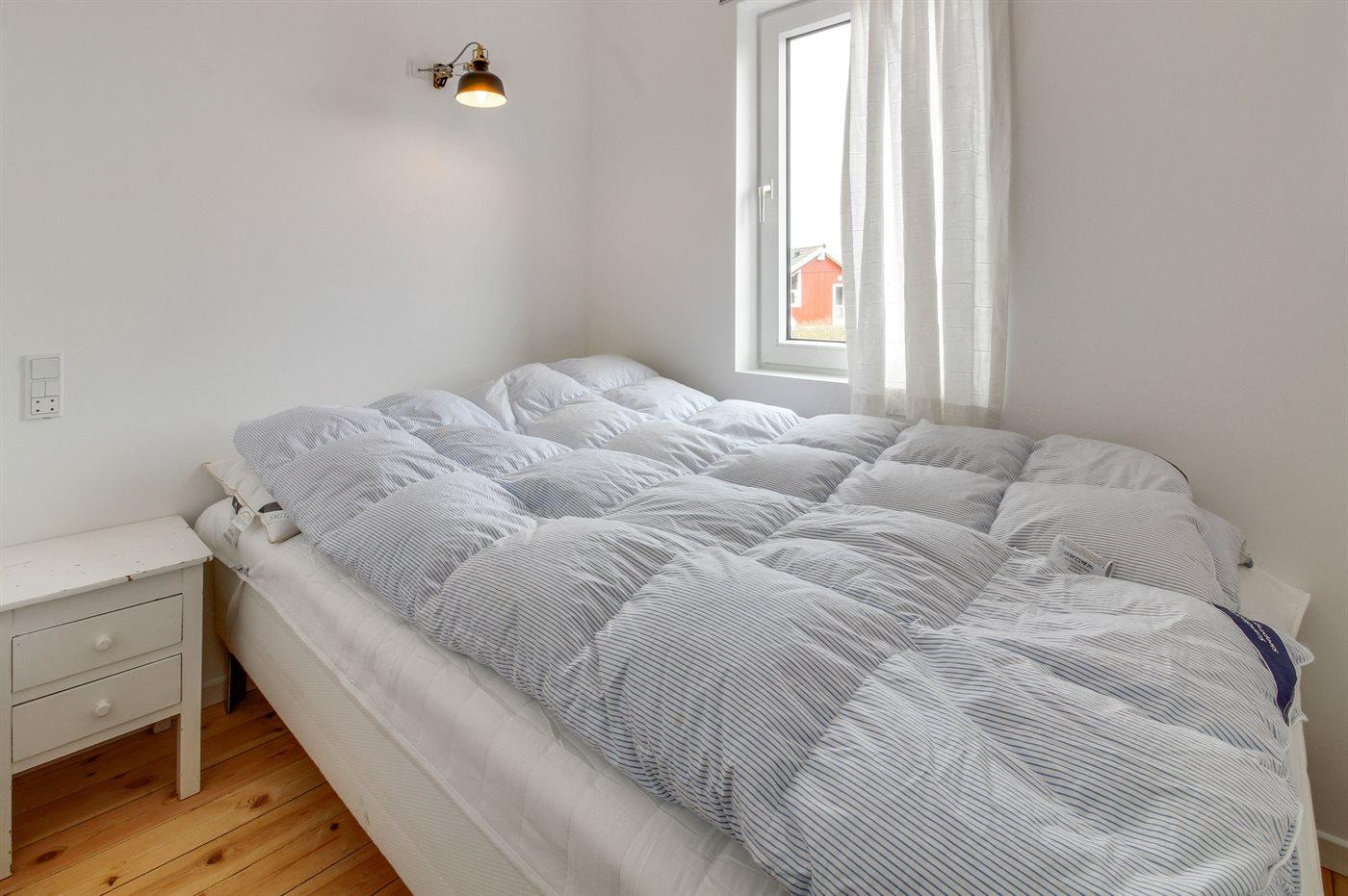 Der er i alt 2 soveværelser. Sovepladserne fordeler sig på: 4 sovepladser i dobbeltsenge. 2 sovepladser i køjeseng. Derudover er der 2 stk. barnesenge.