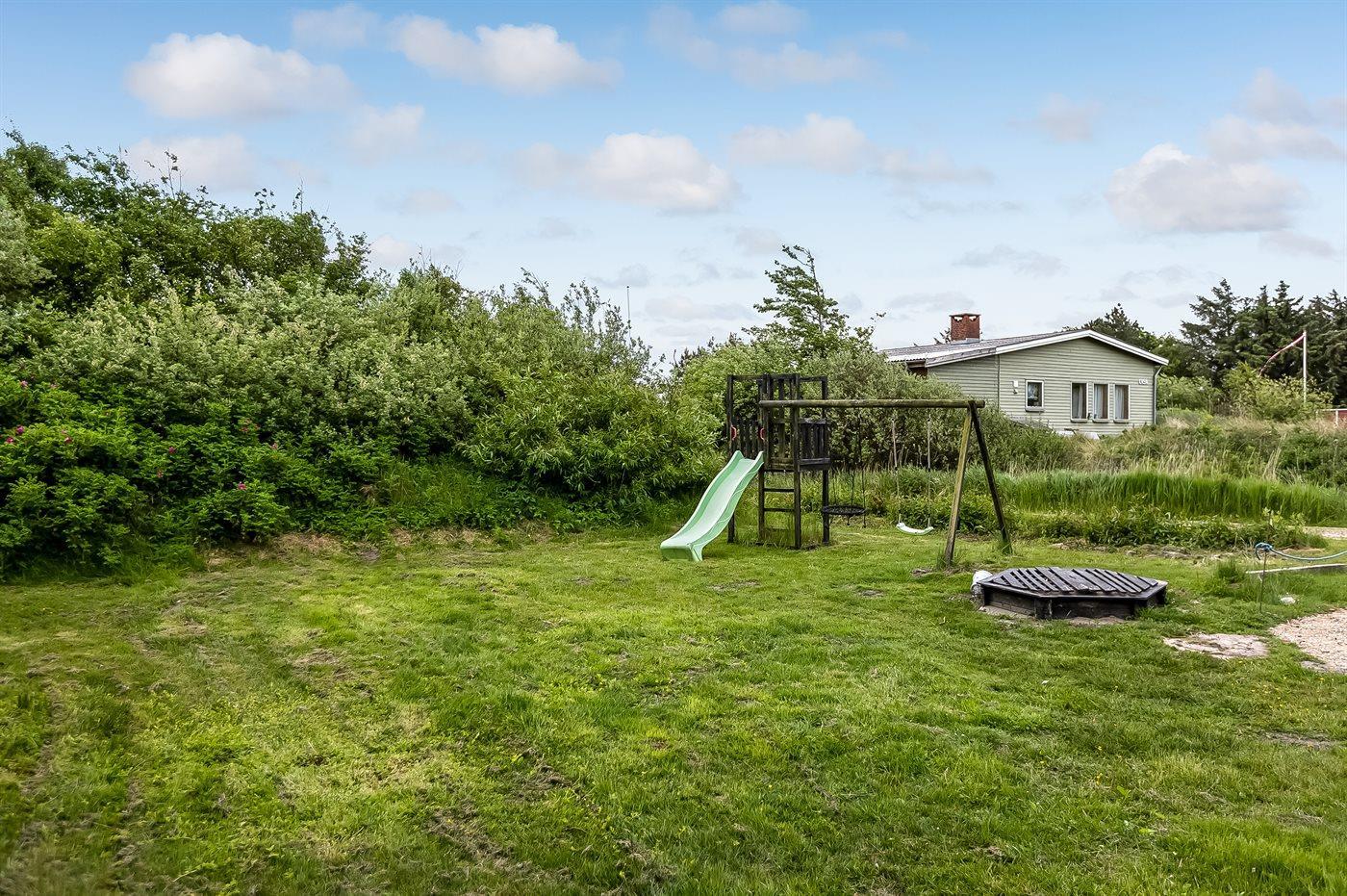 Ferieboligen er beliggende på en 977 m² stor naturgrund. Der er 500 m til havet. Nærmeste forretning er beliggende i en afstand af 500 m. Der er en golfbane i en afstand af 12000 m. Til ferieboligen hører 45 m² terrasseareal. Desuden er der 9 m² overdækket terrasse. Der er redskabsrum. Gynge. Sandkasse. Der er carport til rådighed. Parkering ved ferieboligen.