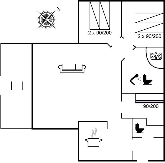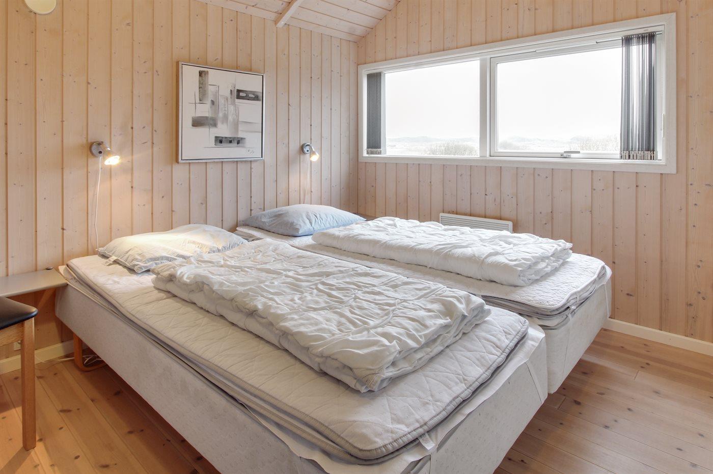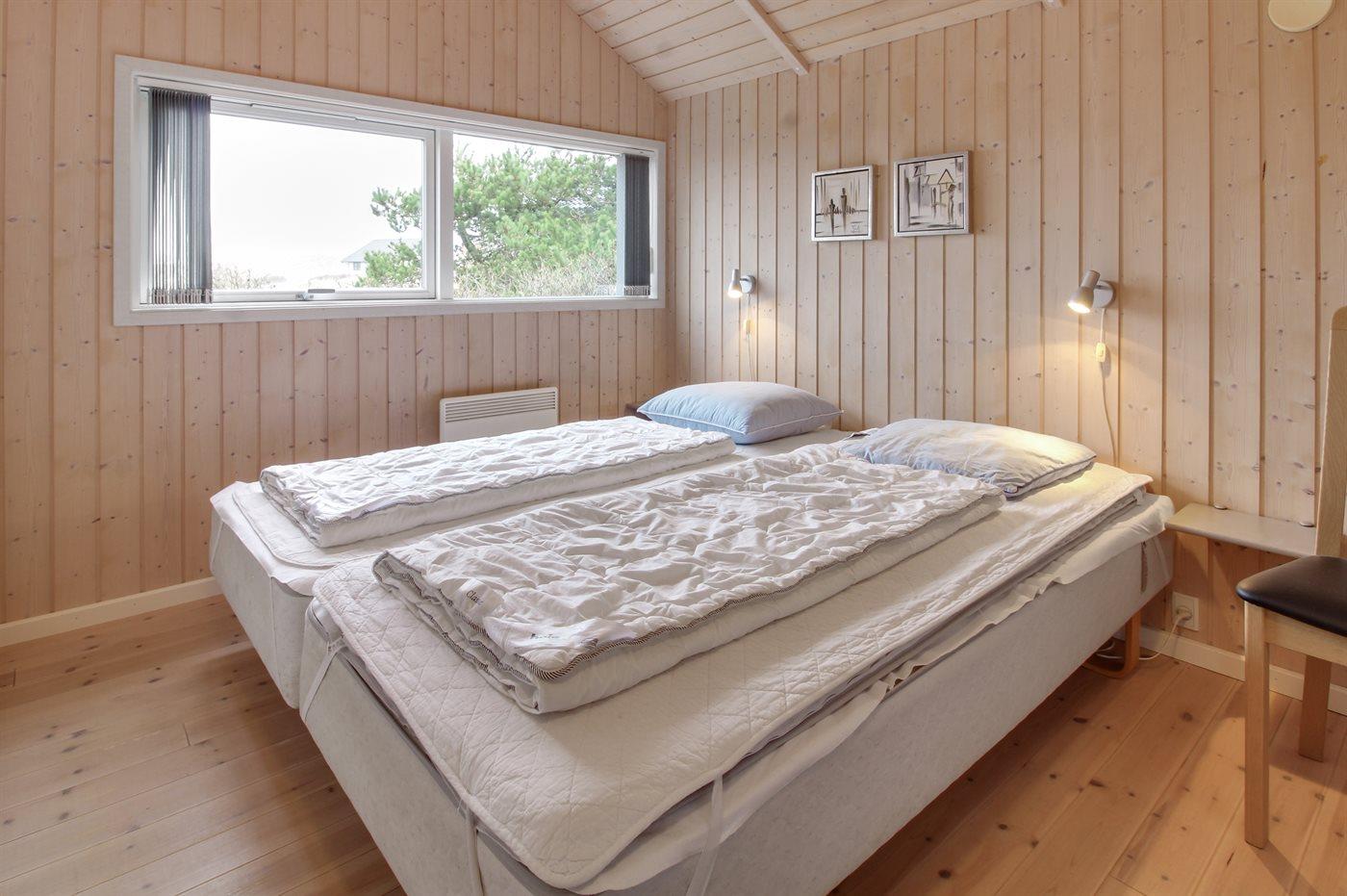 Der er i alt 3 soveværelser. Sovepladserne fordeler sig på: 4 sovepladser i dobbeltsenge. 2 sovepladser i køjeseng.