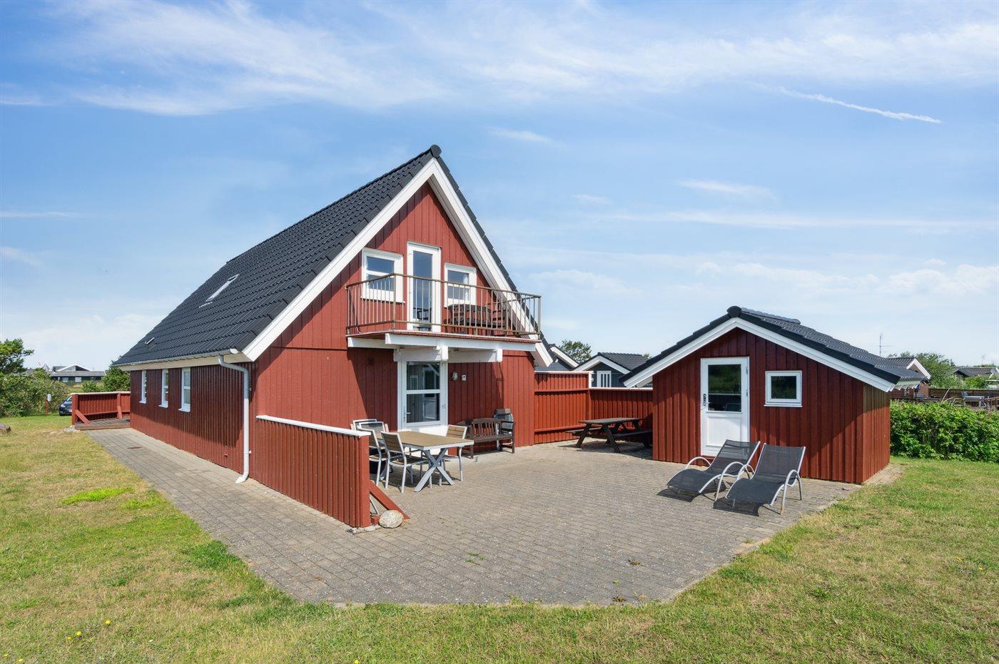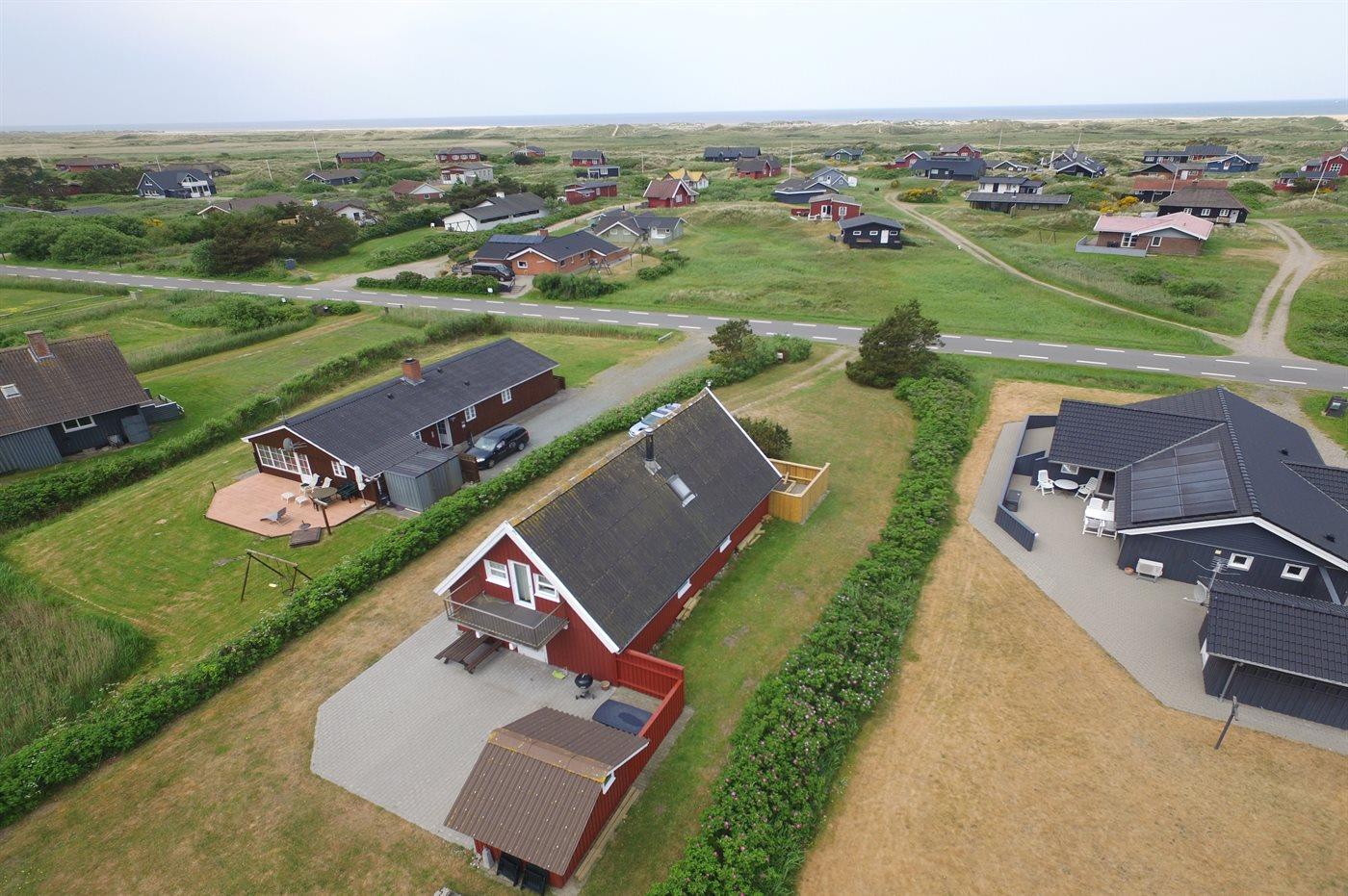 Dette dejlige sommerhus ligger højt på en delvis lukket grund med græsplæne tæt på Vesterhavet og med udsigt over Lakolk Sø og det åbne landskab fra husets 1. sal.