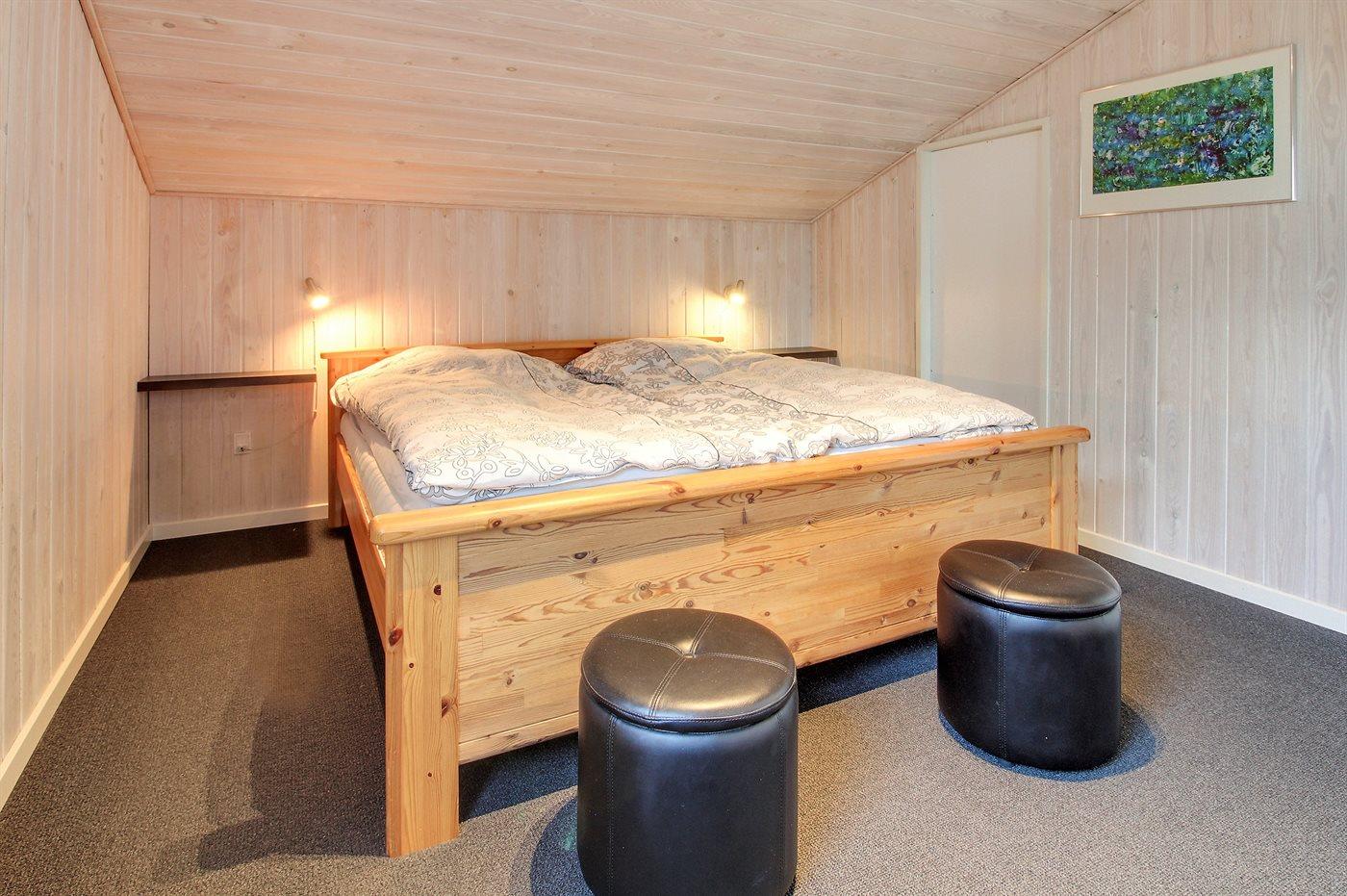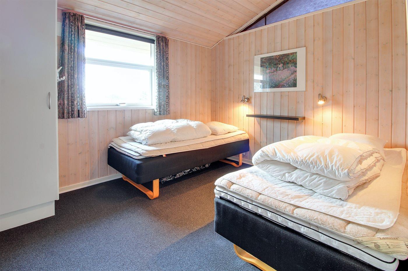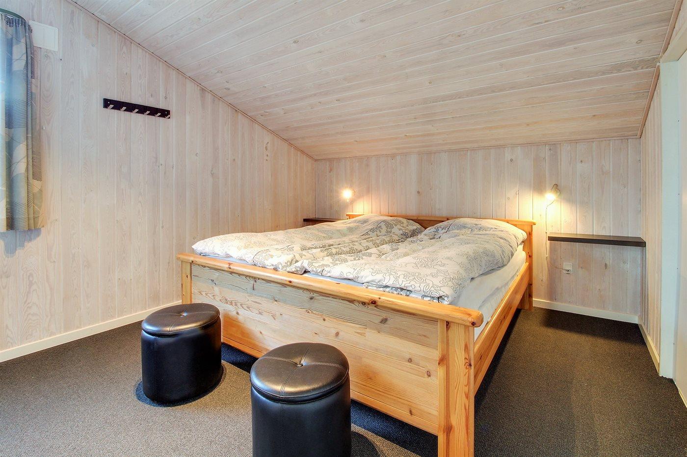 Der er i alt 2 soveværelser. Sovepladserne fordeler sig på: 2 sovepladser i dobbeltseng. 2 sovepladser i enkeltsenge. Derudover er der 1 stk. barneseng.