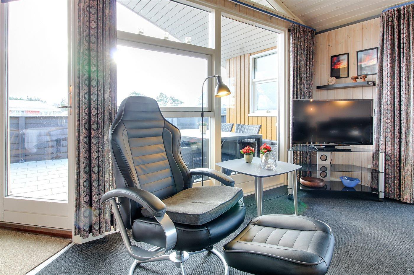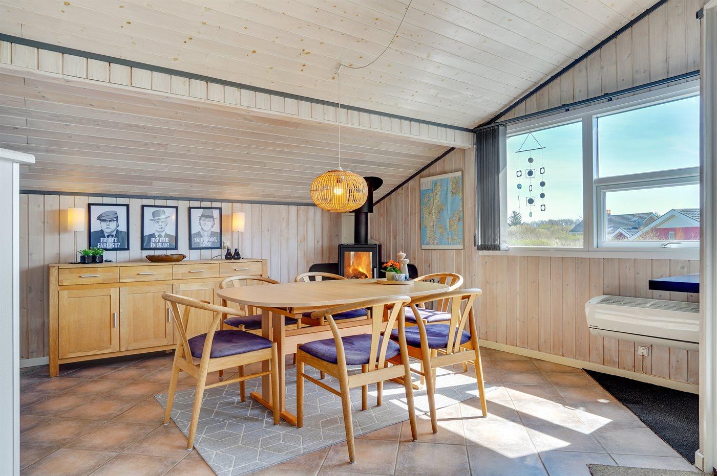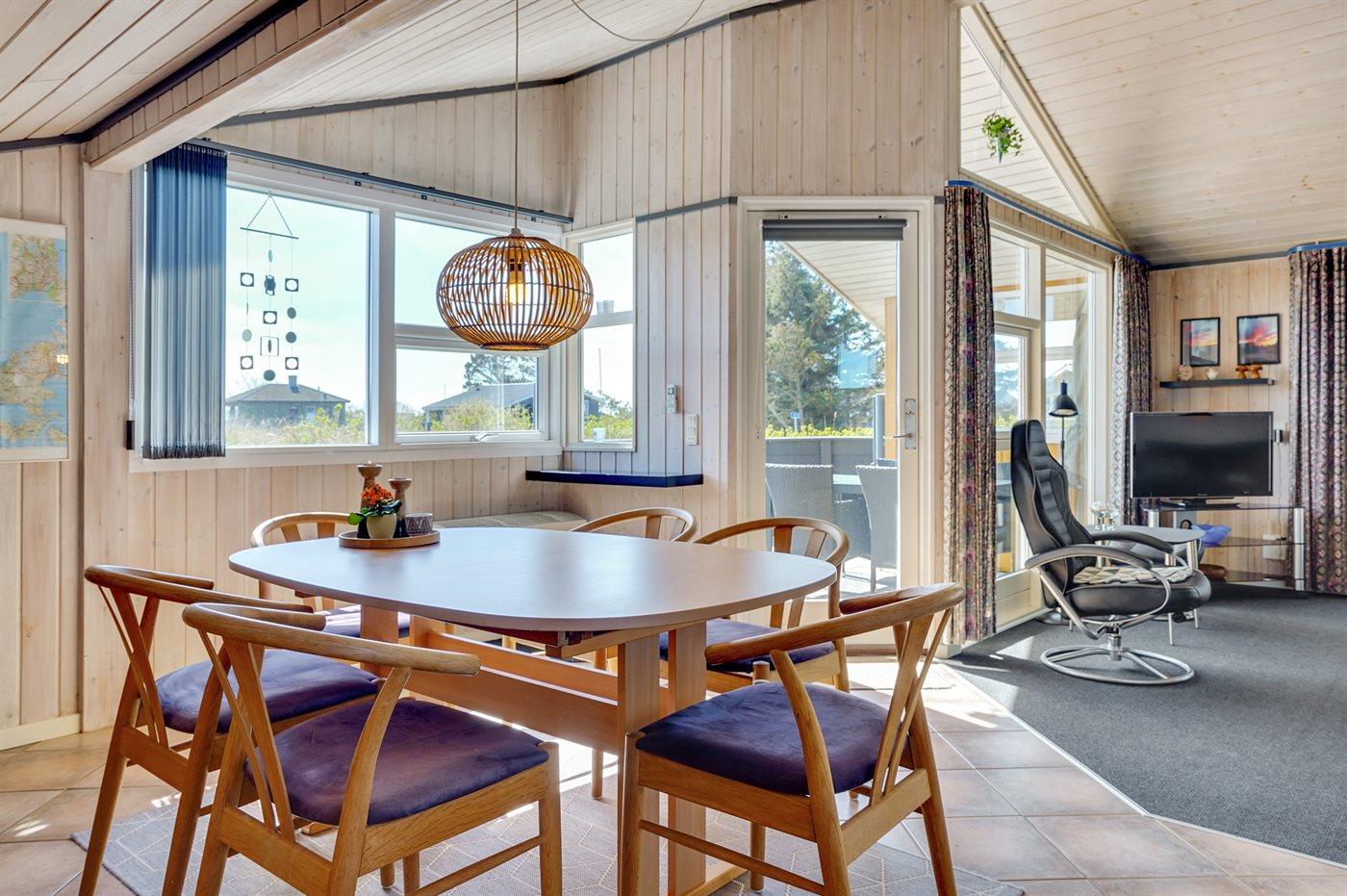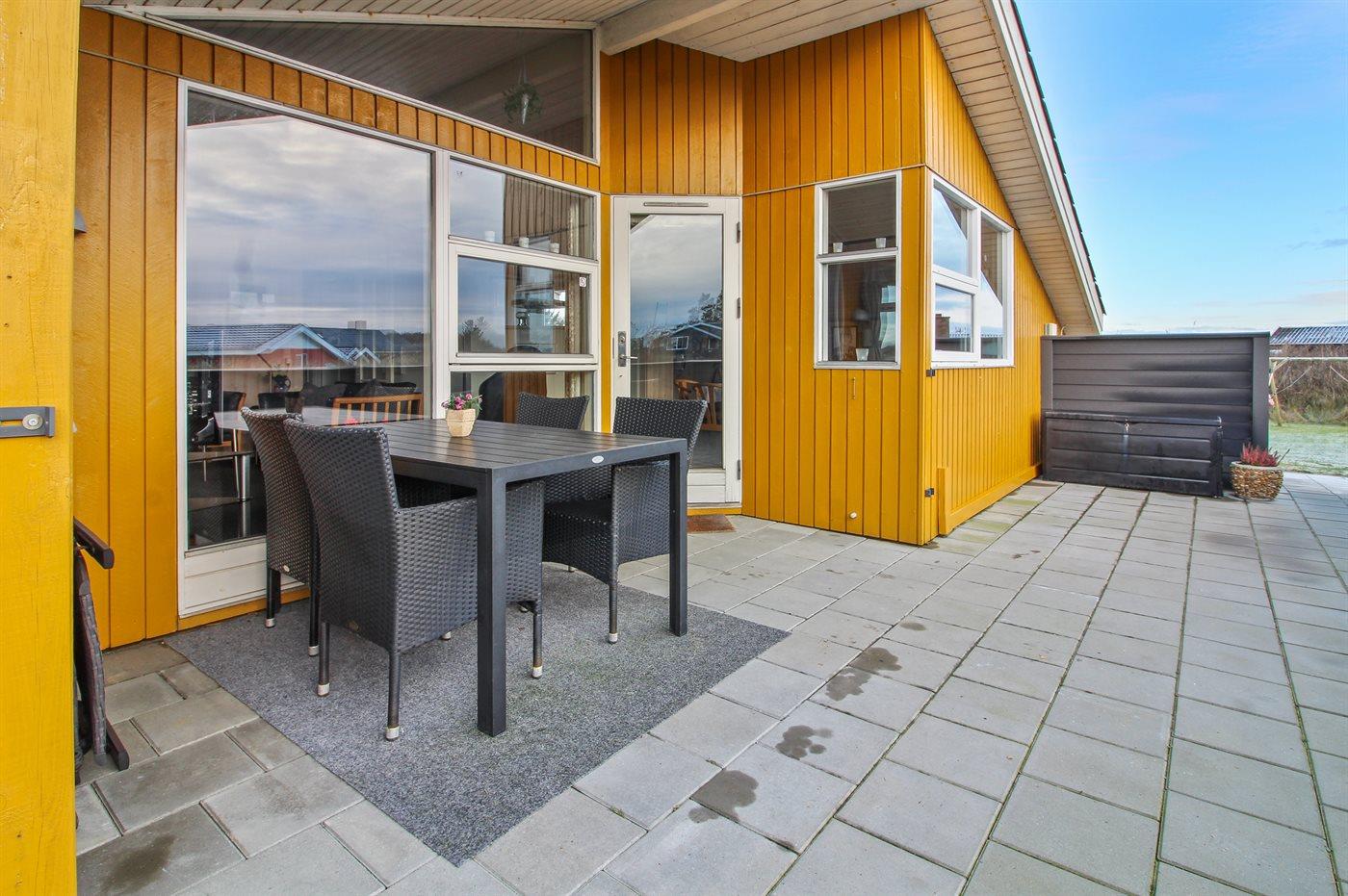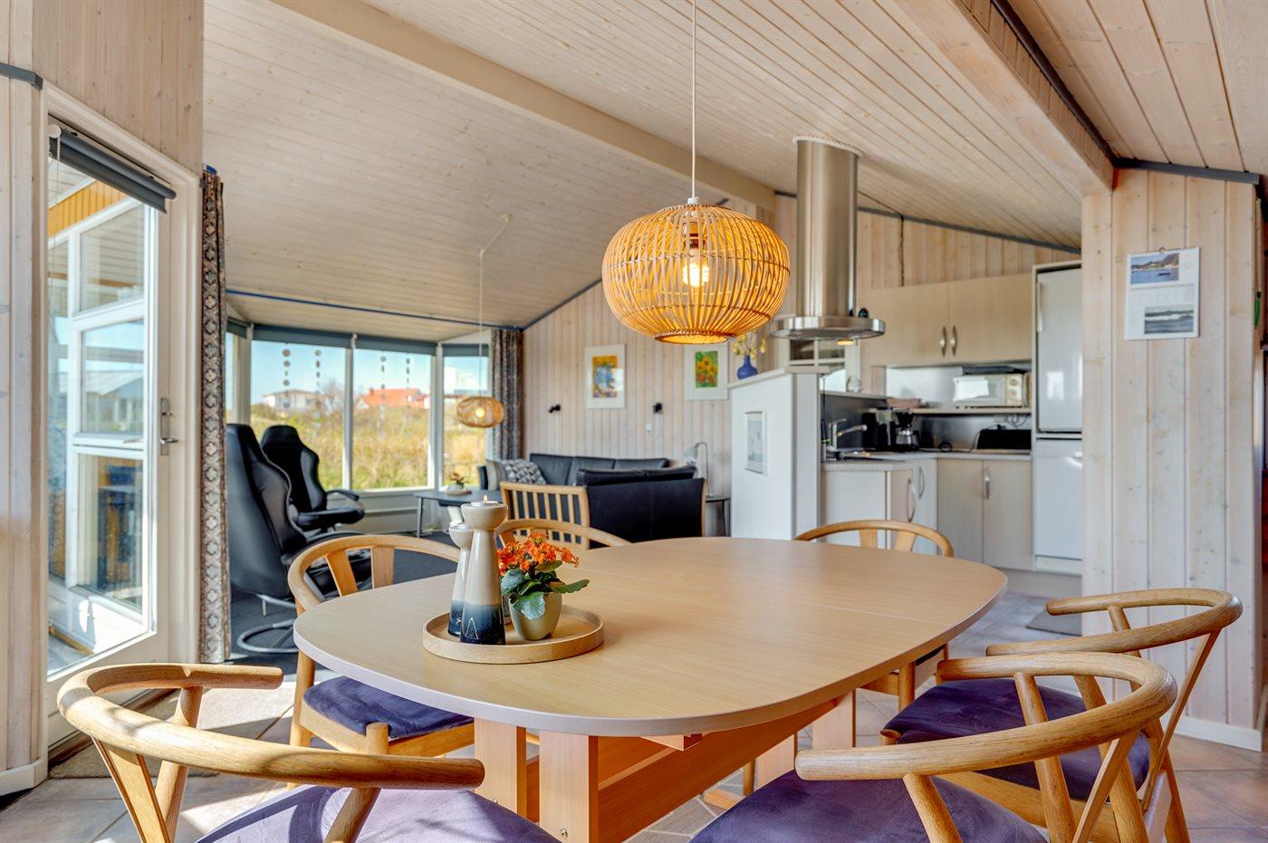Tæt ved Vesterhavet ligger dette dejlige sommerhus på en naturgrund, som er omgivet at en jordvold. Til huset hører åben, til dels afskærmet terrasse med havemøbler.