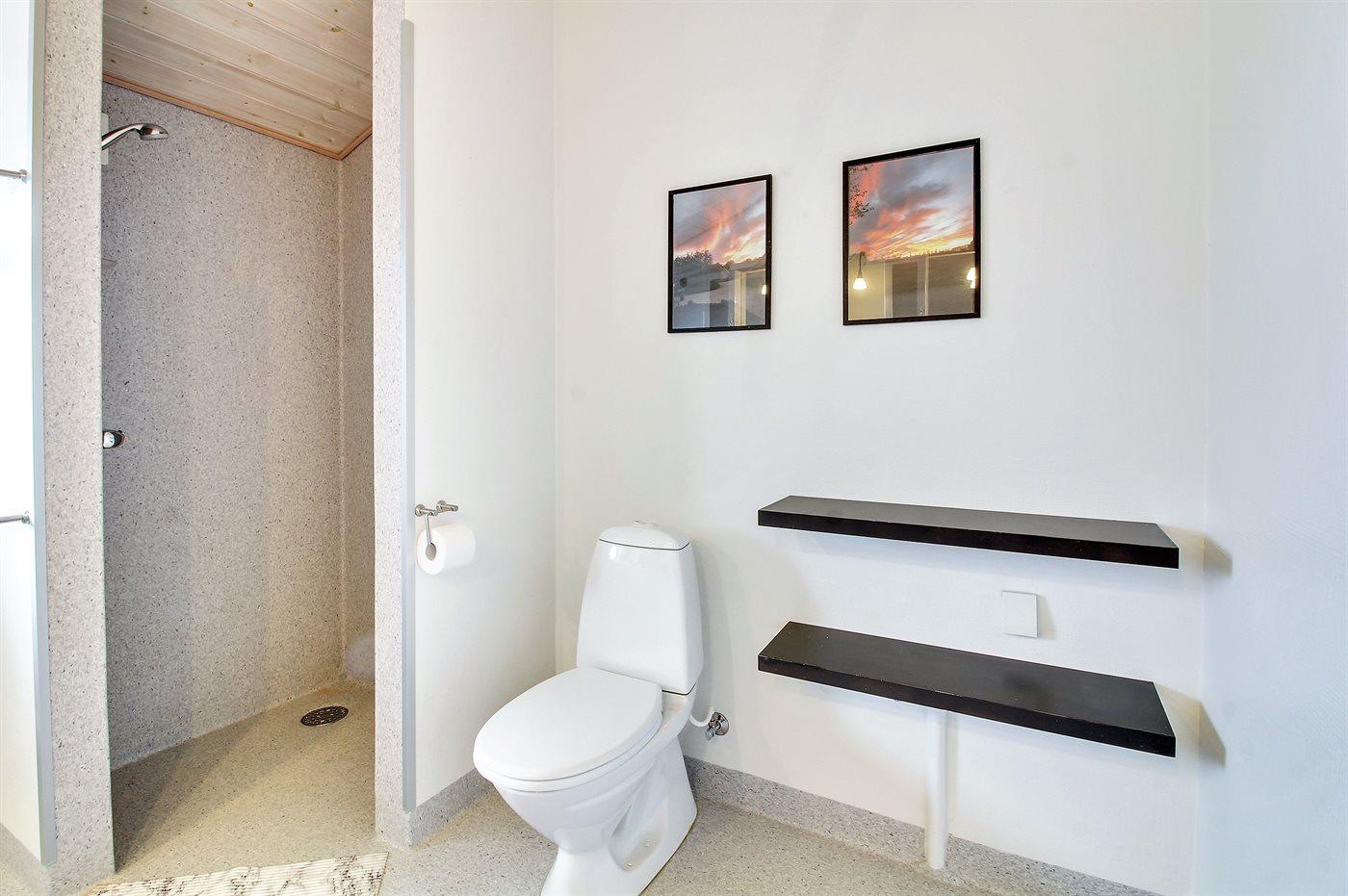 Der er 2 badeværelser med bruser og 2 toiletter. Der er gulvvarme på 1 badeværelse.