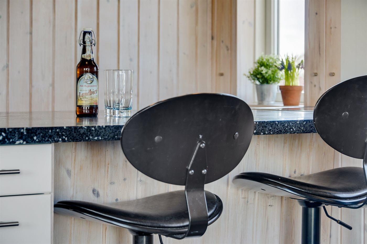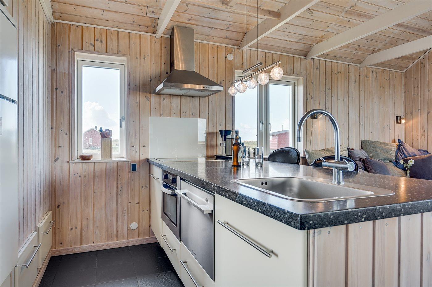 Køkkenet er udstyret med 1 køleskab. Der er 4 keramiske kogeplader, varmluftovn samt opvaskemaskine.