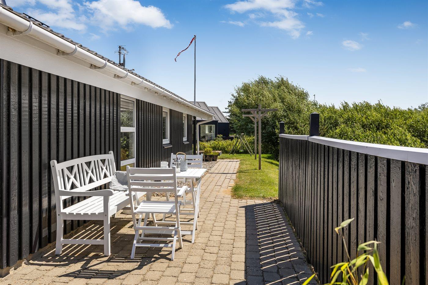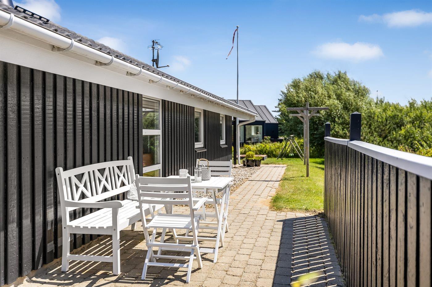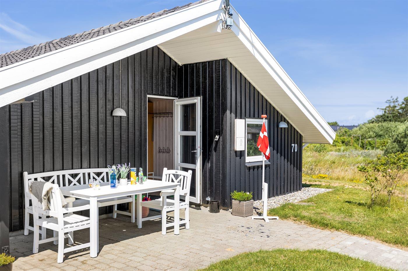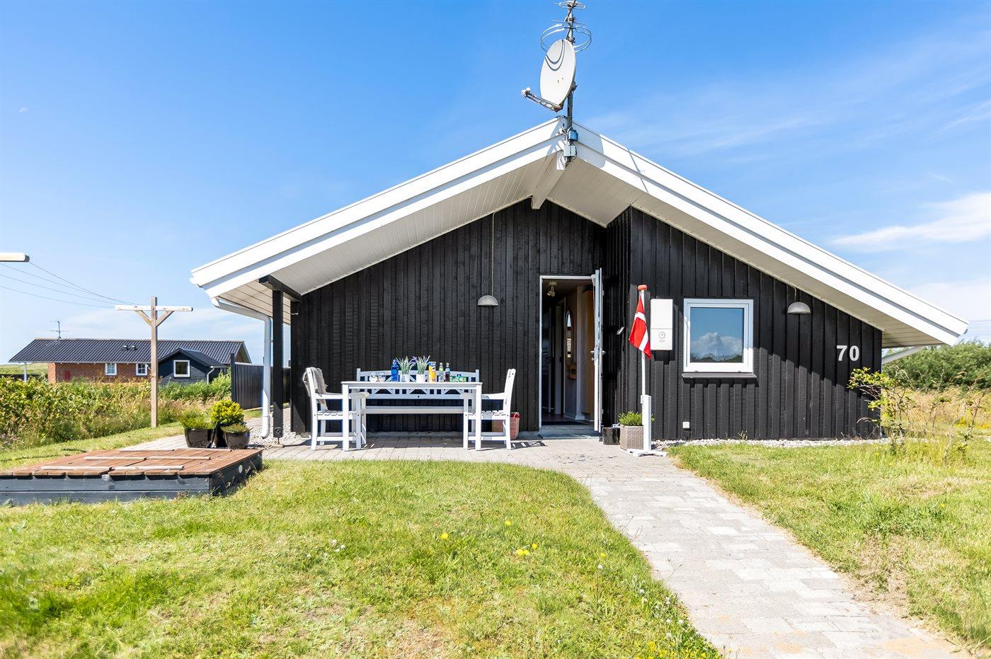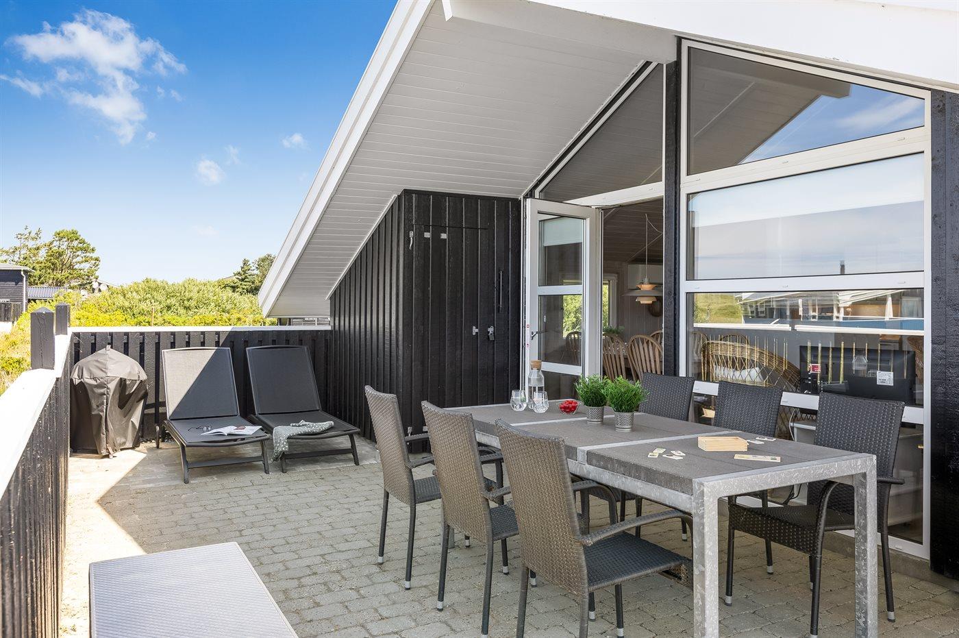 Et hyggeligt og veludstyret, flot træsommerhus med spa og sauna. Huset, som er bygget i 1998 og moderniseret i 2015, er beliggende på en børnevenlig naturgrund i 2. klitrække - nær stranden og med en dejlig udsigt over klitterne og Lakolk. Man kan spadsere direkte til stranden ad de små stier. Til huset hører et dejligt såvel åbent som overdækket og afskærmet terrasseareal, hvorfra der er udsigt over klitterne. Lækre havemøbler og Weber grill står til rådighed.