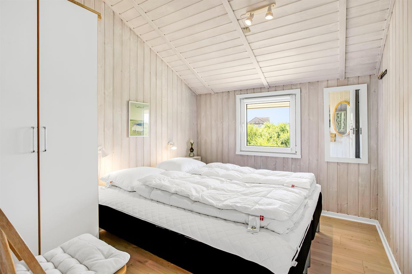 Husets sovepladser fordeler sig på 3 soveværelser, alle med dobbeltseng. Til de små feriegæster er der barneseng og høj barnestol samt sandkasse og gynge.