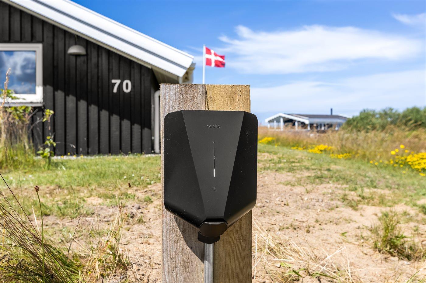 Der er installeret stik til opladning af elbil. Parkering ved ferieboligen.
