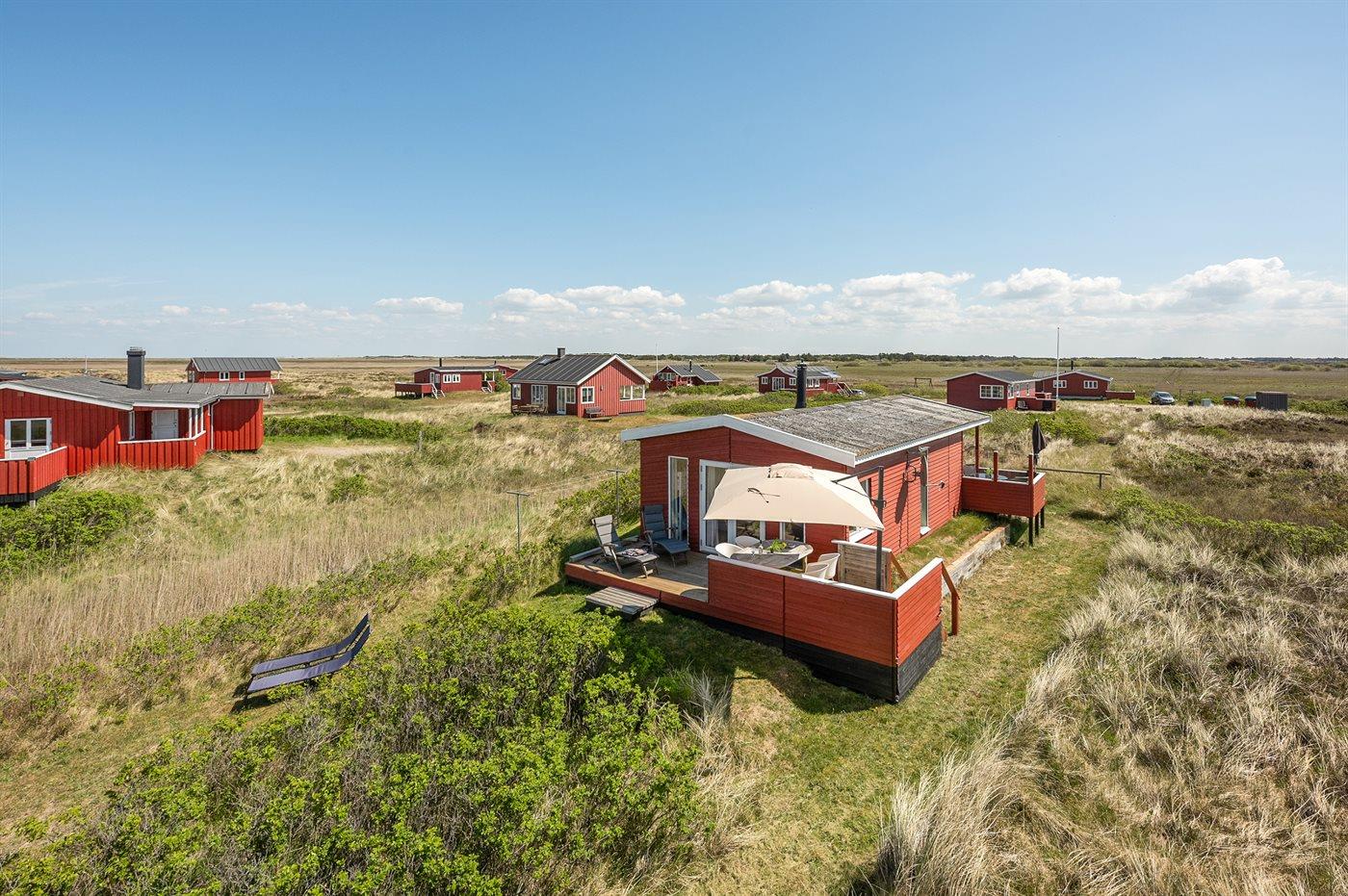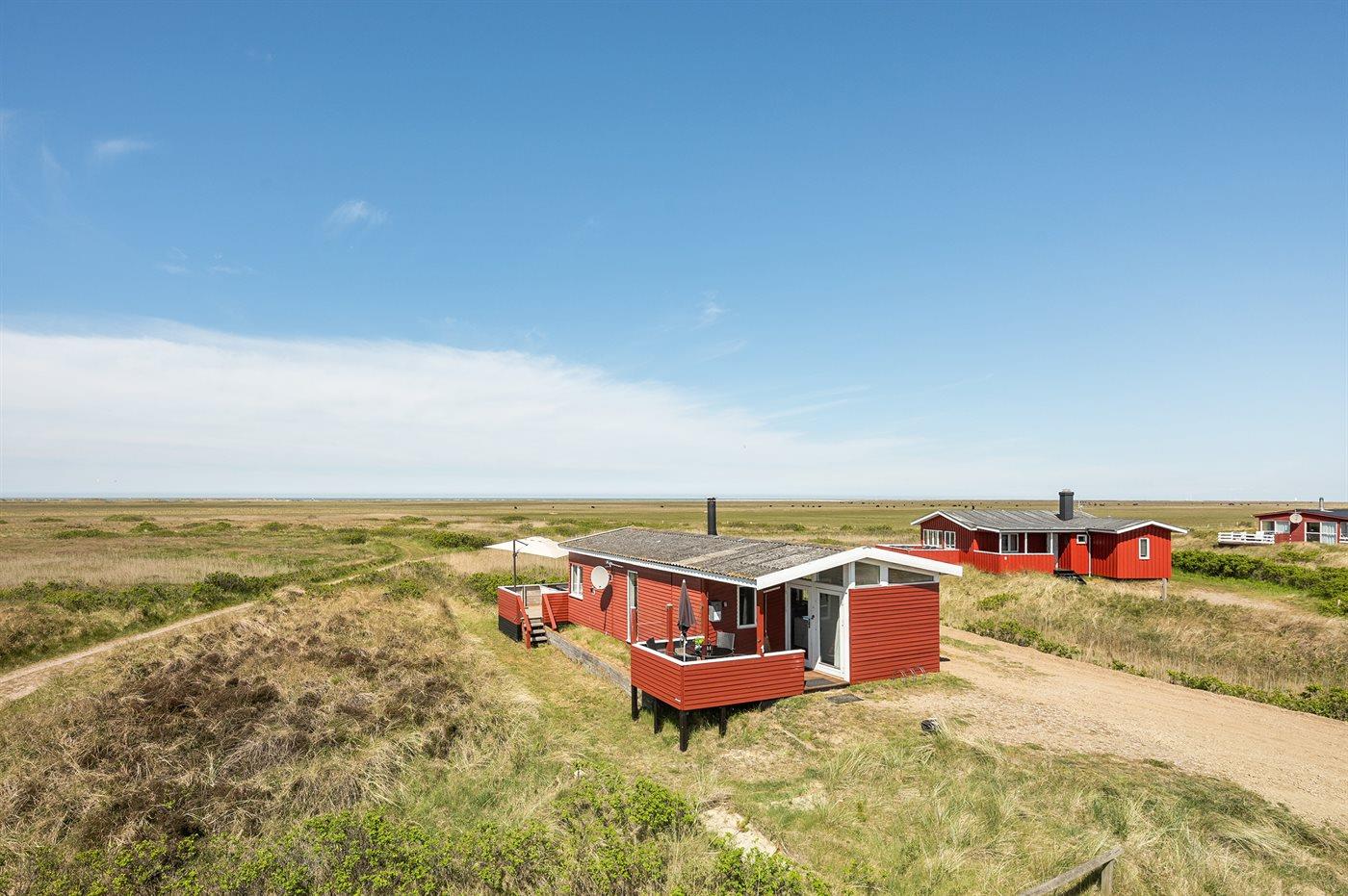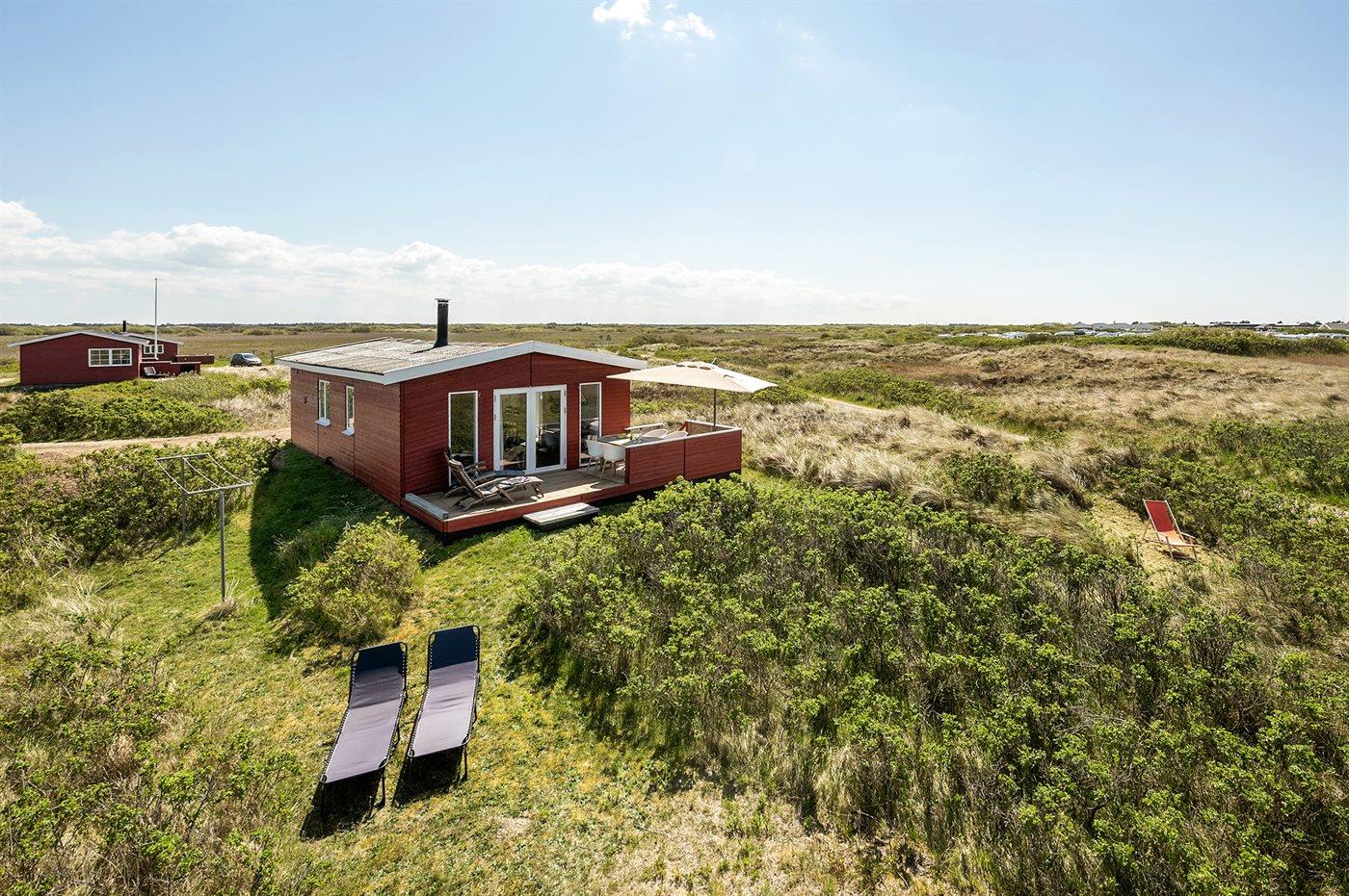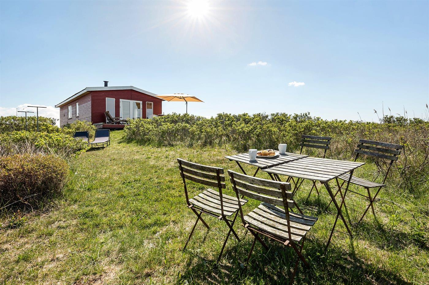 Dette lille, hyggelige sommerhus i træ, bygget i 1950 og løbende renoveret med bl.a. nyt køkken i 2026, ligger med en fantastisk, ugenert udsigt over Vesterhavet. Huset ligger i forreste række i en lille fredelig enklave med 13 huse i et fredet naturområde. Der er gåafstand til butikker og 300 m til stranden. Nyd den fantastiske solnedgang og naturen. Råvildt, harer, fasaner og ræven mødes ikke sjældent.