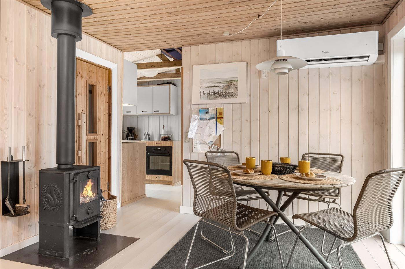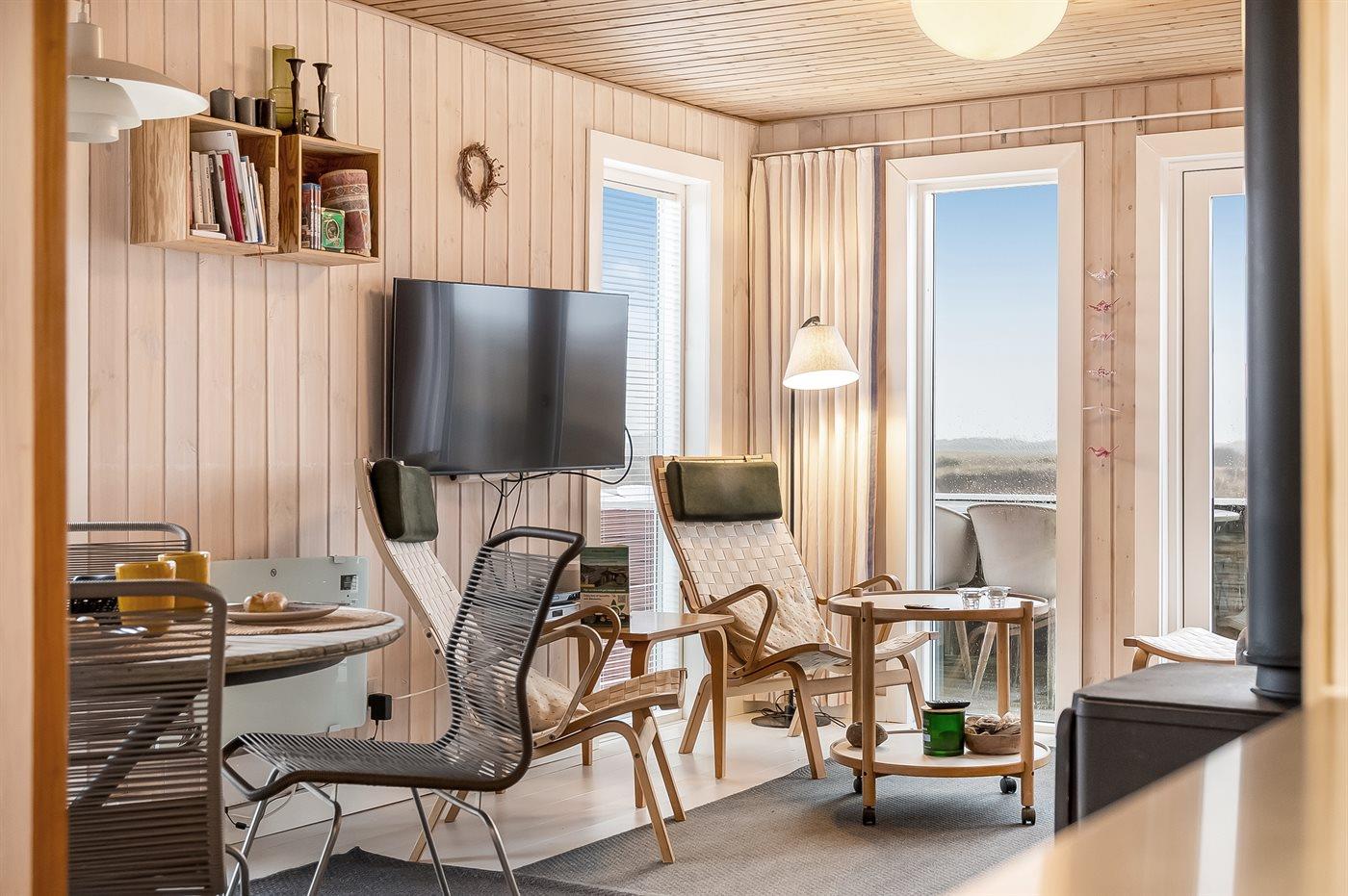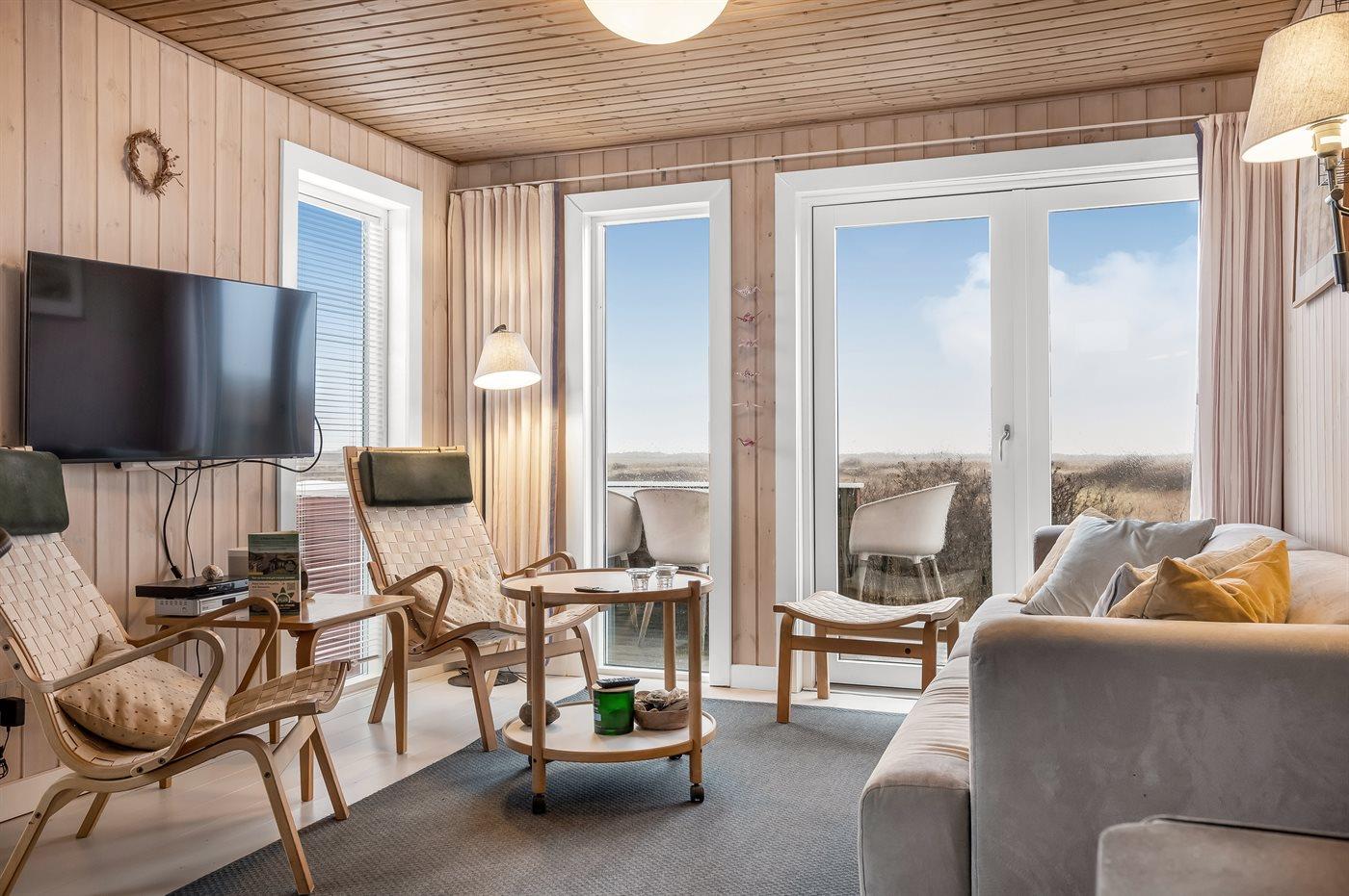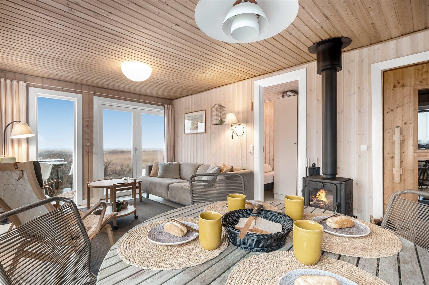 Dette lille, hyggelige sommerhus i træ, bygget i 1950 og løbende renoveret med bl.a. nyt køkken i 2026, ligger med en fantastisk, ugenert udsigt over Vesterhavet. Huset ligger i forreste række i en lille fredelig enklave med 13 huse i et fredet naturområde. Der er gåafstand til butikker og 300 m til stranden. Nyd den fantastiske solnedgang og naturen. Råvildt, harer, fasaner og ræven mødes ikke sjældent.