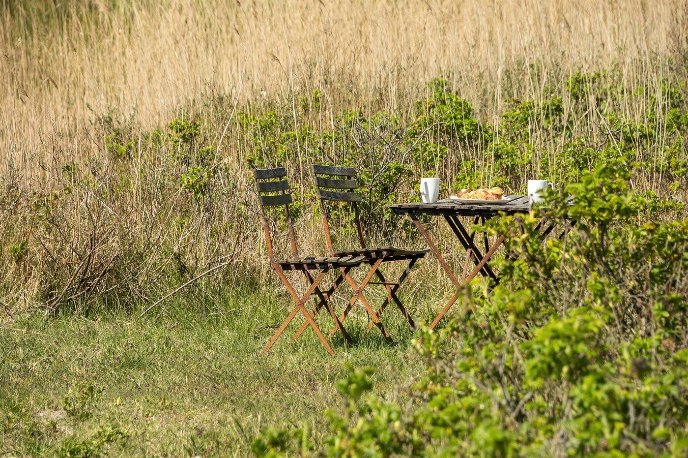 Til huset hører to terrasser med havemøbler - en åben og en overdækket.