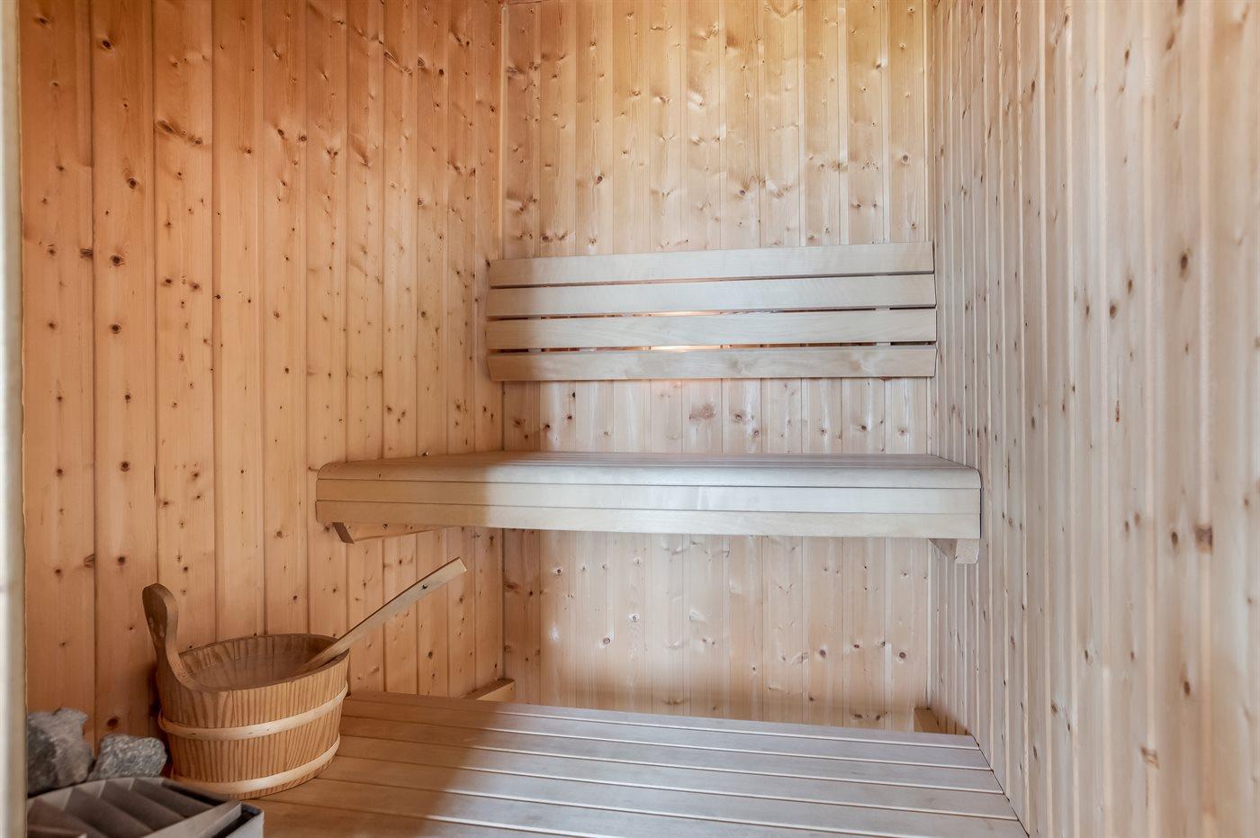 Badeværelse med bruser, gulvvarme, vaskemaskine og tørretumbler. Sauna. Køkkenet med bl.a. fryser ligger i forbindelse med opholdsstuen, som er udstyret med bl.a. brændeovn, fladskærms-TV med parabolantenne (separat betjening af parabol/satellit i soveværelse), DVD-afspiller og bluetooth højtaler (SONOS).