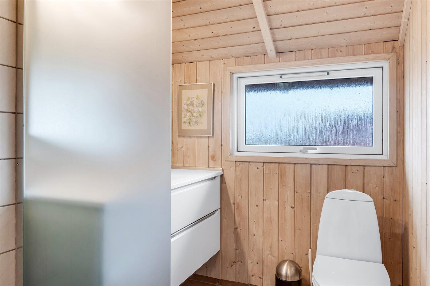 Der er 1 badeværelse med bruser og 1 toilet.. Der er gulvvarme på 1 badeværelse.