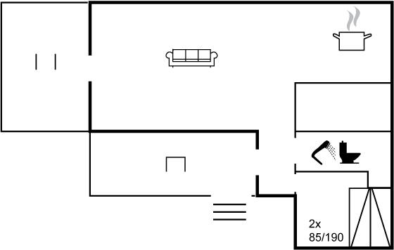 Der er i alt 1 soveværelse. Sovepladserne fordeler sig på: 2 sovepladser i dobbeltseng. 2 sovepladser på madrasser. 2 af disse sovepladser befinder sig på husets hems.