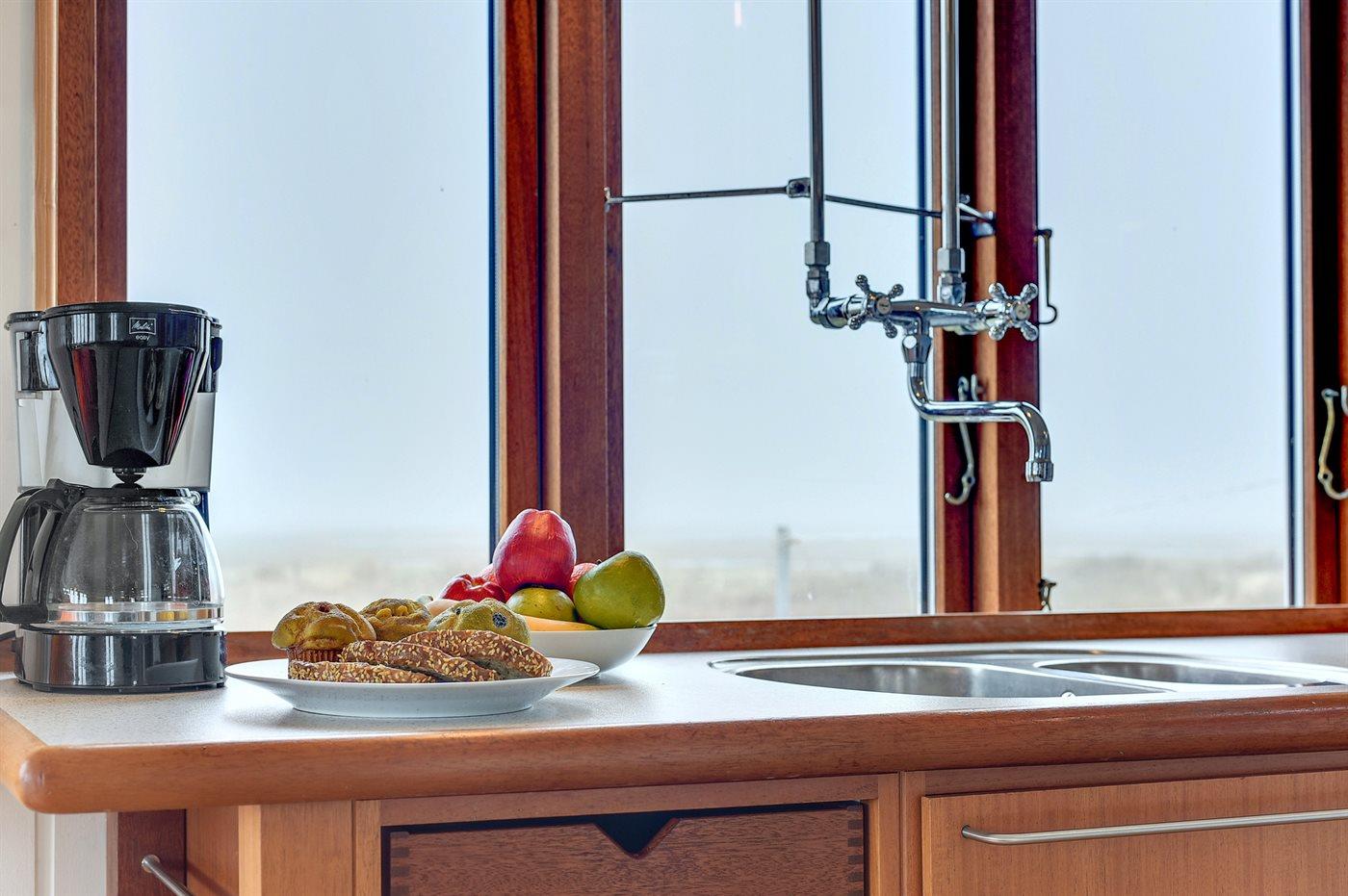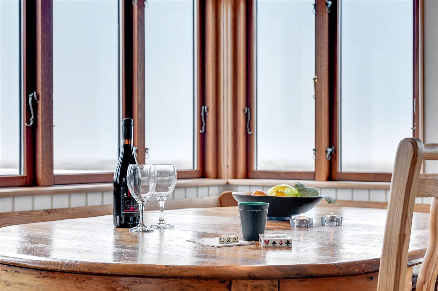 Køkkenet er udstyret med 1 køleskab. Der er 4 keramiske kogeplader, varmluftovn, mikrobølgeovn.