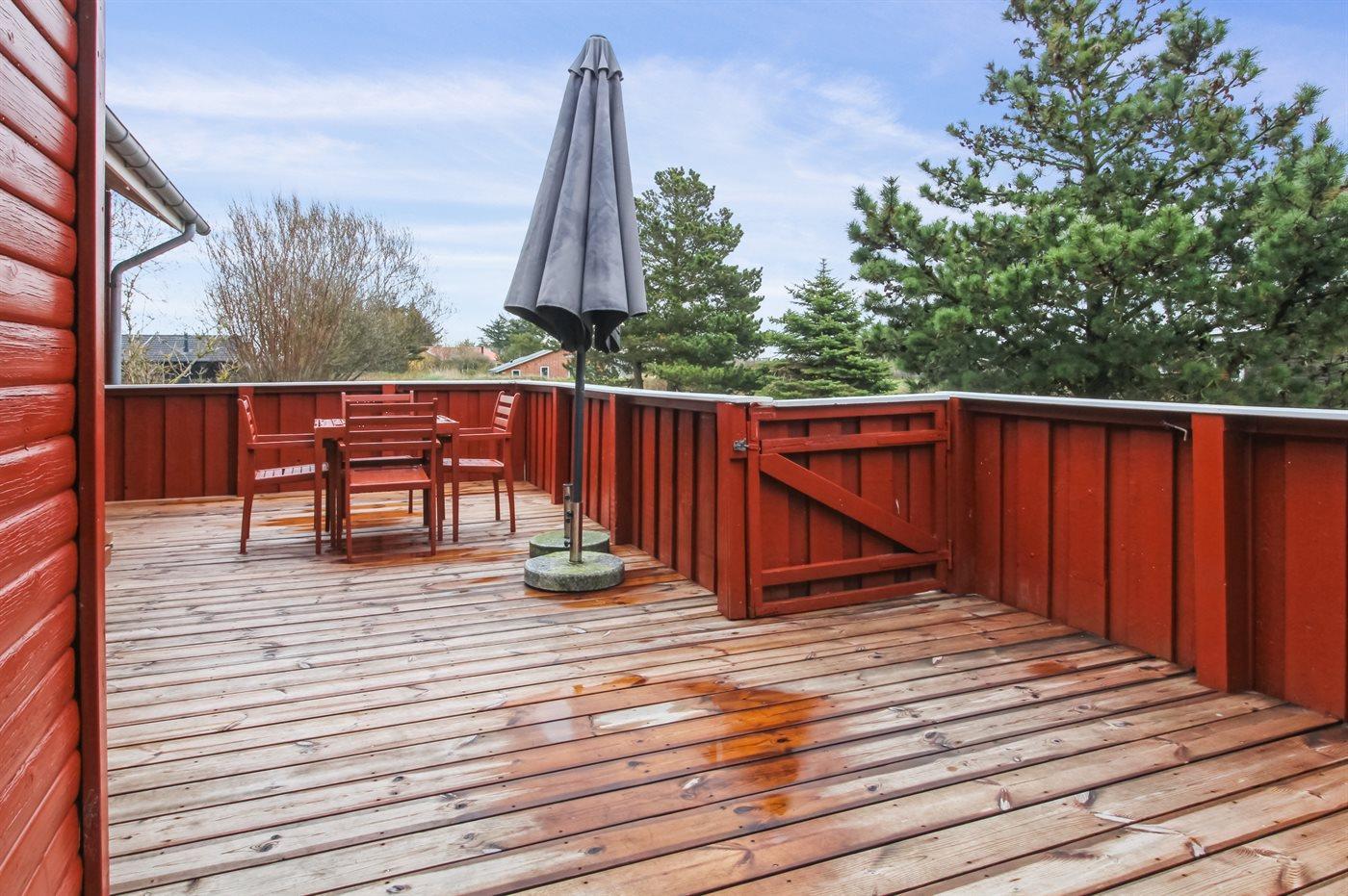 Ferieboligen er beliggende på en 1124 m² stor naturgrund. Der er 500 m til havet. Nærmeste forretning er beliggende i en afstand af 700 m. Til ferieboligen hører 40 m² terrasseareal. Heraf i alt 40 m² lukket terrasse. Der er redskabsrum. Gynge. Der er installeret stik til opladning af elbil. Type 2 stik. Parkering ved ferieboligen.