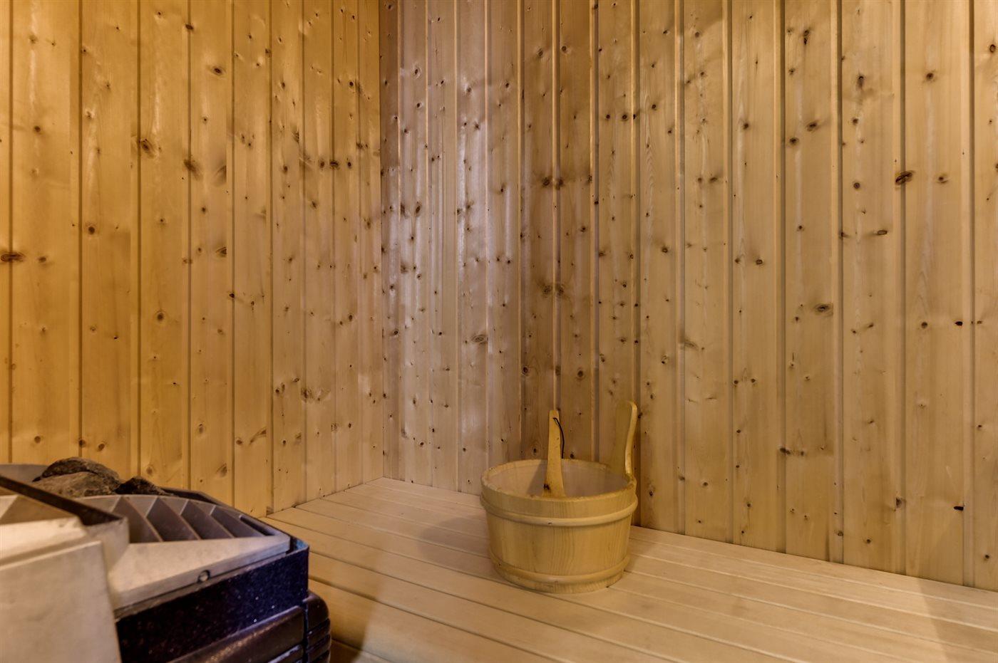 Der er 1 badeværelse med bruseniche og 1 toilet.. Der er gulvvarme på 1 badeværelse. I saunaen er der mulighed for afslapning. (dampterapi).