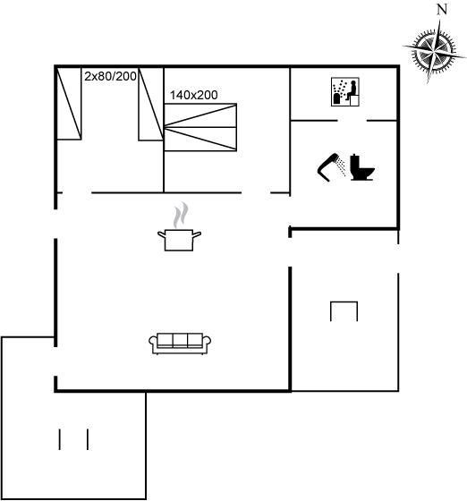 Der er i alt 2 soveværelser. Sovepladserne fordeler sig på: 2 sovepladser i dobbeltseng. 2 sovepladser i enkeltsenge.