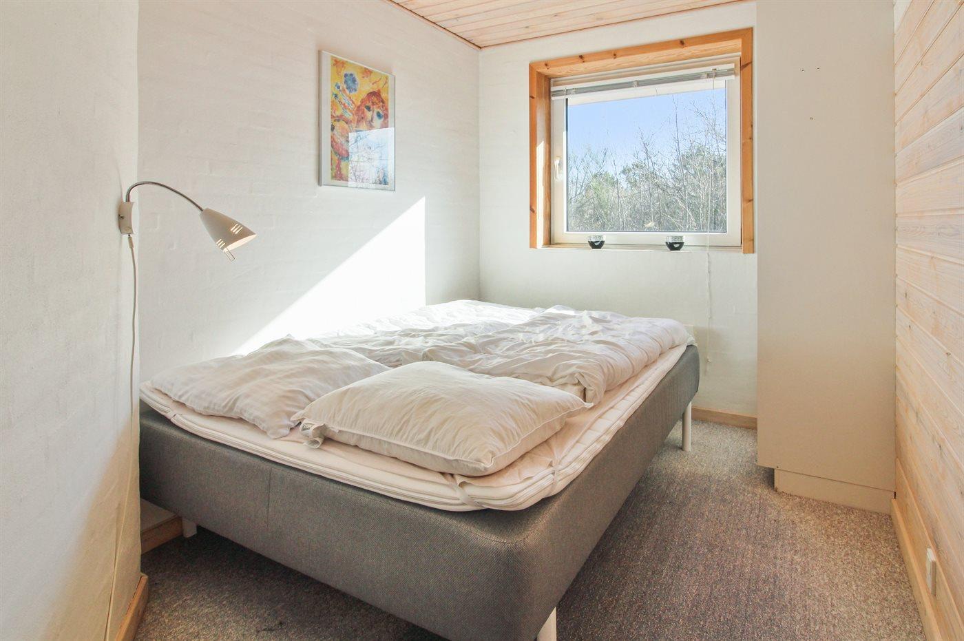 Dejligt sommerhus med god og gedigen indretning, bygget i sten 1979 og moderniseret 2007, beliggende på naturgrund tæt på Vesterhavet. Til huset hører flot, åben terrasse med havemøbler. 2 badeværelser, begge med bruseniche og gulvvarme. Sauna med dampterapi. Køkkenet er bl.a. udstyret med fryser, varmluftovn, mikrobølgeovn og opvaskemaskine. Opholdsstuen er indrettet med brændeovn, DVD-afspiller, stereoanlæg og CD-afspiller. Af yderligere udstyr kan gratis, trådløs internetforbindelse (computer skal medbringes), vaskemaskine samt tørretumbler nævnes og der er installeret energibesparende varmepumpe. Husets sovepladser fordeler sig på 2 værelser med dobbeltseng og 1 værelse med dobbelt sovesofa. Til de mindste feriegæster er der barneseng, høj barnestol og sandkasse.