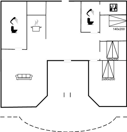 Husets sovepladser fordeler sig på 2 værelser med dobbeltseng og 1 værelse med dobbelt sovesofa.