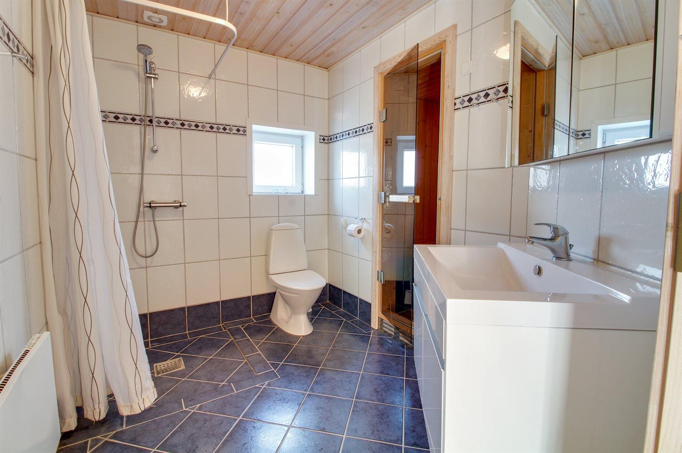 Til huset hører flot, åben terrasse med havemøbler. 2 badeværelser, begge med bruseniche og gulvvarme. Sauna med dampterapi. Køkkenet er bl.a. udstyret med fryser, varmluftovn, mikrobølgeovn og opvaskemaskine. Opholdsstuen er indrettet med brændeovn. Af yderligere udstyr kan gratis, trådløs internetforbindelse (computer skal medbringes), radio, vaskemaskine samt tørretumbler nævnes og der er installeret energibesparende varmepumpe.
