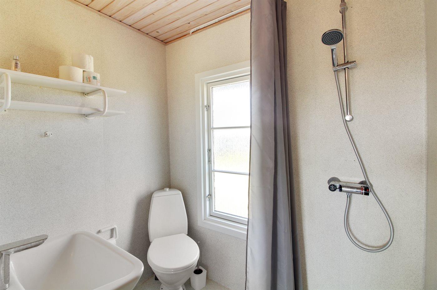 Der er 1 badeværelse med bruseniche og 1 toilet.