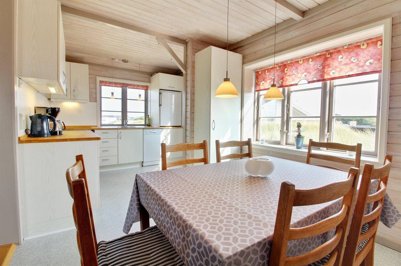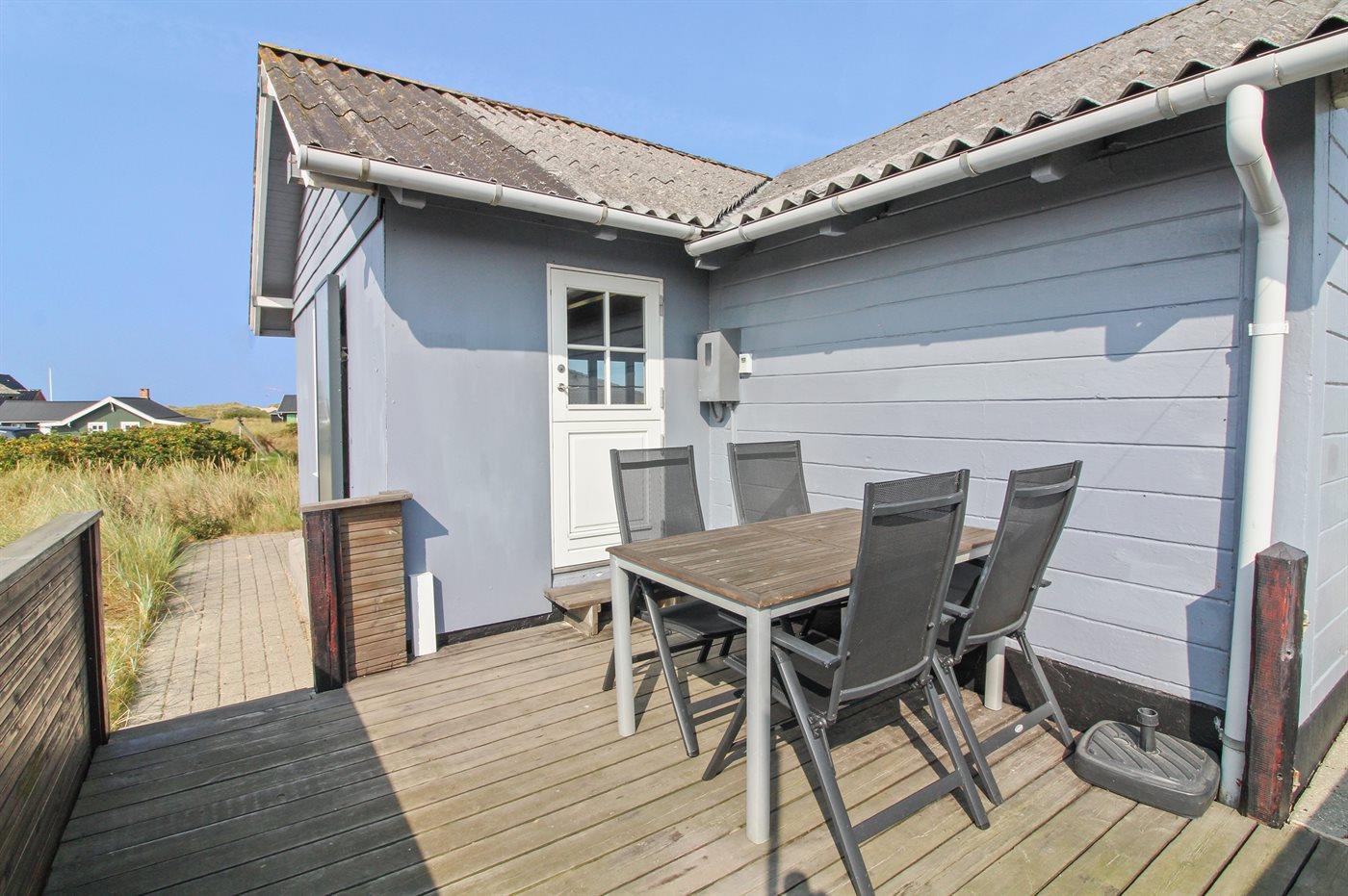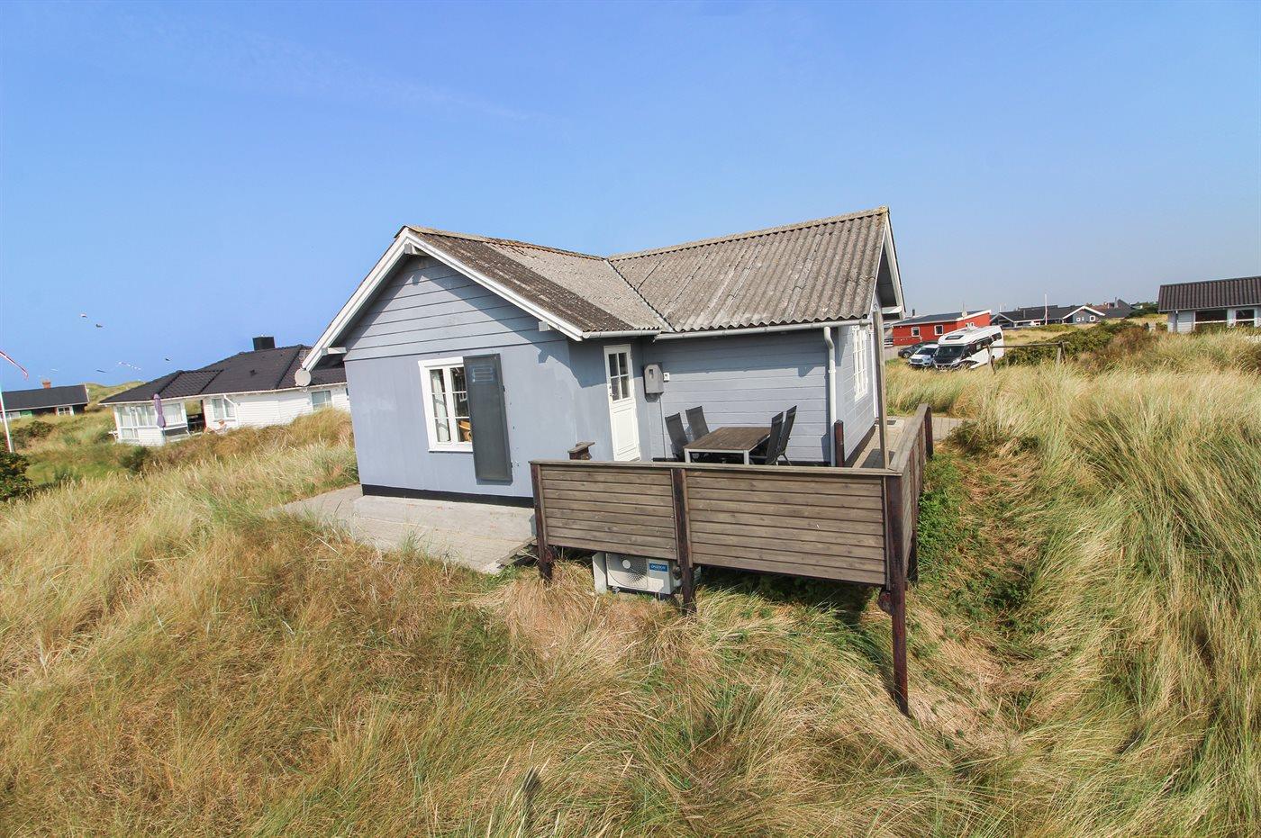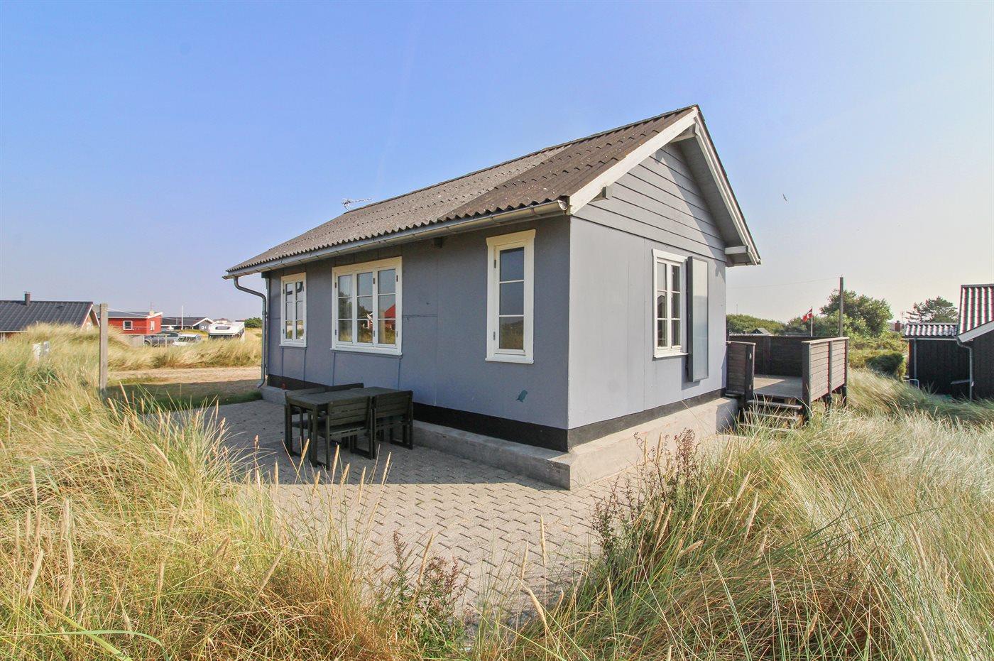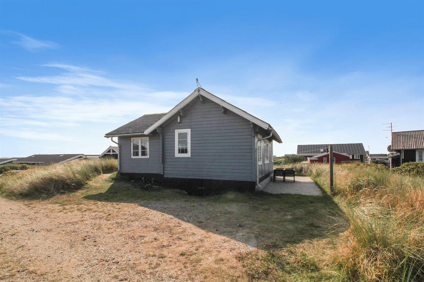 Dette lille, hyggeligt indrettede sommerhus ligger tæt på klitterne og den dejlige sandstrand.