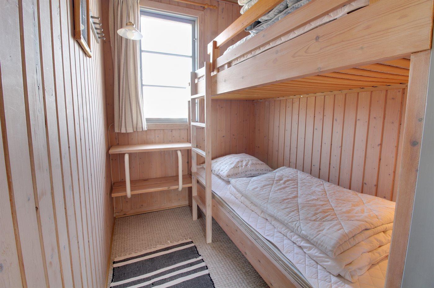 Der er i alt 2 soveværelser. Sovepladserne fordeler sig på: 2 sovepladser i enkeltsenge. 2 sovepladser i køjeseng.