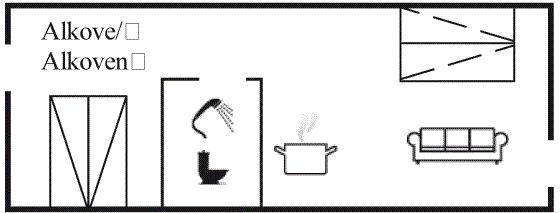 Denne lejlighed er på 30 m2 og er indrettet til 4 personer - 2 af sovepladserne er kun egnet til større børn (4-11 år). Der findes badeværelse med bruser, køkken, der bl.a. er udstyret med 2 kogeplader og mikrobølgeovn samt opholdsstue med radio og TV tilsluttet fællesantenne. Desuden gratis, trådløs internetforbindelse til rådighed (computer skal medbringes). Sovepladserne fordeler sig på en alkove med dobbeltseng samt 2 sovepladser på dobbelt sovesofa i opholdsstuen.