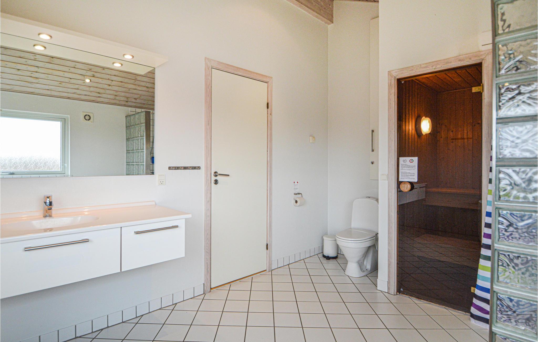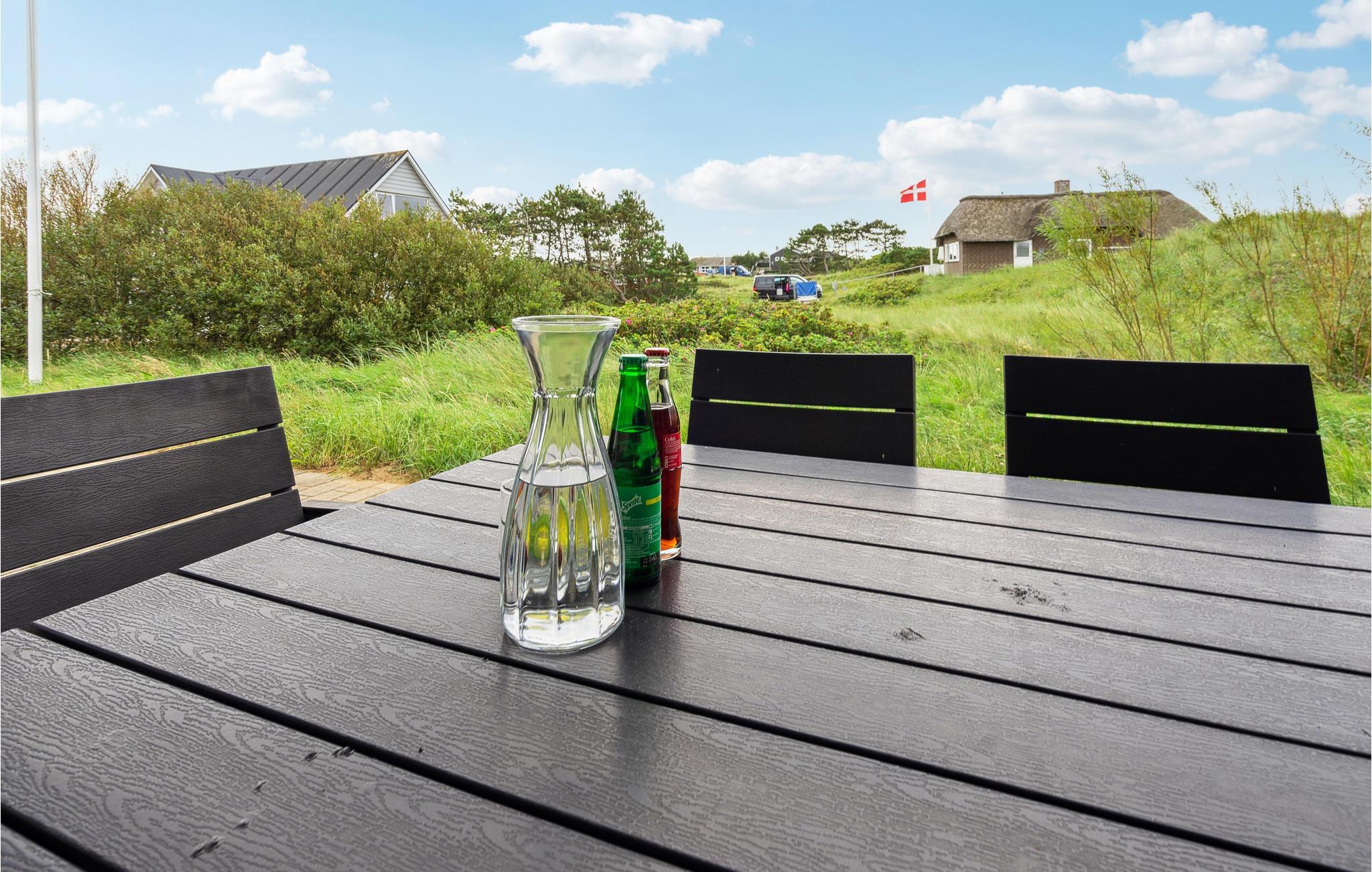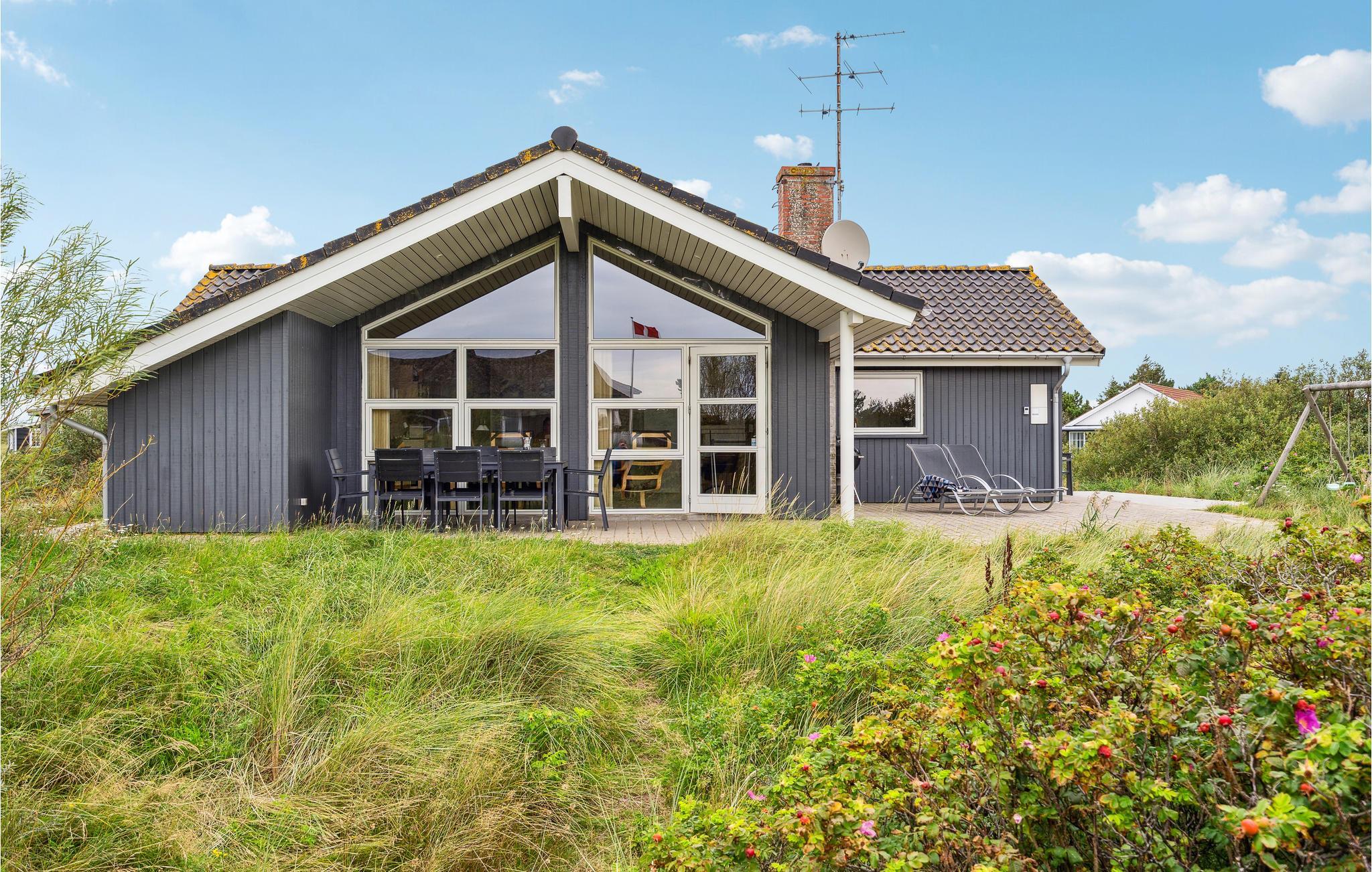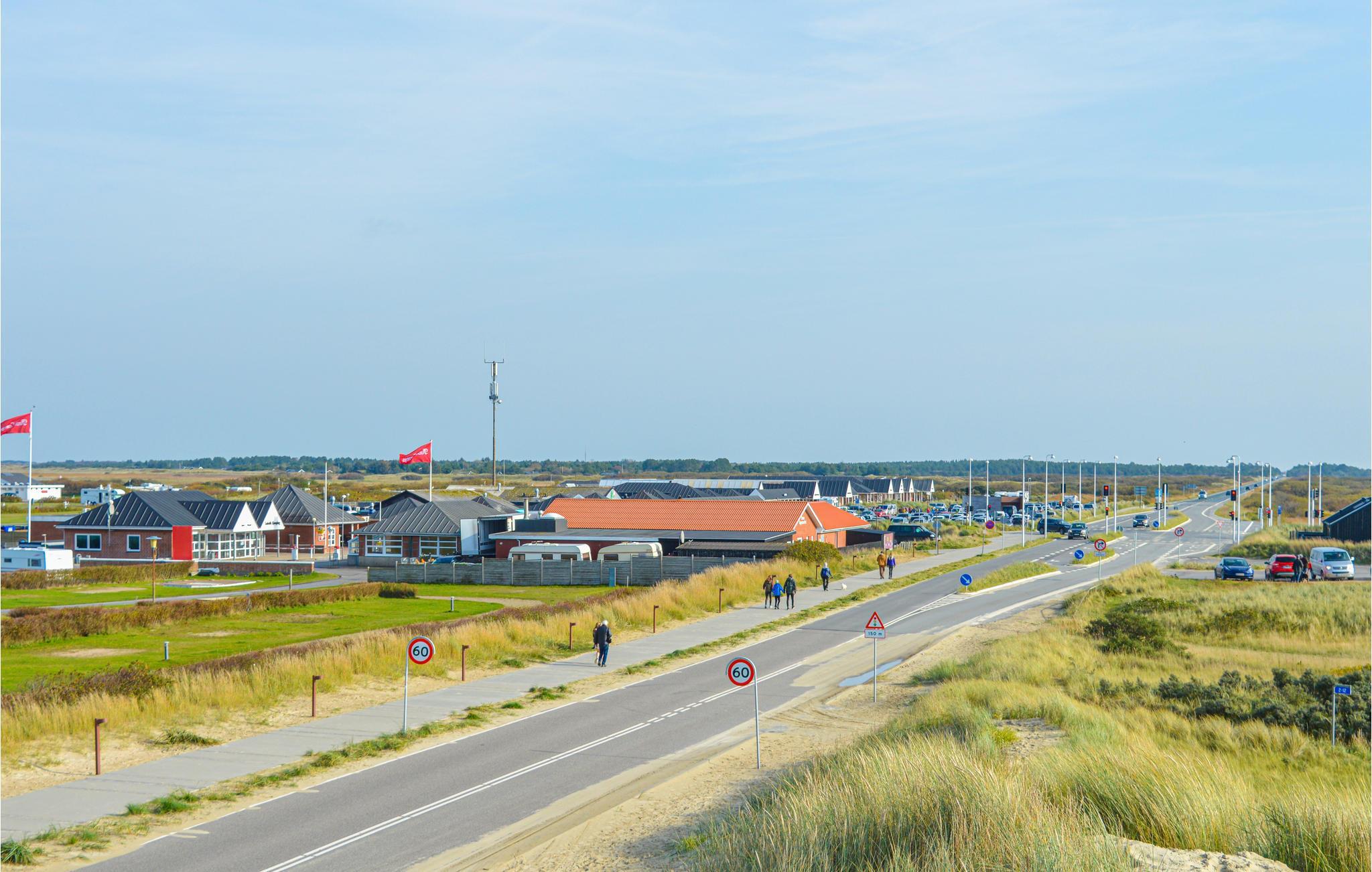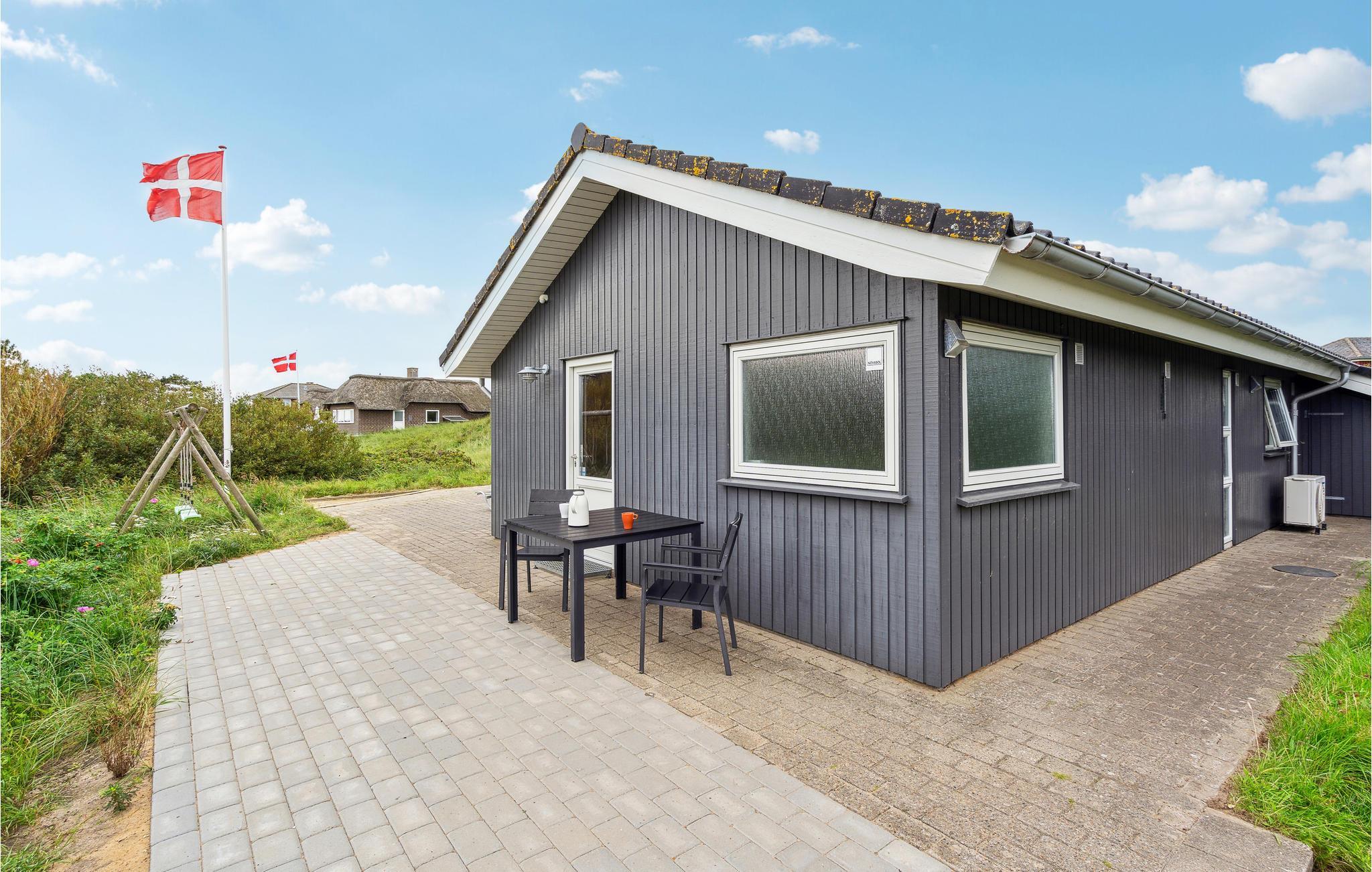 Dette dejlige feriehus, kun adskilt fra Vesterhavet af klitter og marskområde, er ideelt for både aktiv og rolig ferie for såvel to børnefamilier som for otte voksne. Huset har terrasse mod øst, vest og syd. Den sydvendte terrasse er delvist overdækket. Indvendigt fremtræder huset lyst og hyggeligt. Det er udstyret med moderne faciliteter samt brændeovn, sauna og spabad. Det ene soveværelse kan benyttes som legerum for børnene og er udstyret med bl.a. legetøj og fjernsyn. Inkl. i lejen er en udvidet badelandsaftale som også omfatter gratis Sport og Fitness.