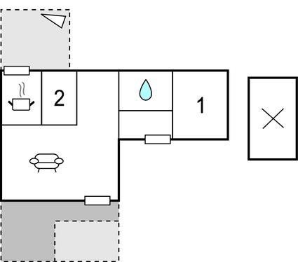 Opholdsstue/køkken - 1 Soveplads. (Enkeltseng(e)).
