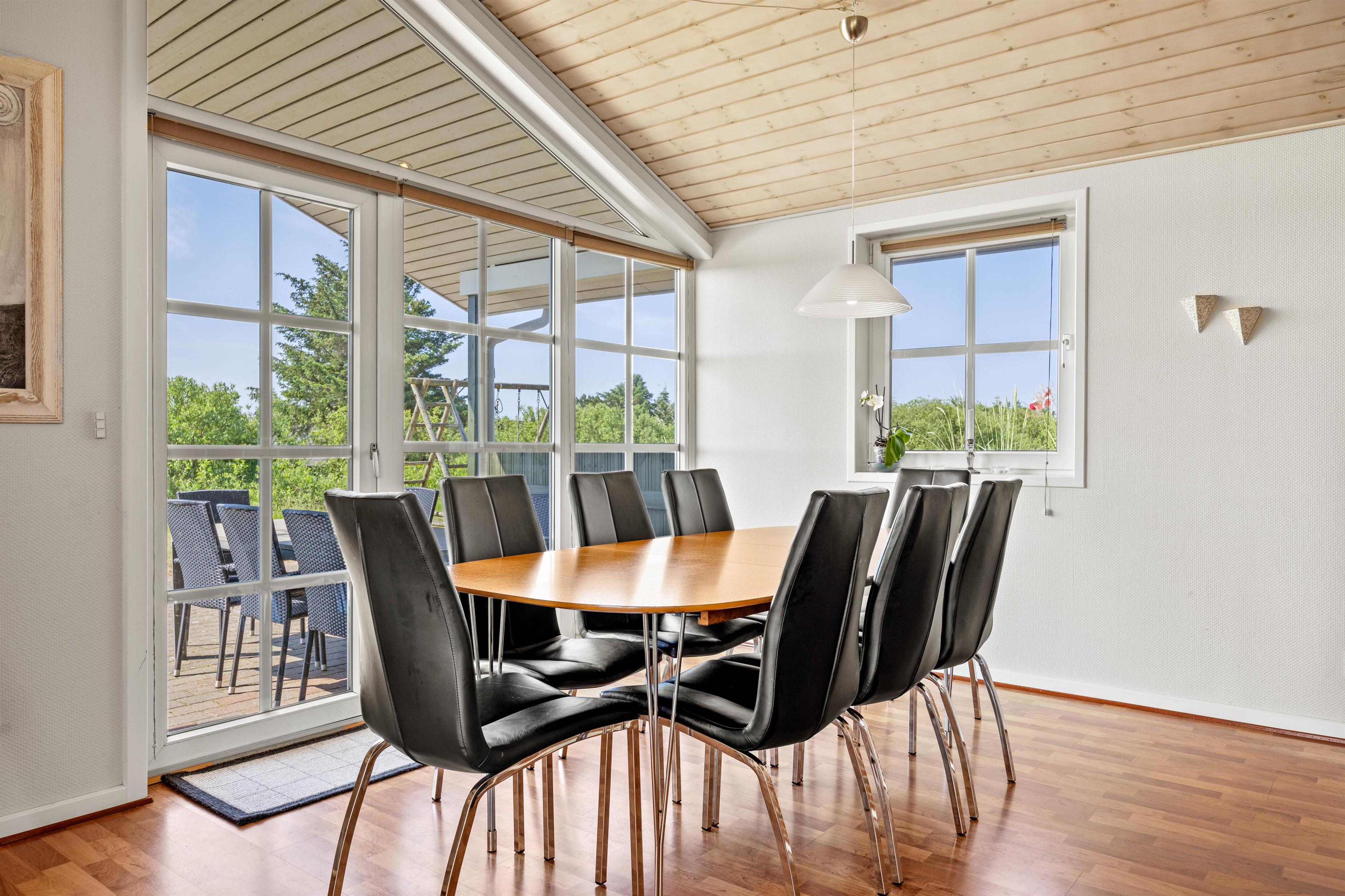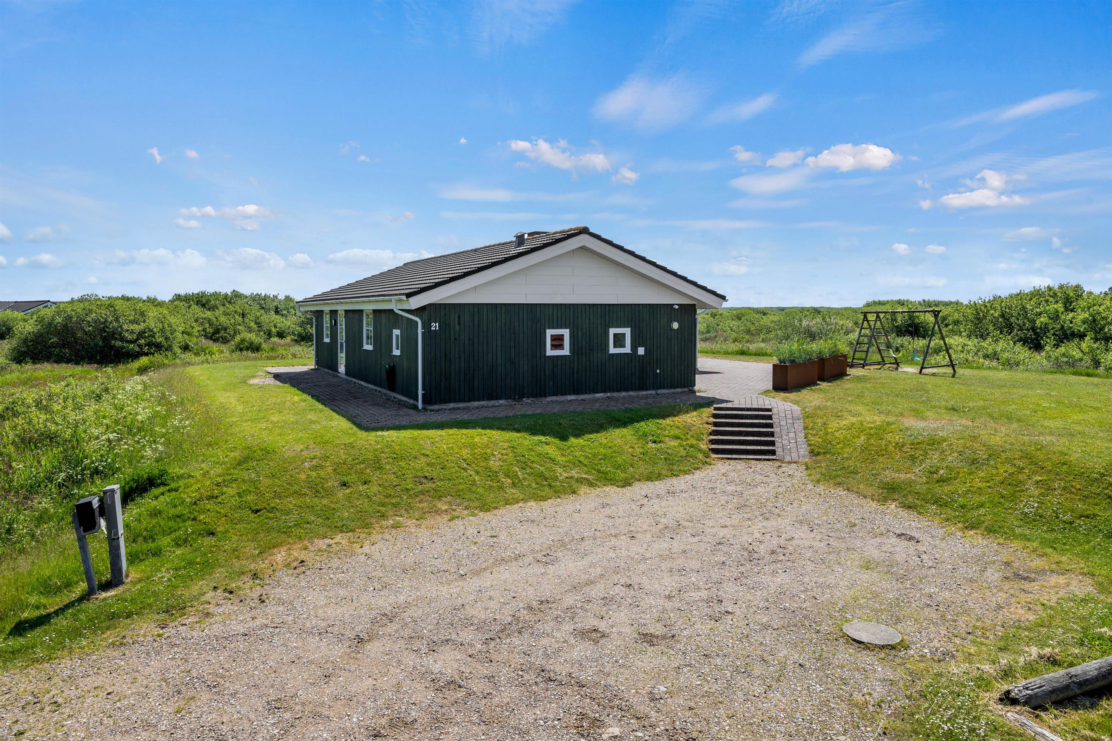 Terrassen ved sommerhuset har både et åbent og et overdækket afsnit, så her kan I rykke rundt efter solen. Tag solbad og slap af i havemøblerne, imens børnene leger i sandkassen og gyngerne. Tænd op i grillen til aften, og nyd et lækkert grillmåltid sammen, imens skyggerne bliver lange. Bagefter kan I nå en tur igennem klitlandskabet ned til stranden og opleve solnedgangen i Vesterhavet.