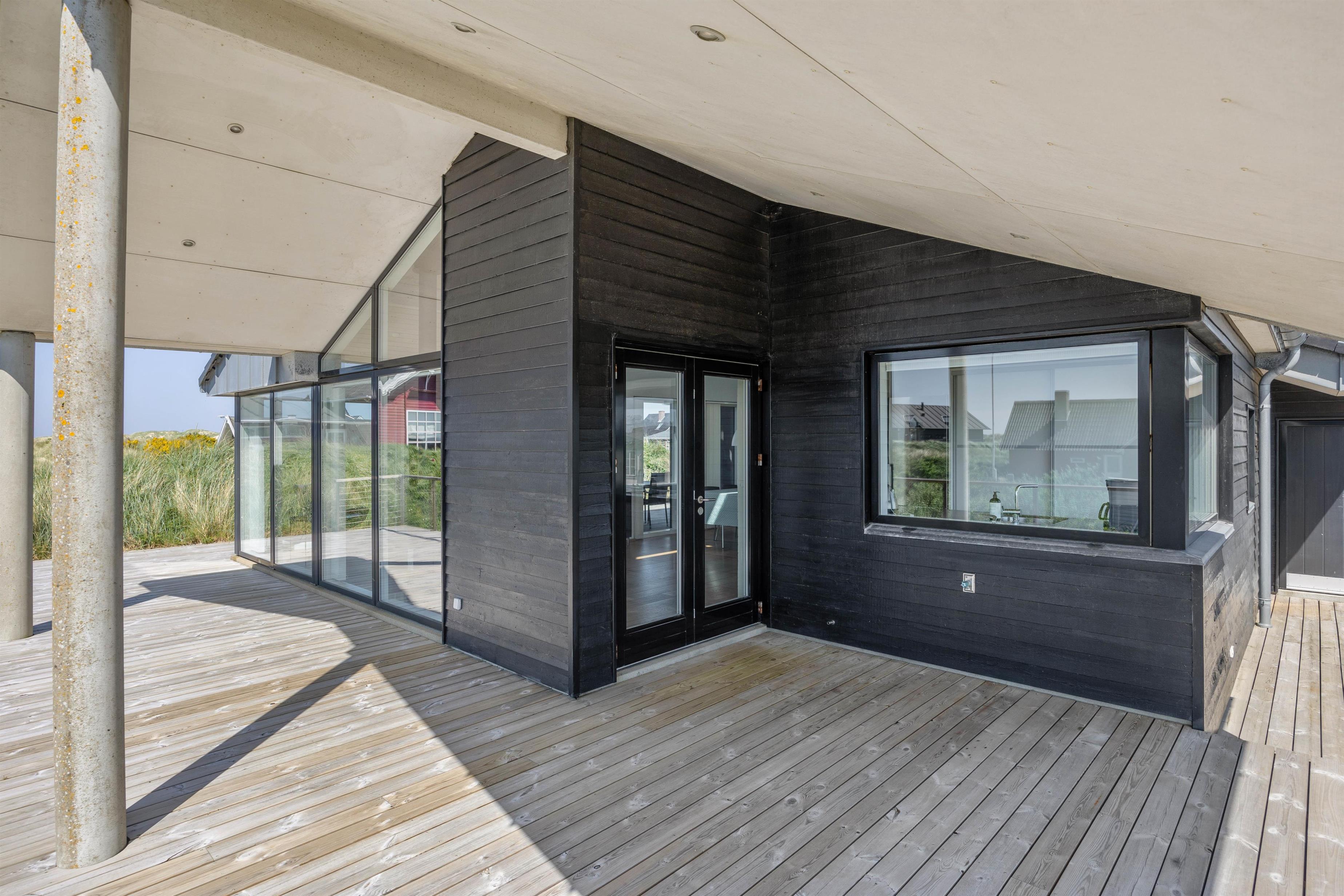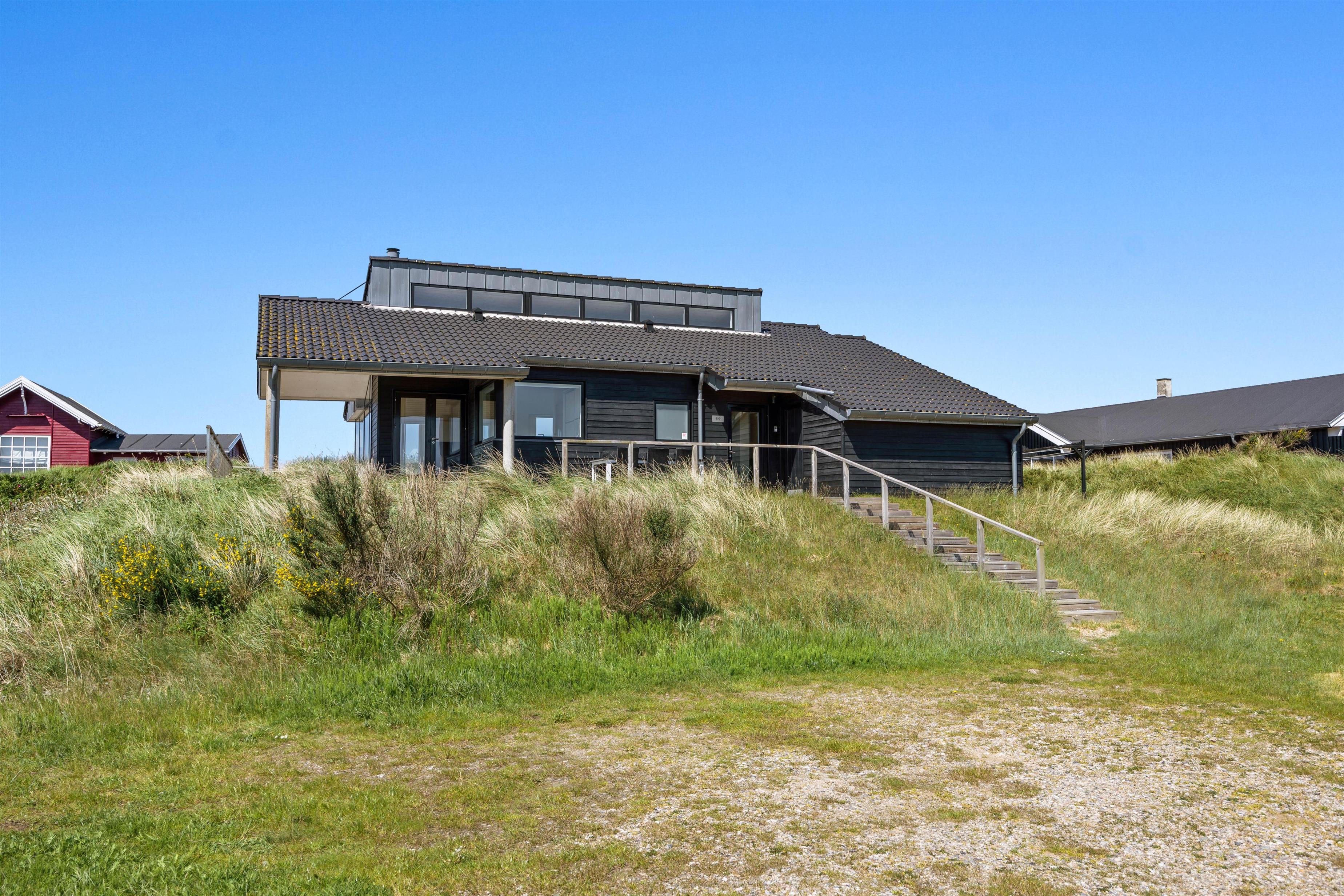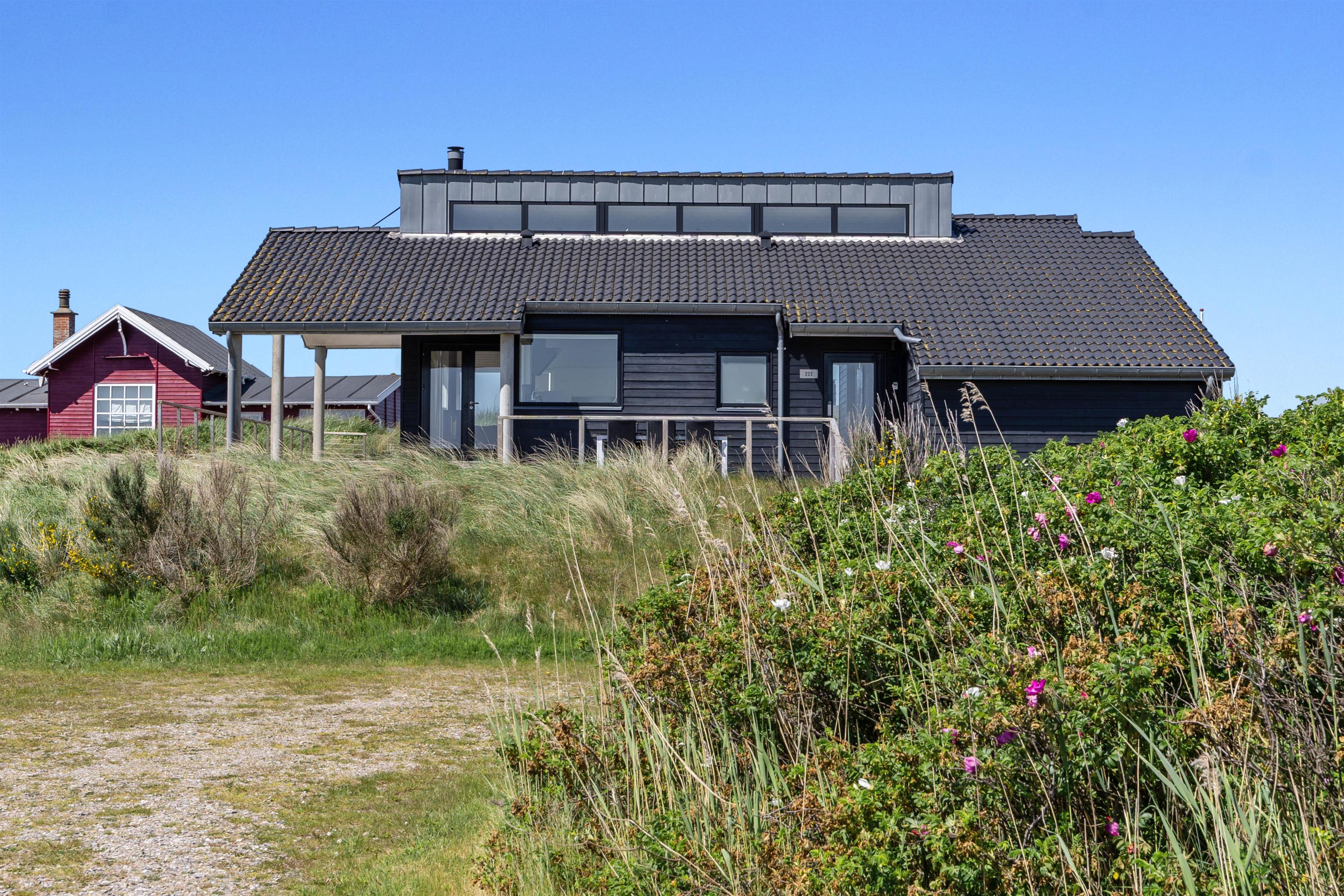 På Lakolk 222 finder I et smukt sommerhus med arkitektoniske detaljer. Det rummelige sommerhus på 137 kvadratmeter har plads til op til 8 personer. Beliggenheden er perfekt, kun 600 meter fra Vesterhavet og 800 meter fra de nærmeste indkøbsmuligheder. Her har du alt, hvad du behøver for at få en afslappende, men samtidig aktiv ferie med familie eller venner. Bemærk venligst, at der er trapper op til sommerhusets indgang på toppen af en klit, så gangbesværede mennesker kan blive udfordret.