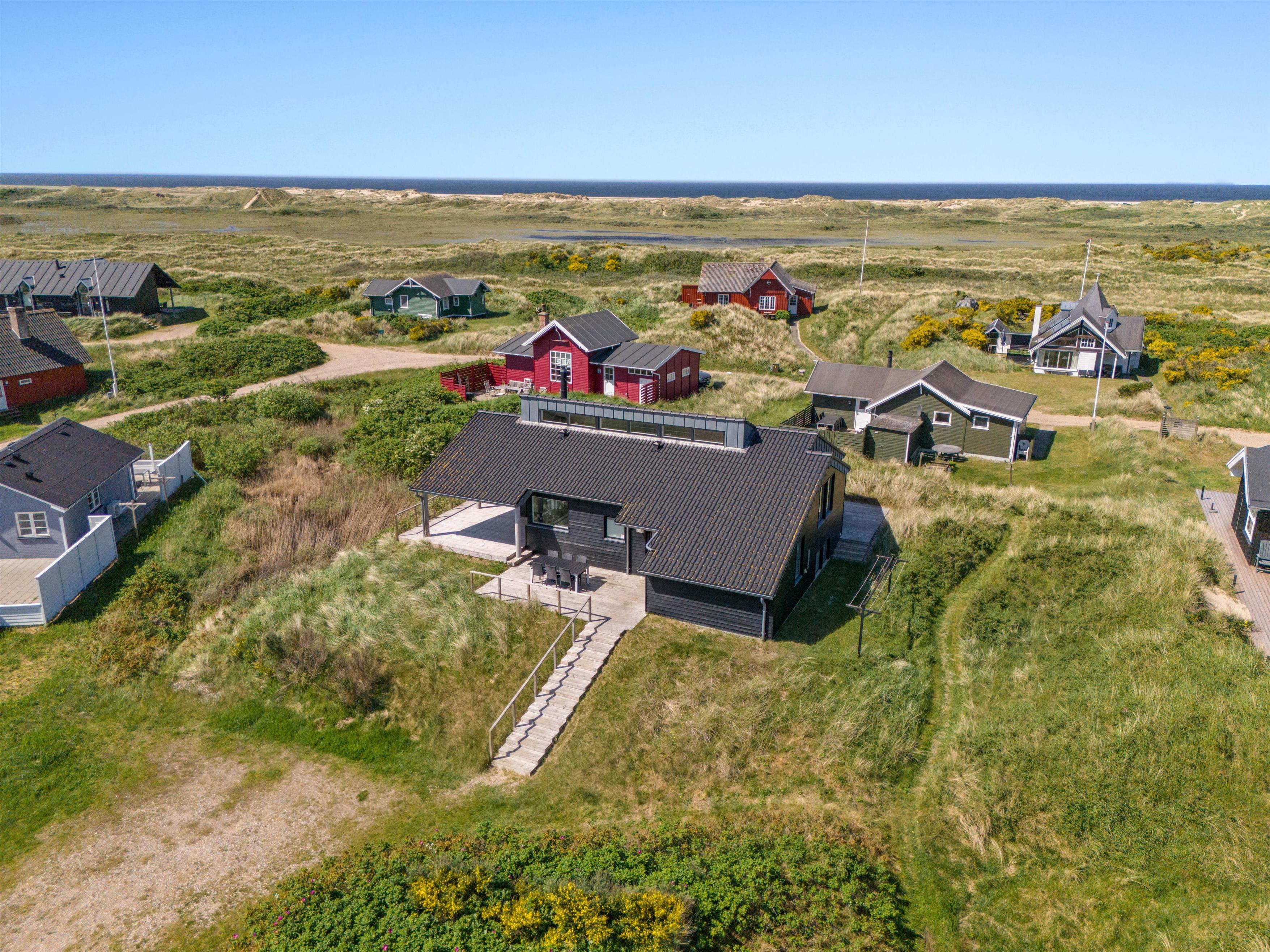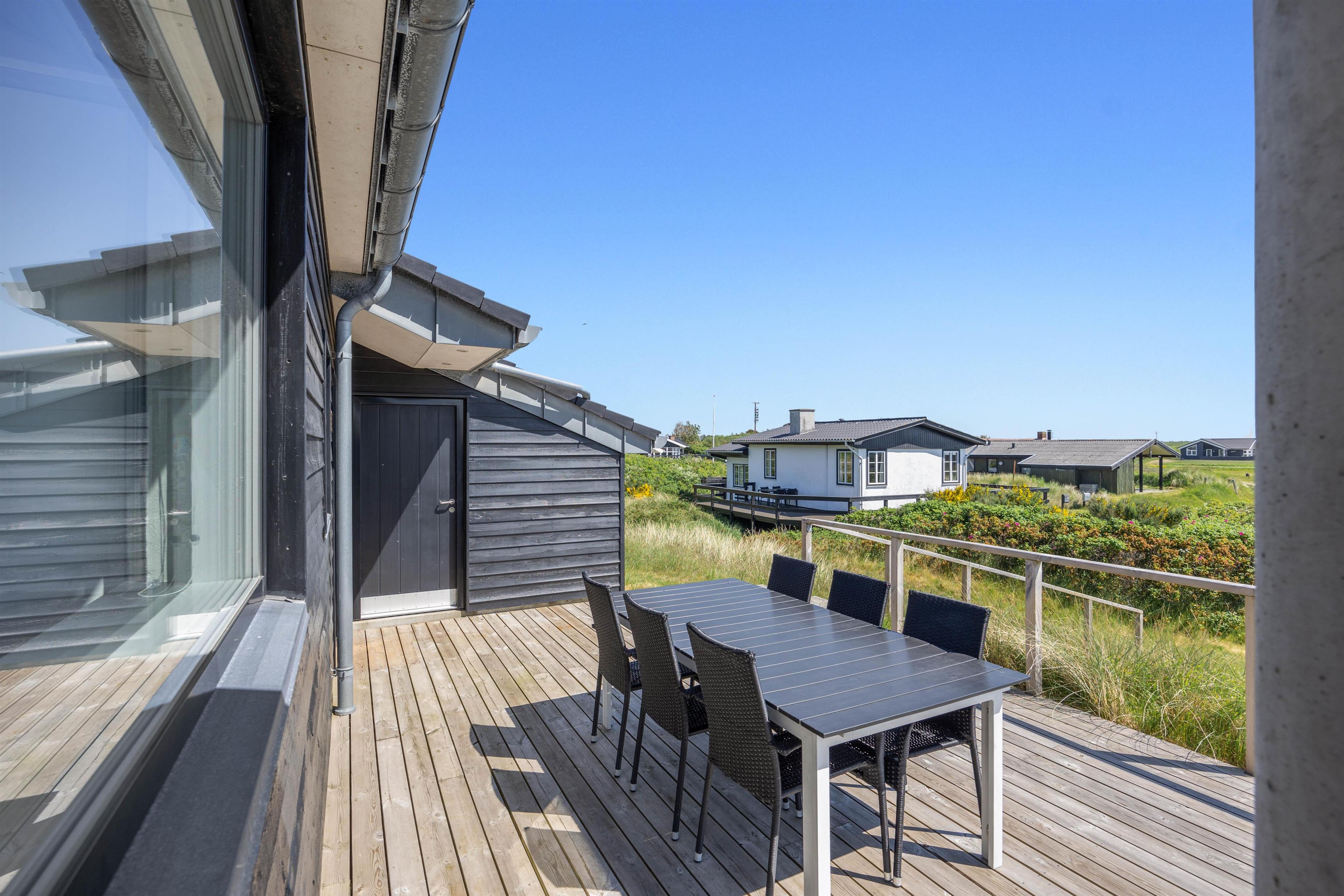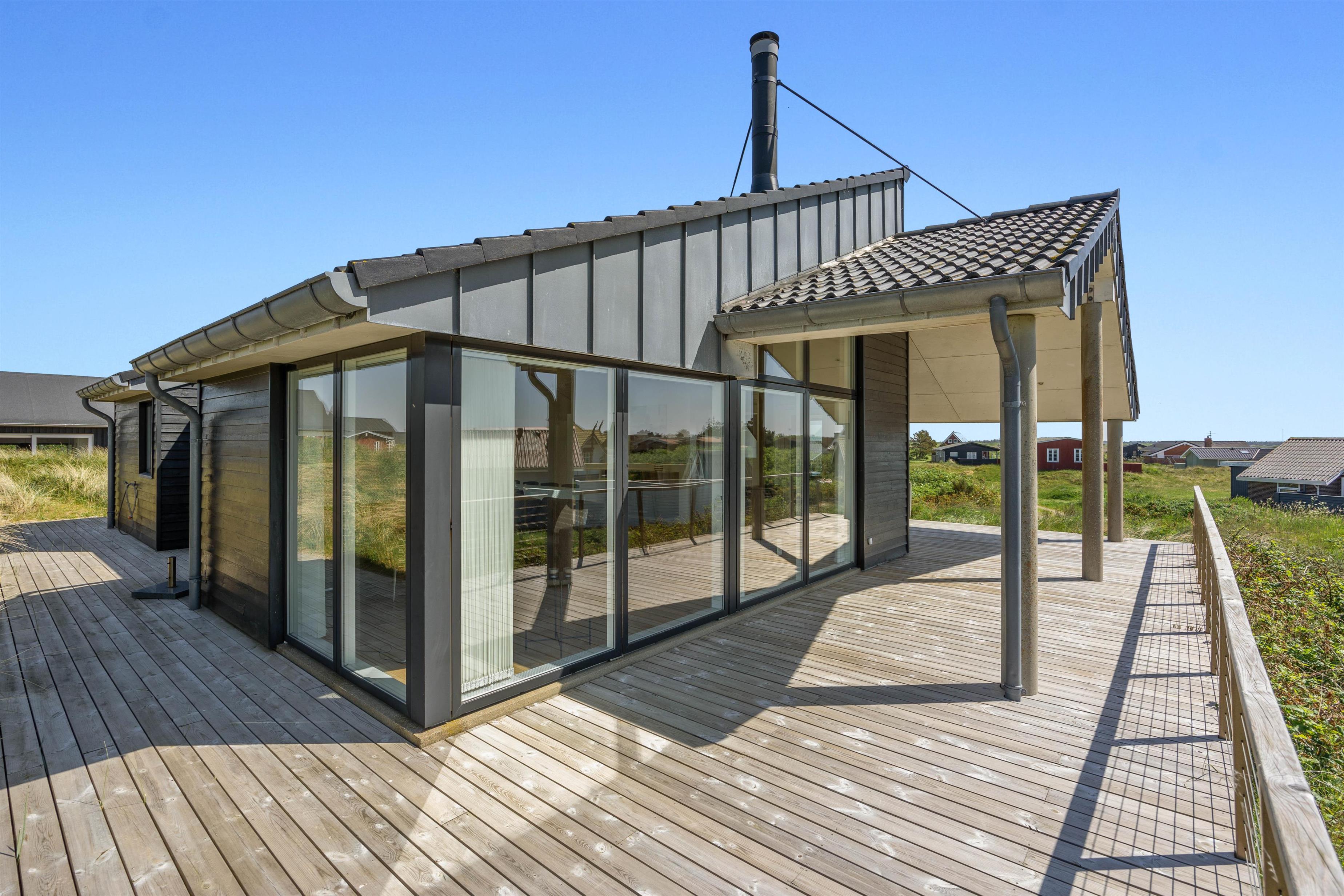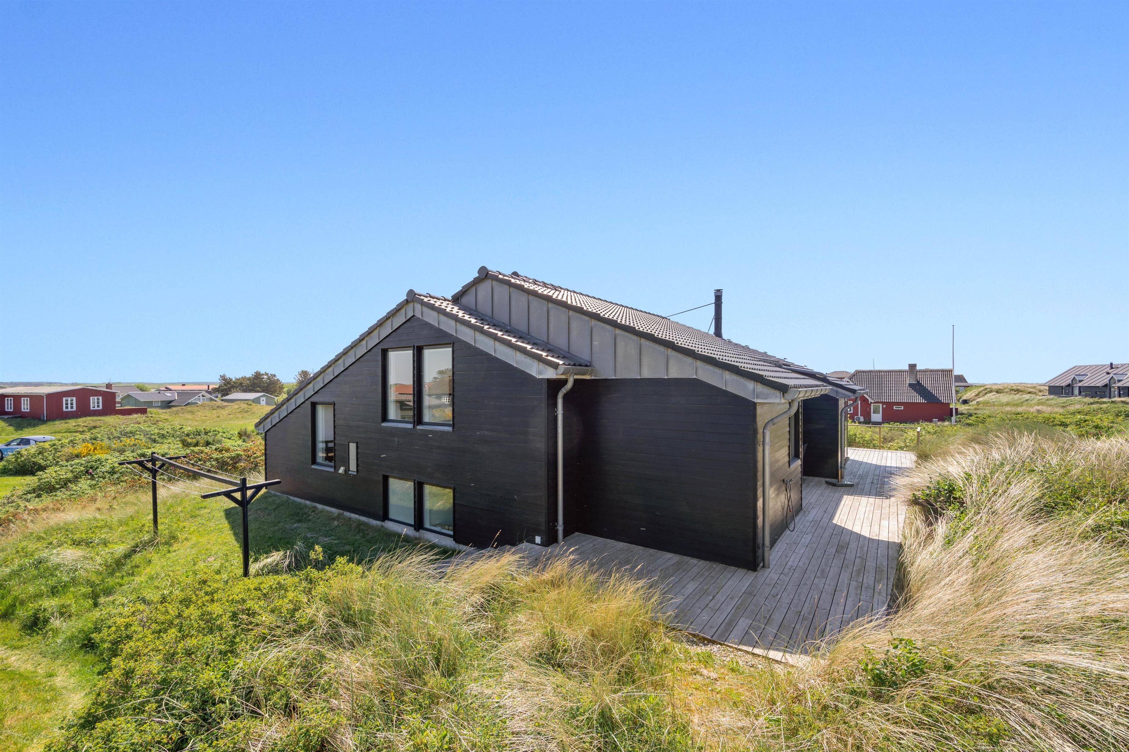 På Lakolk 222 finder I et smukt sommerhus med arkitektoniske detaljer. Det rummelige sommerhus på 137 kvadratmeter har plads til op til 8 personer. Beliggenheden er perfekt, kun 600 meter fra Vesterhavet og 800 meter fra de nærmeste indkøbsmuligheder. Her har du alt, hvad du behøver for at få en afslappende, men samtidig aktiv ferie med familie eller venner. Bemærk venligst, at der er trapper op til sommerhusets indgang på toppen af en klit, så gangbesværede mennesker kan blive udfordret.