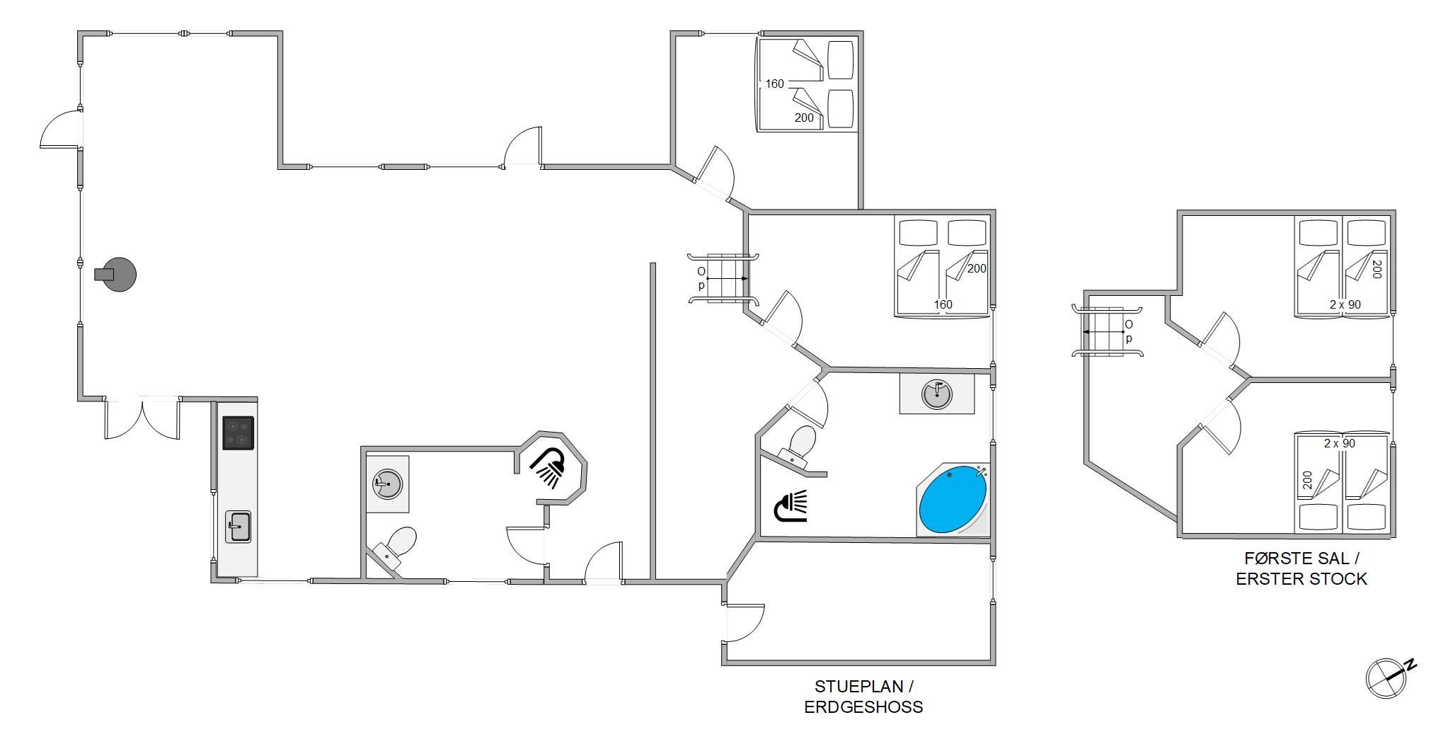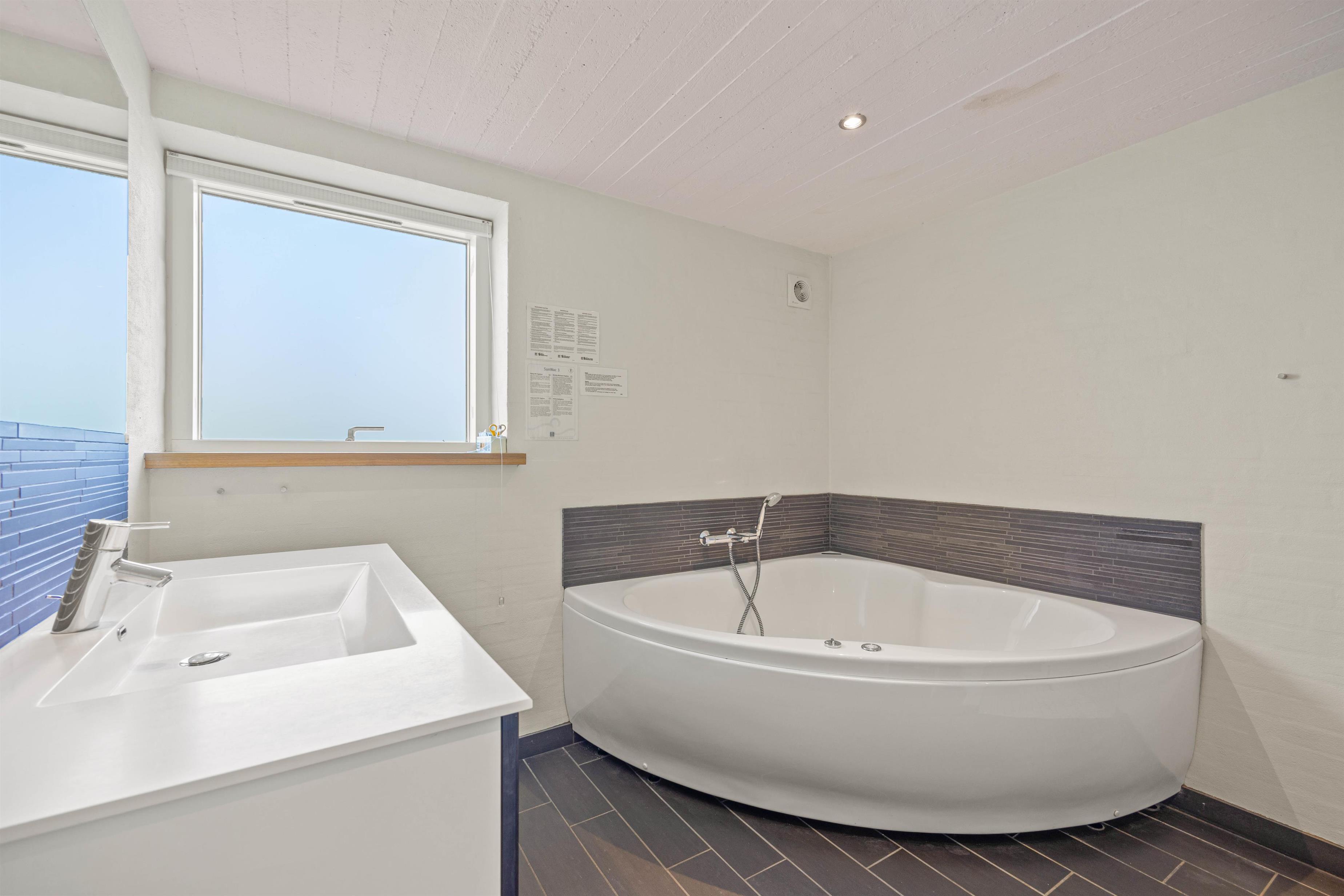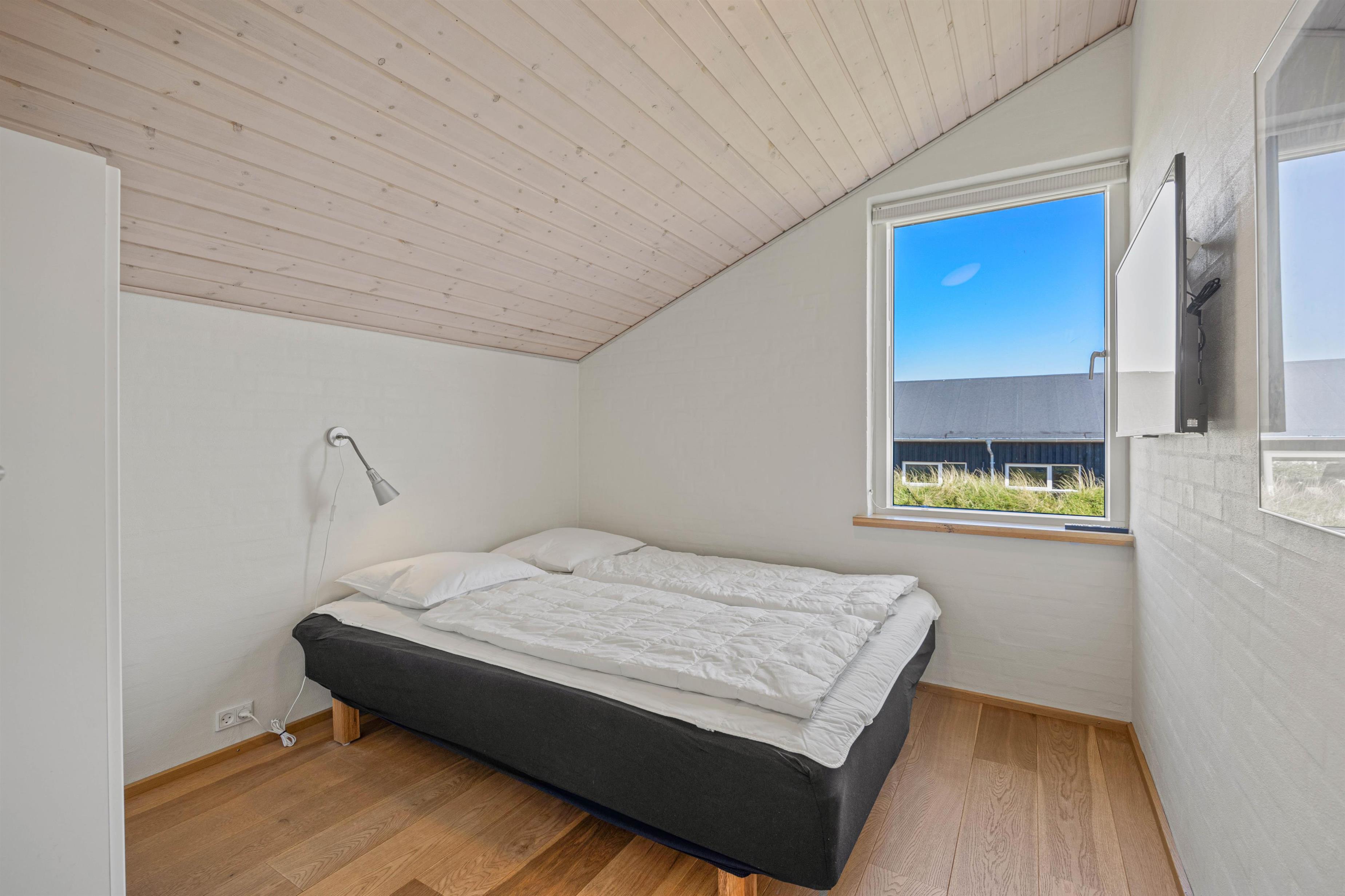 De 2 badeværelser med gulvvarme er begge moderne og funktionelle, hvilket sikrer en varm og behagelig start på dagen, selv i de kolde måneder. I det ene- finder du en tømmespa, som indbyder til ren afslapning. Der er vaskemaskine til rådighed for jer, så I kan opfriske garderoben i løbet af ferien. Sommerhuset er udstyret med 4 rummelige soveværelser, hver indrettet med en komfortabel dobbeltseng, hvor I kan få en rolig nattesøvn i den friske vesterhavsluft. Læg mærke til, at den friske luft gør noget godt for nattesøvnen.