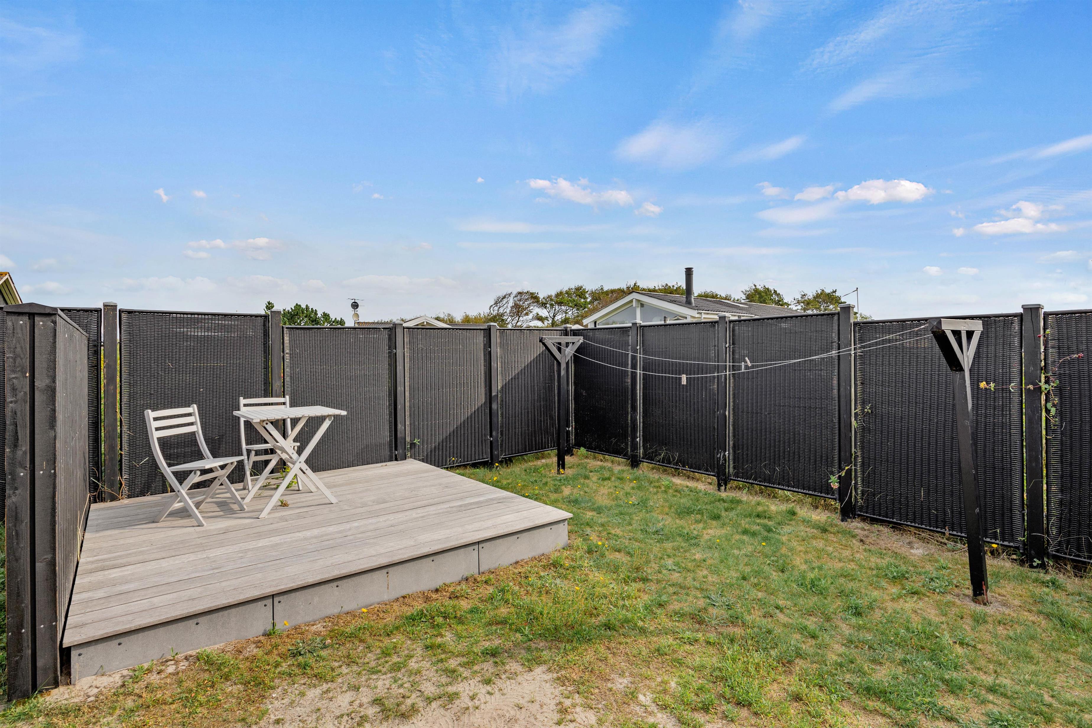 På terrassen kan I flytte jer rundt efter solens placering på himlen. Tag solbad i de komfortable liggestole, slap af i havemøblerne og tænd op i grillen til aften, så I kan spise et lækkert grillmåltid sammen. Sommerhusets centrale beliggenhed gør, at I kun har 500 meter til indkøbsmuligheder (sæsonåbent), og en kort gåtur til populære Lakolk strand. I den lille shoppinggade på Lakolk kan I spise et måltid eller en snack, købe strandtilbehør eller kigge på tøjbutikker.