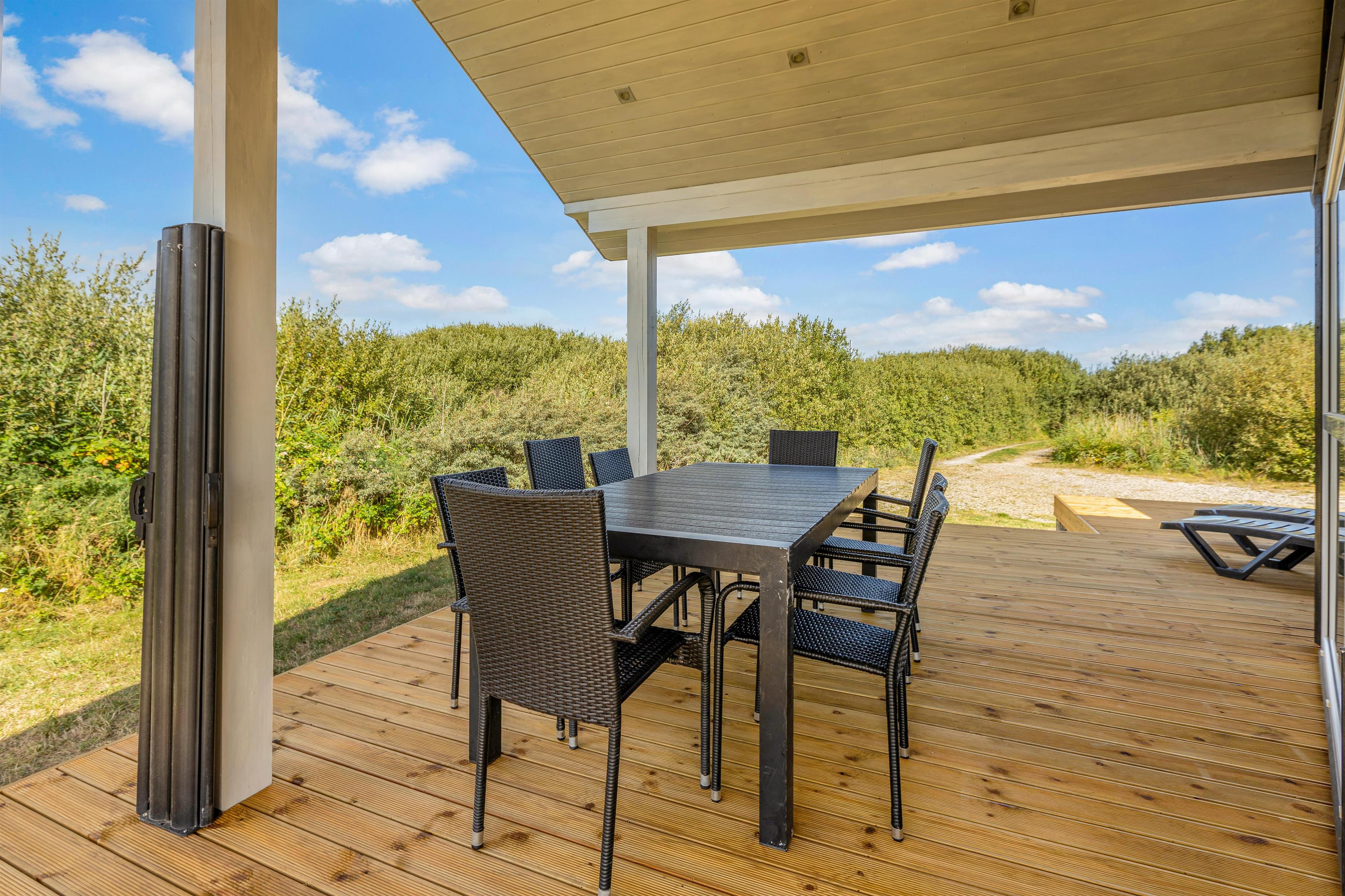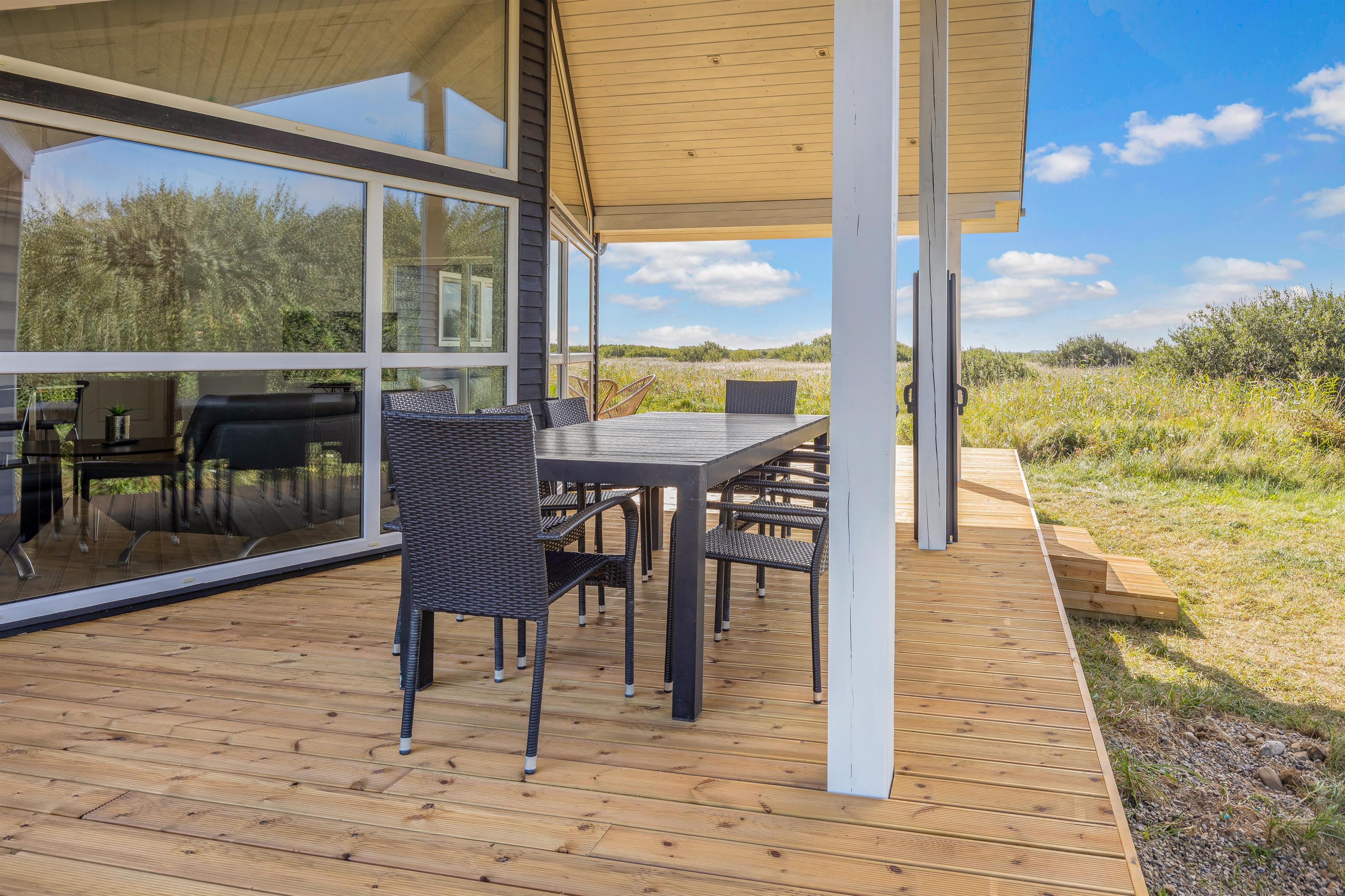 Når solen står højt på himlen, kan I finde et hyggeligt sted på sommerhusets terrasse. De komfortable havemøbler og liggestole indbyder til afslapning i den friske vesterhavsluft, mens børnene leger på naturgrunden. Der er en gynge og en sandkasse til børnene.