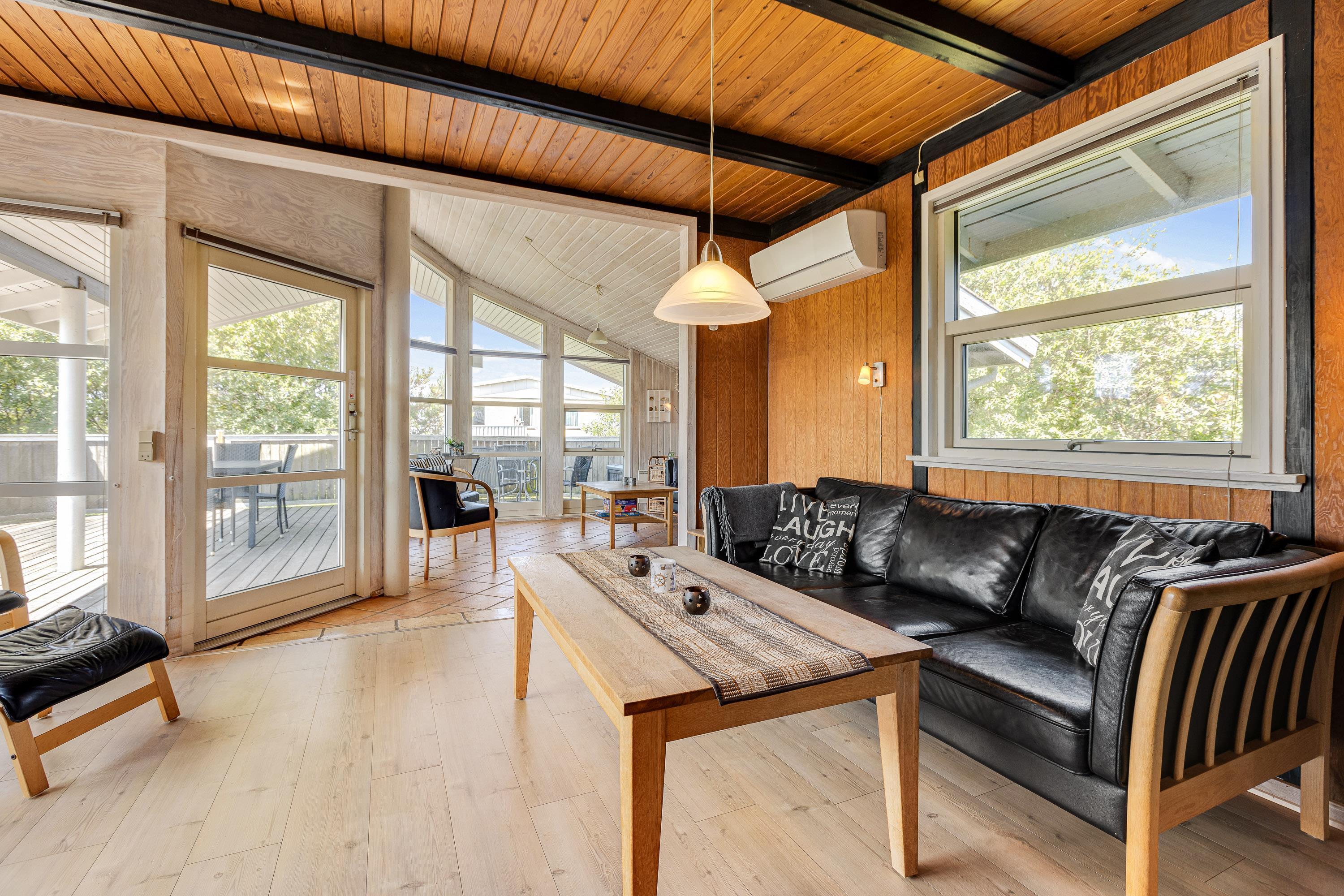 Indvendigt finder du eksempel på et traditionelt og klassisk indrettet sommerhus, som emmer af dansk sommerhusferie. I det store køkkenalrum og stue kan hele familien samles om fælles madlavning, og I kan samtidig hygge jer i udestuen med brændeovnen tændt. Trænger I til afslapning er det også muligt at fylde husets spa og læne sig tilbage deri.