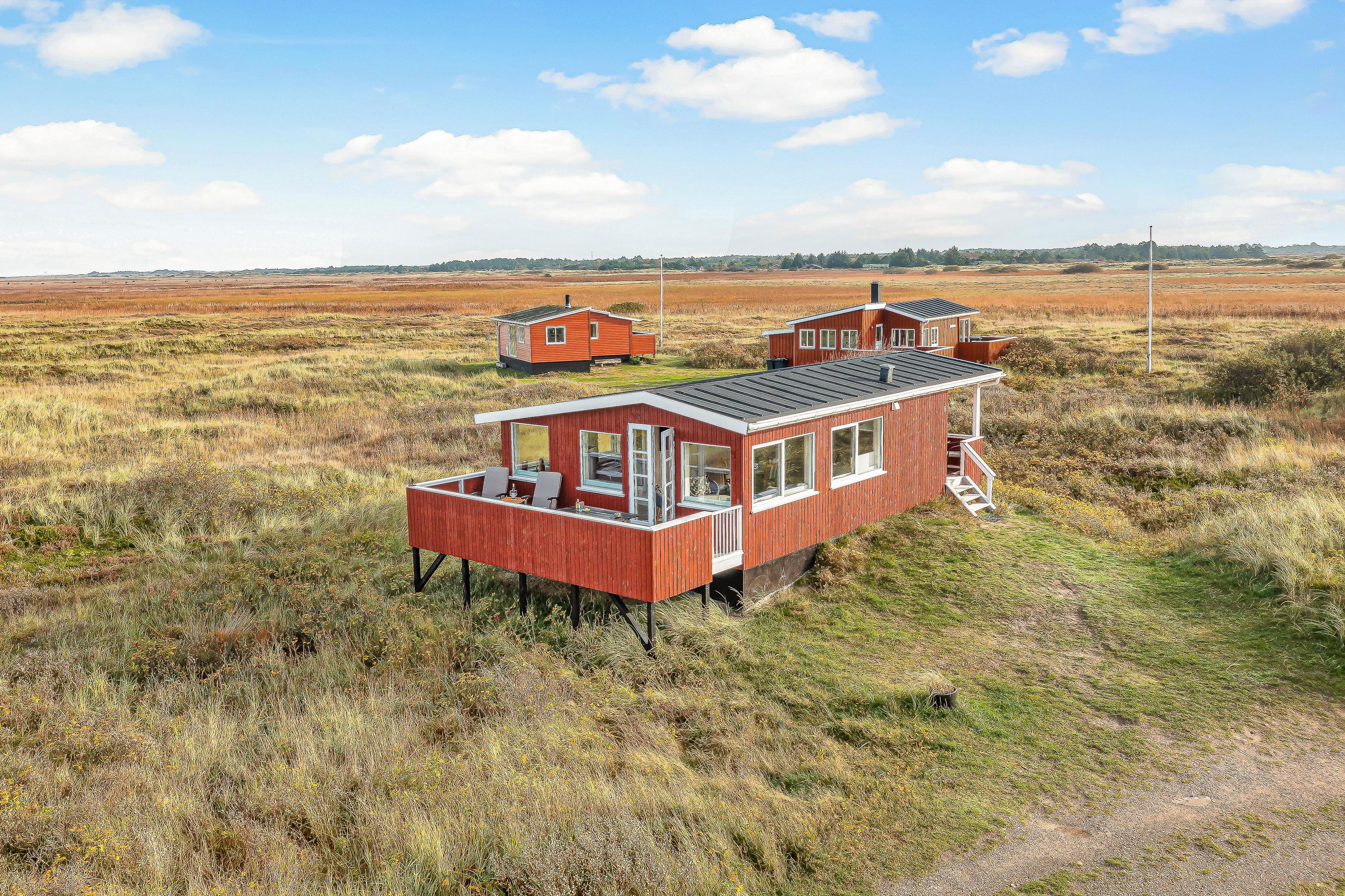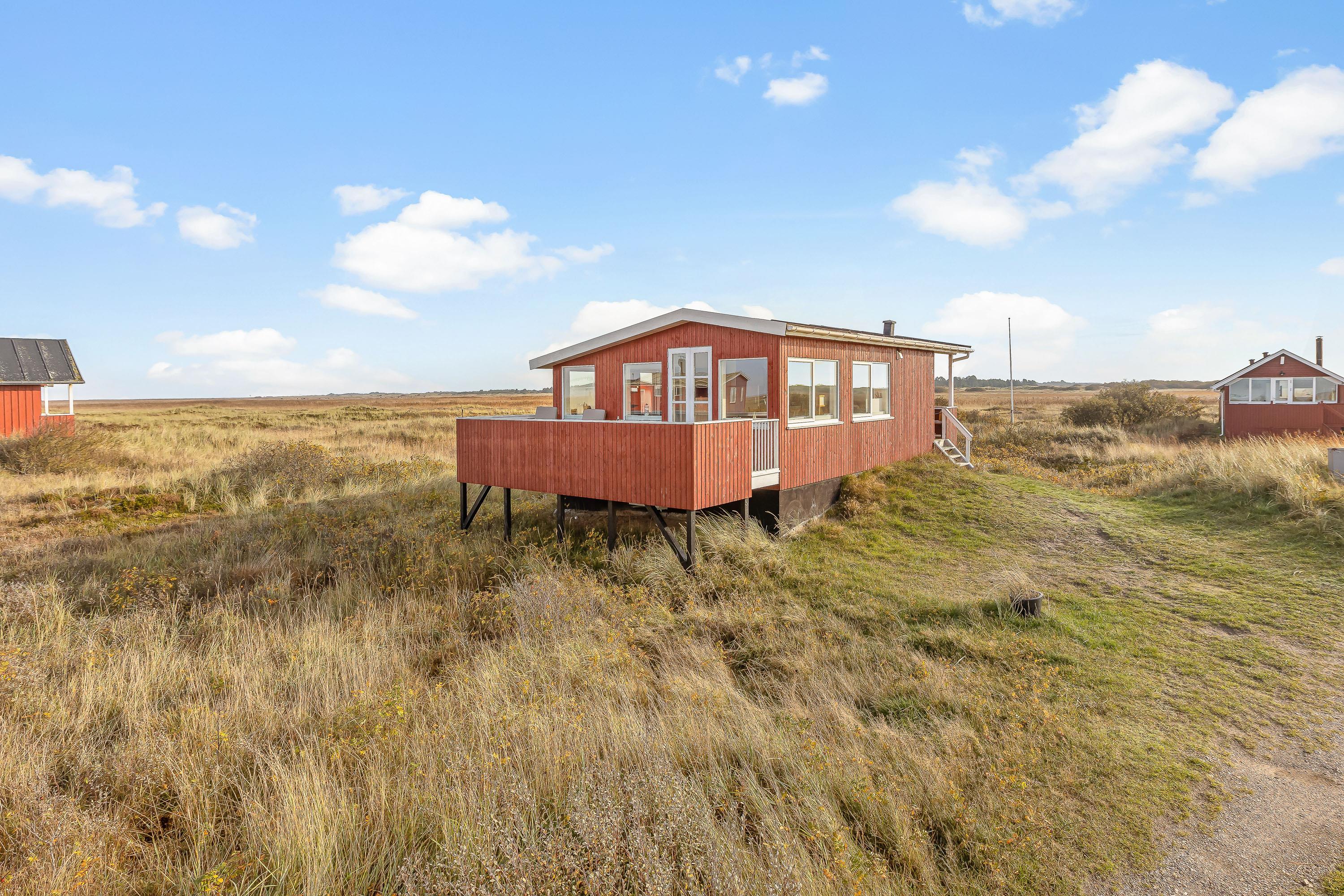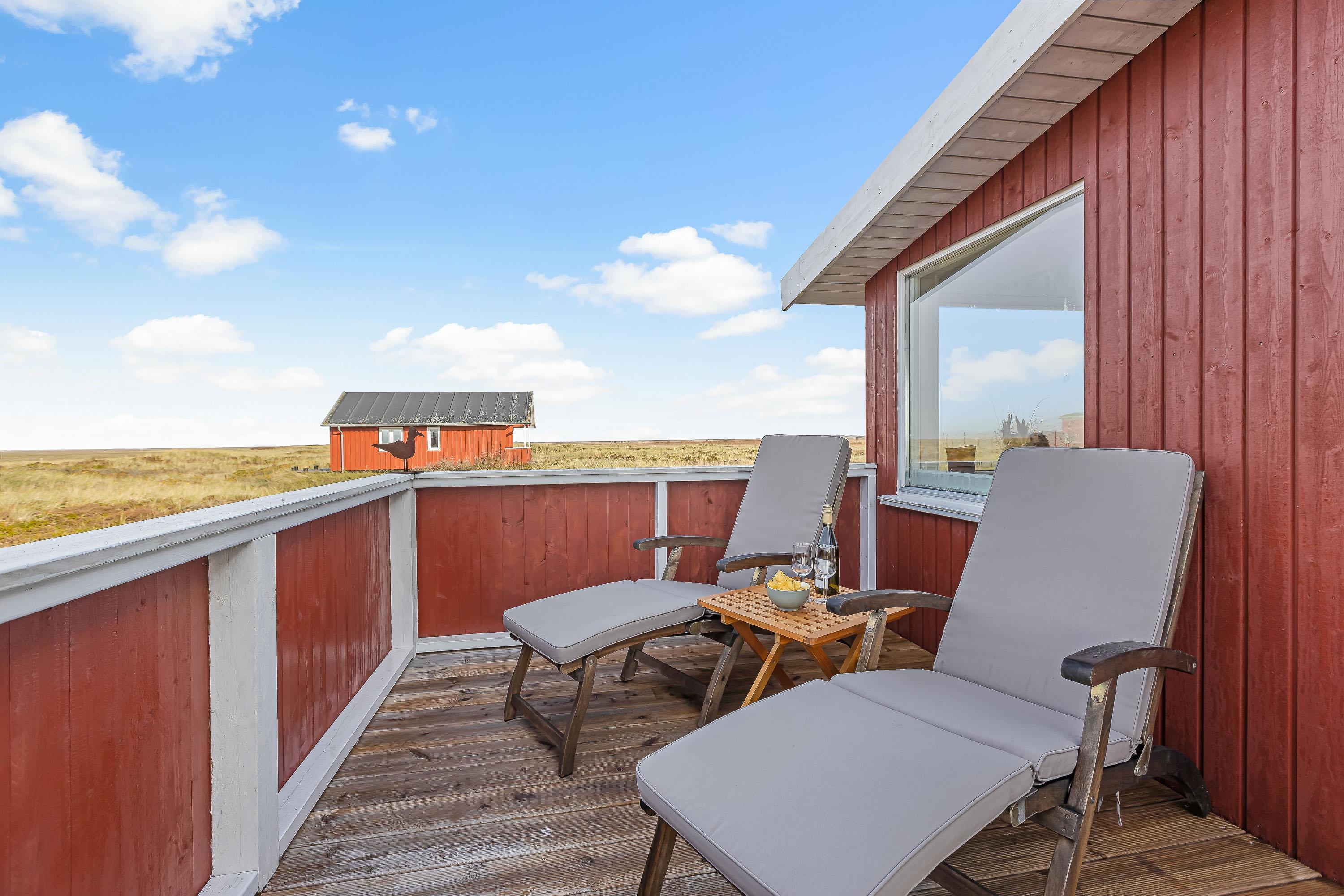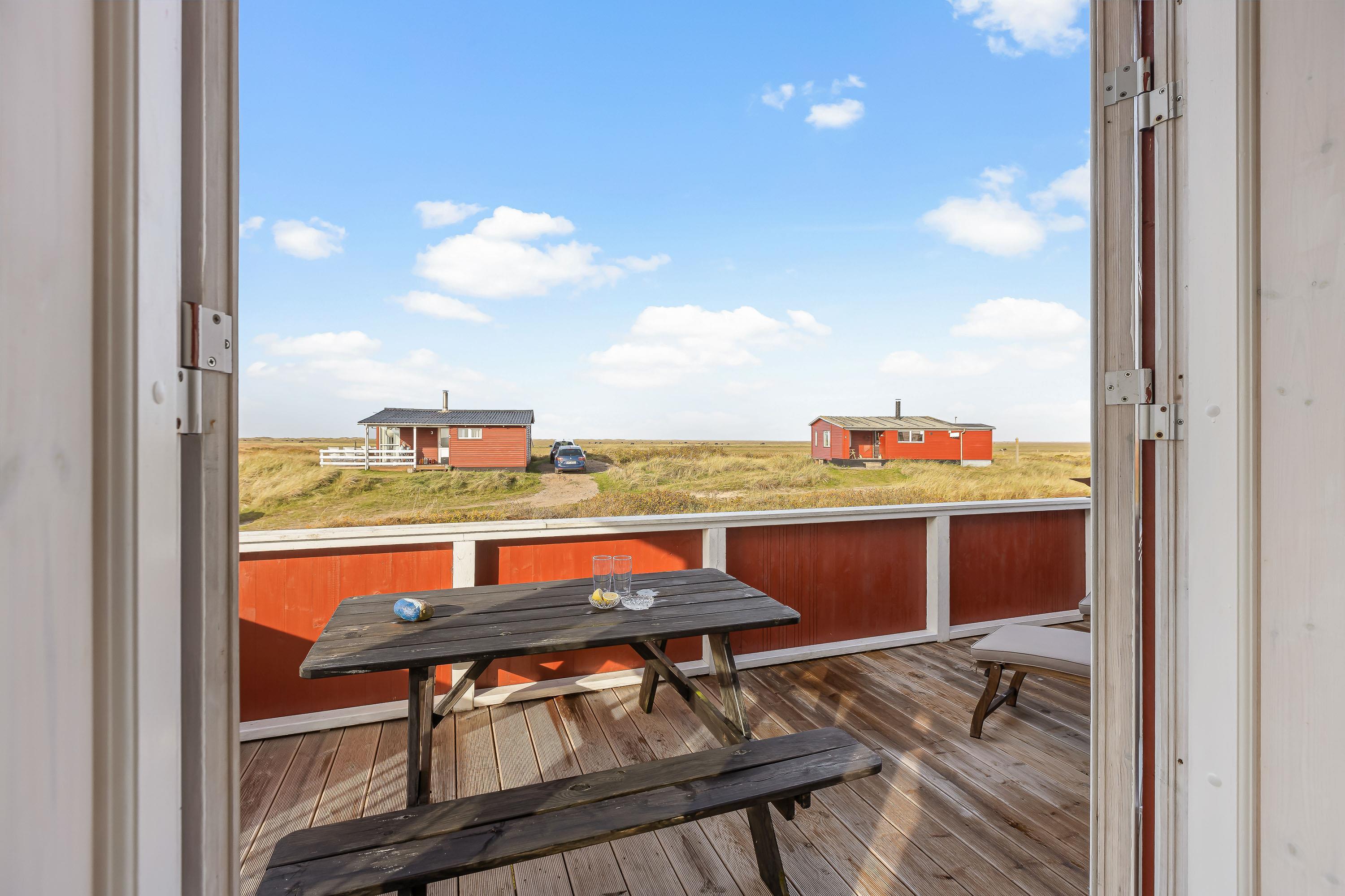 Sommerhuset to terrasser ligger hævet, hvilket giver en flot udsigt udover de åbne vidder i kystlandskabet. Den østvendte terrasse er overdækket, mens den vestvendte er åben, så her er rig mulighed for hyggelige grillaftener og måltider under åben himmel.
