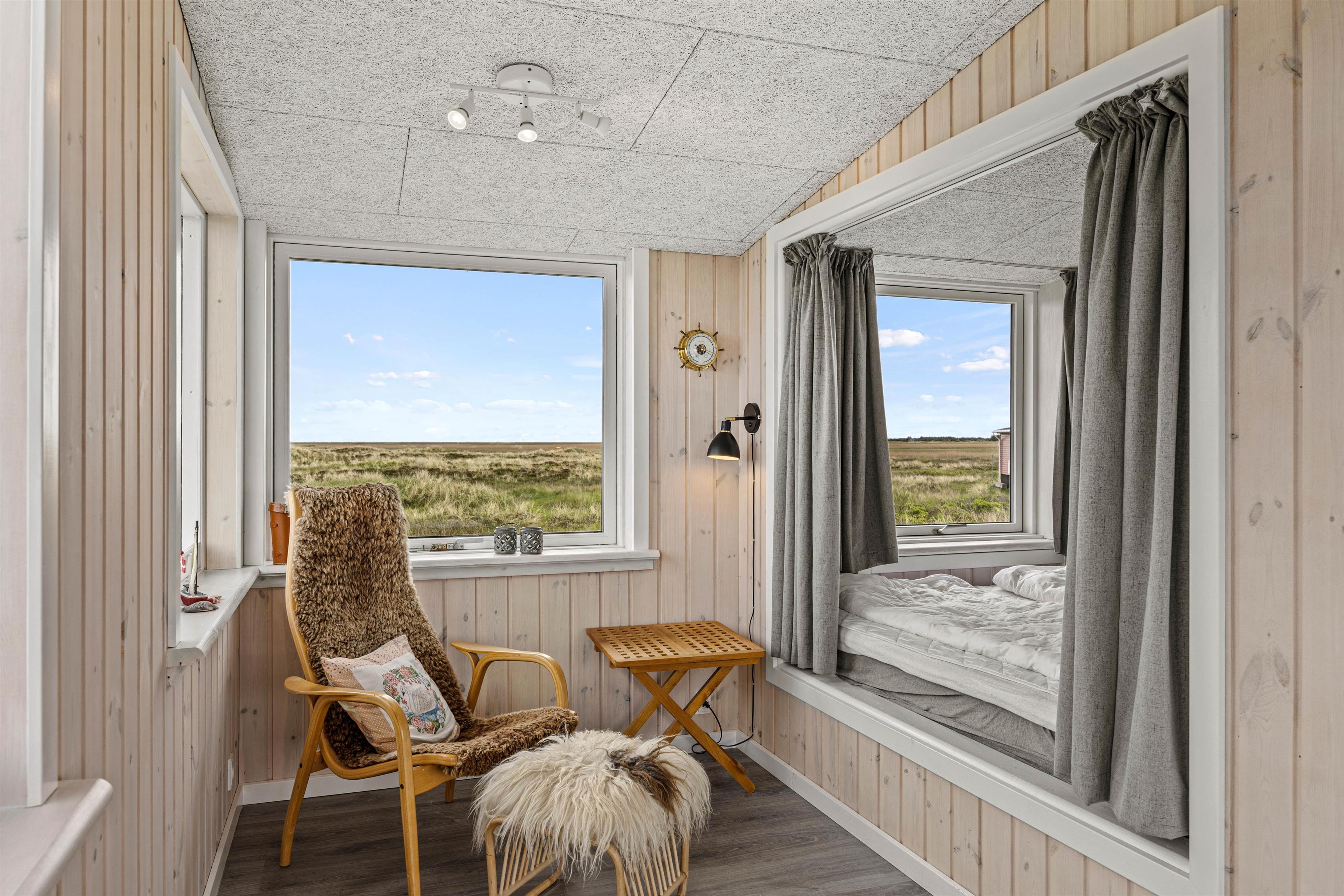 I de to soveværelser, hvoraf den ene dobbeltseng er en moderne alkove, er der plads til 4 feriegæster. Sommerhuset har også et mindre badeværelse. Her er også plads til hunden.