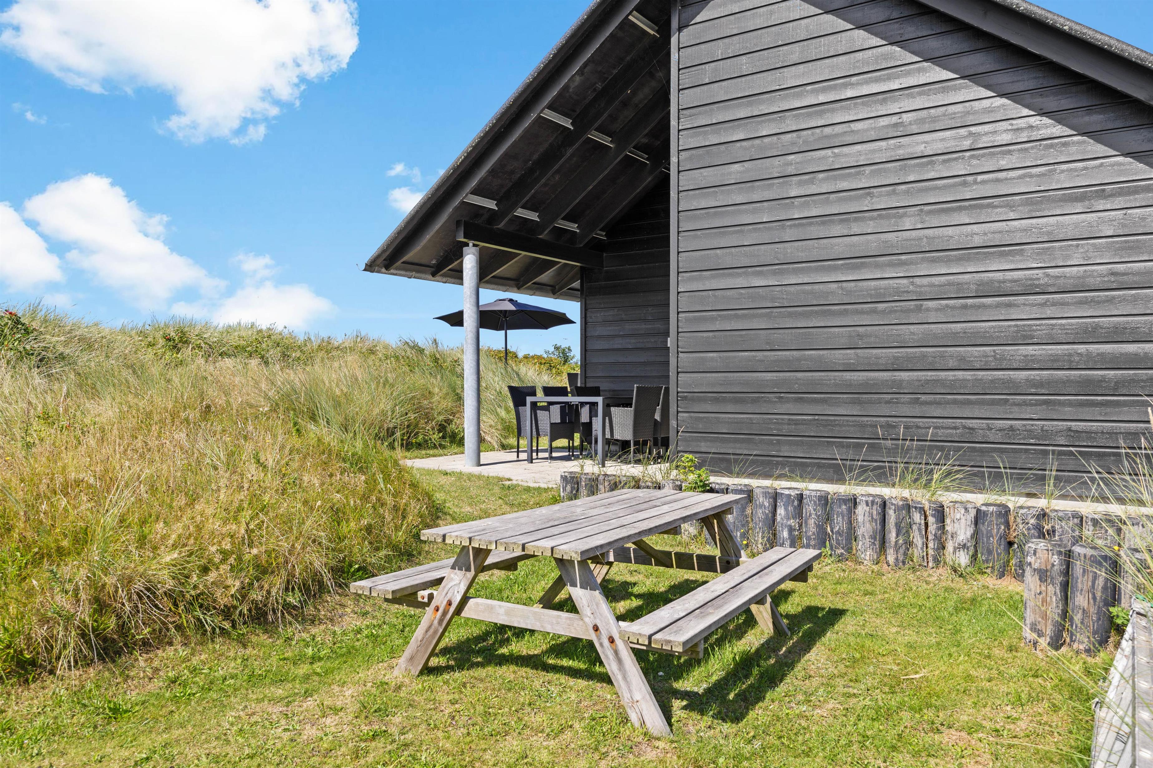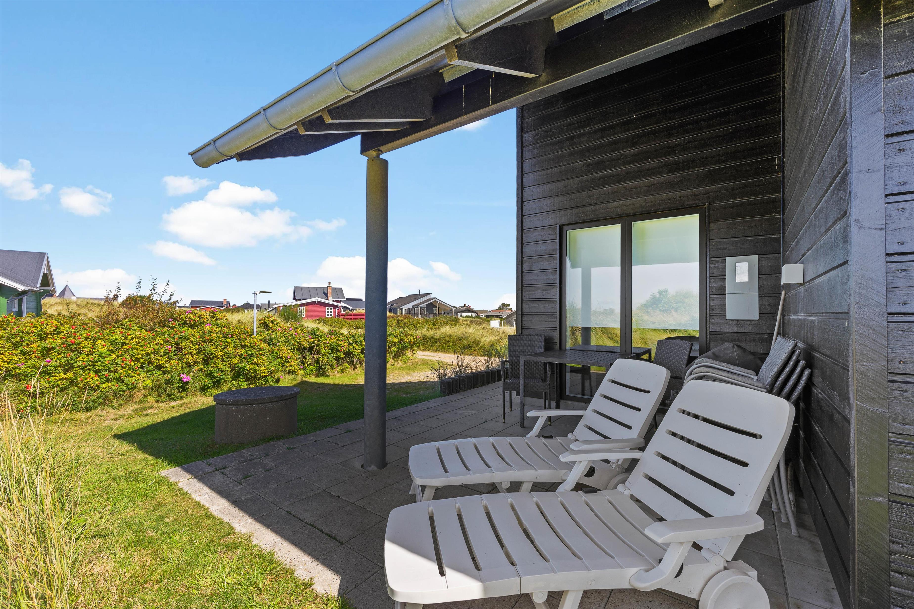 På begge sider af huset er der lavet terrasse, så I kan nyde solen så meget som muligt. Terrassen i øst er perfekt til morgenkaffen, mens den overdækkede del af terrassen findes på vestsiden er perfekt til aften solen. Nyd den smukke udsigt og se solnedgangen, mens I griller på en lun sommeraften. Afslut evt. aftenen med en gåtur på stranden.