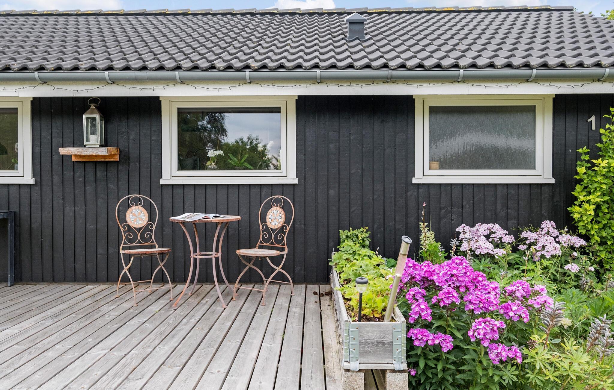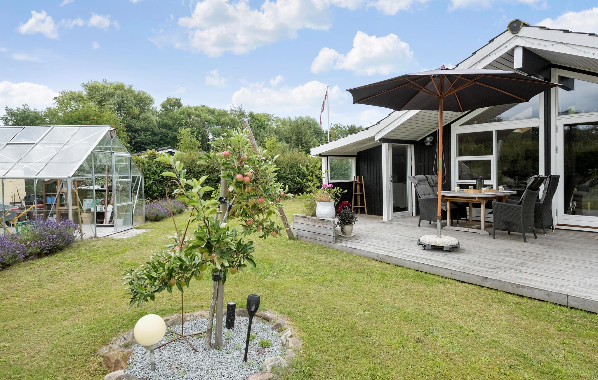 Terrassen er delvist overdækket, så her er der både sol og skygge på de varme sommerdage. Huset er omkranset af en velholdt, grøn have, som er skøn at kigge ud på fra stuen og terrassen. Slip børnene løs på den store grund, hvor de sikkert kan få masser af tid til at gå boldspil og gemmeleg.