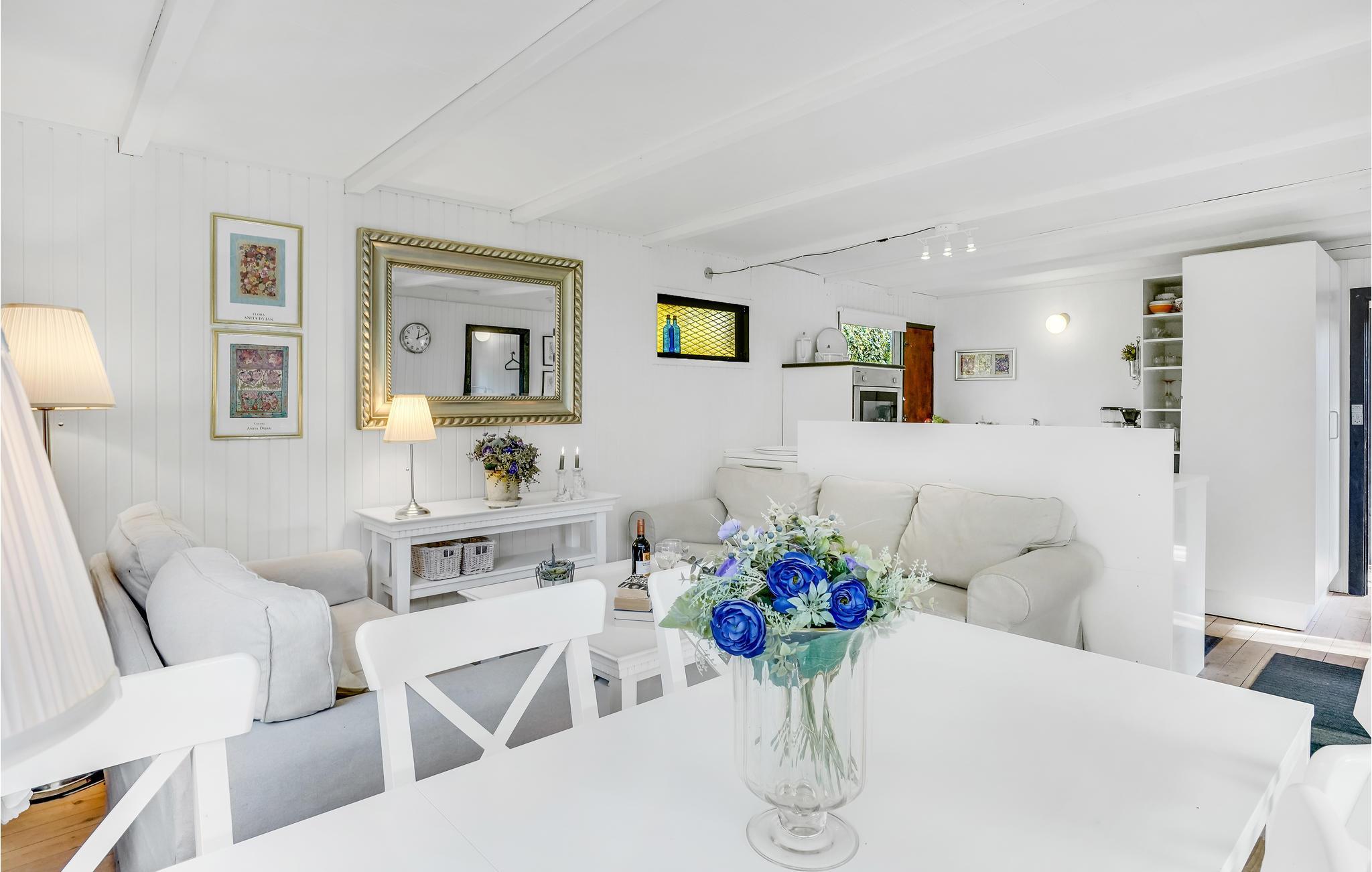 I et hyggeligt sommerhusområde ligger dette charmerende feriehus, der er indrettet med et personligt præg. Det åbne køkken ligger i forbindelse med stuen, hvorfra der er udgang til en lille overdækket terrasse. For enden af huset ligger en ugenert terrasse, hvor solen kan nydes hele dagen. I den hyggelige have er der god plads til leg og hygge. Huset ligger i gåafstand til Isefjorden og midt i den skønne natur. Tag enten jeres egen kano med til en spændende tur, eller tag Isefjorden rundt med ialt fire færger (køb samlet billet) og se de smukke landskaber fra vandsiden. Halvøen Hornsherred med byen Jægerspris byder på vidunderlig dansk natur med store skove, bølgende bakker og gode muligheder for vandreture på afmærkede ruter. På det smukke Jægerspris Slot er der dagligt rundvisning og i Nordskoven findes egetræer der er over 1000 år gamle. Købstaden Frederikssund er en hyggelig handelsby, hvor der hvert år afholdes et vikingespil, hvor man efterfølgende kan komme til taffel med god mad og underholdning i Valhal. For golfentusiaster ligger en 18-hullers golfbane i byen. Der er ca. 50 km til København med utallige seværdigheder og aktiviteter; deriblandt Tivoli, Zoologisk Have, Planetariet, Eksperimentariet og de mange spændende museer.